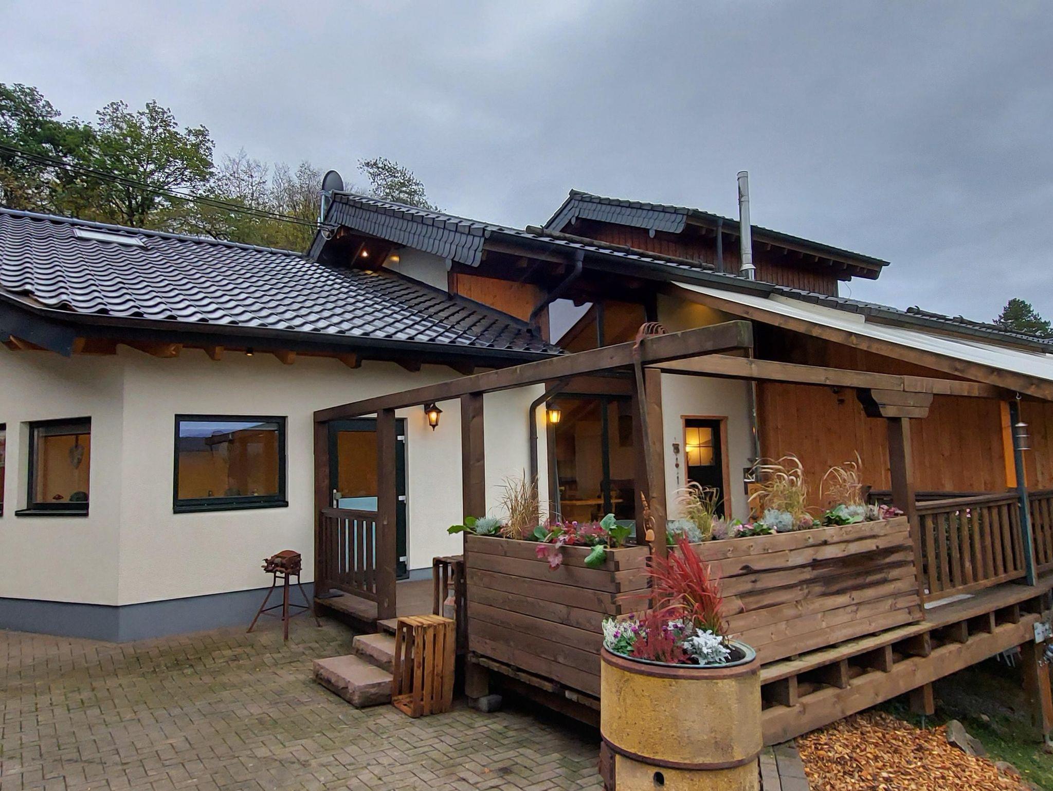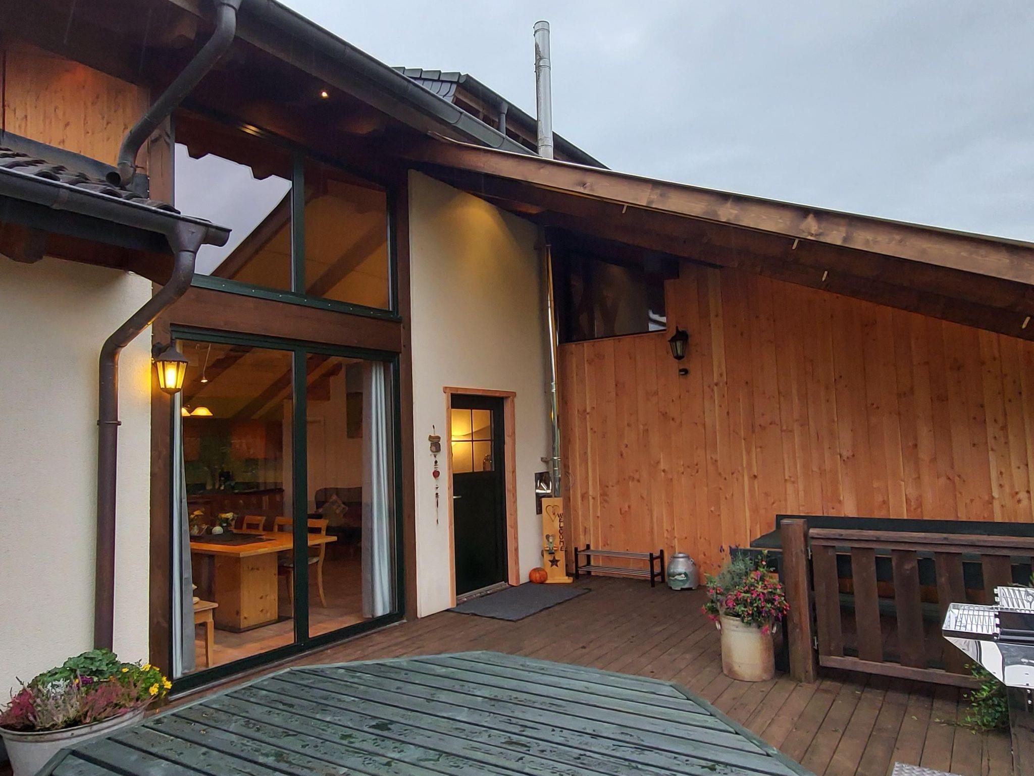 Unsere behindertengerechte Ferienwohnung (Haushälfte) mit 125 qm Wohnfläche und Platz für 9 Personen, ist familienfreundlich eingerichtet und lädt mit einer eigenen Holzterrasse, mit Fernsicht, zum Erholen ein.