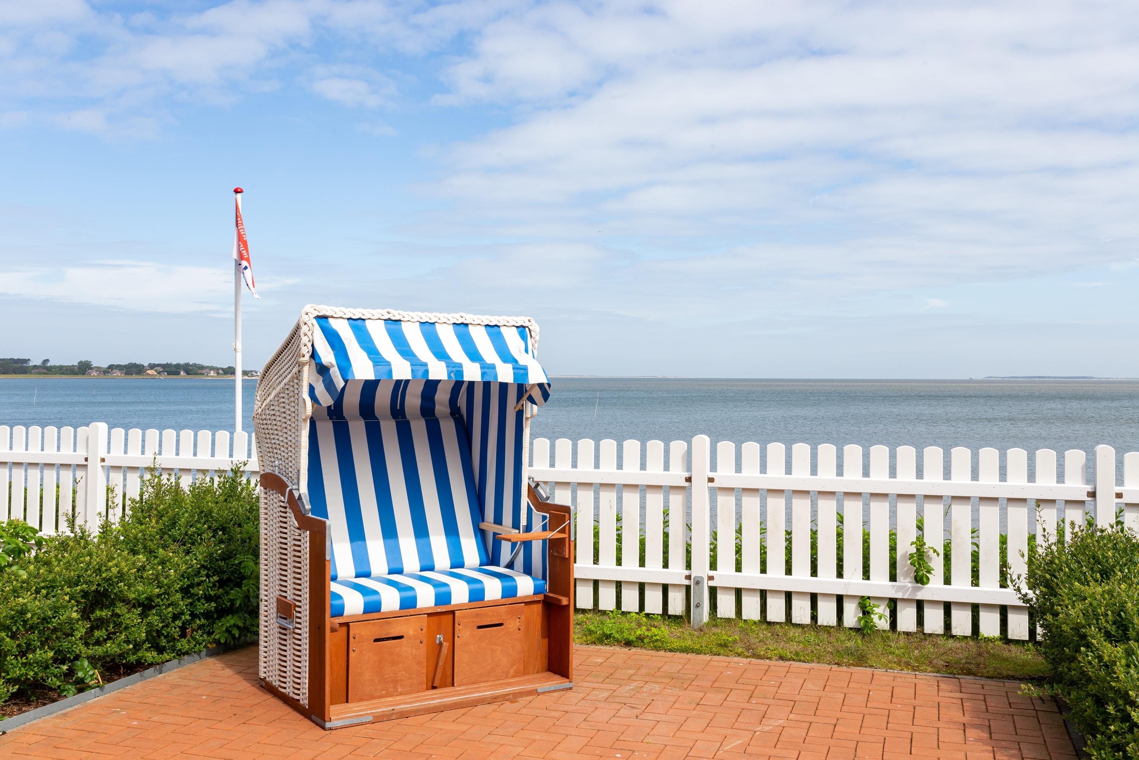 Zusätzlich zur eigenen Terrasse mit Meerblick dürfen Sie sich über einen eigenen Garten mit Strandkorb freuen.