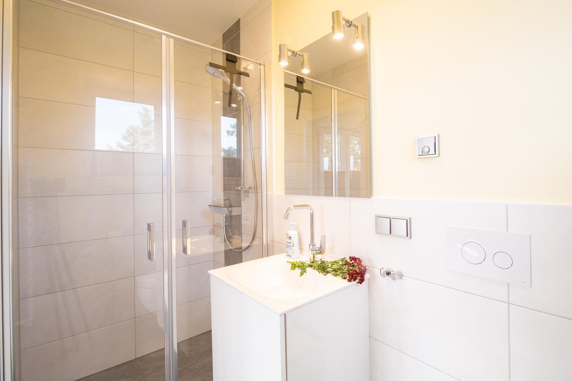 Zudem erwarten Sie zwei Badezimmer mit ebenerdiger Dusche und WC. Alle Fenster sind mit Sonnenschutzmöglichkeiten in Form von Plissees ausgestattet. Die gesamte Wohnung wird mit einer Fußbodenheizung beheizt.