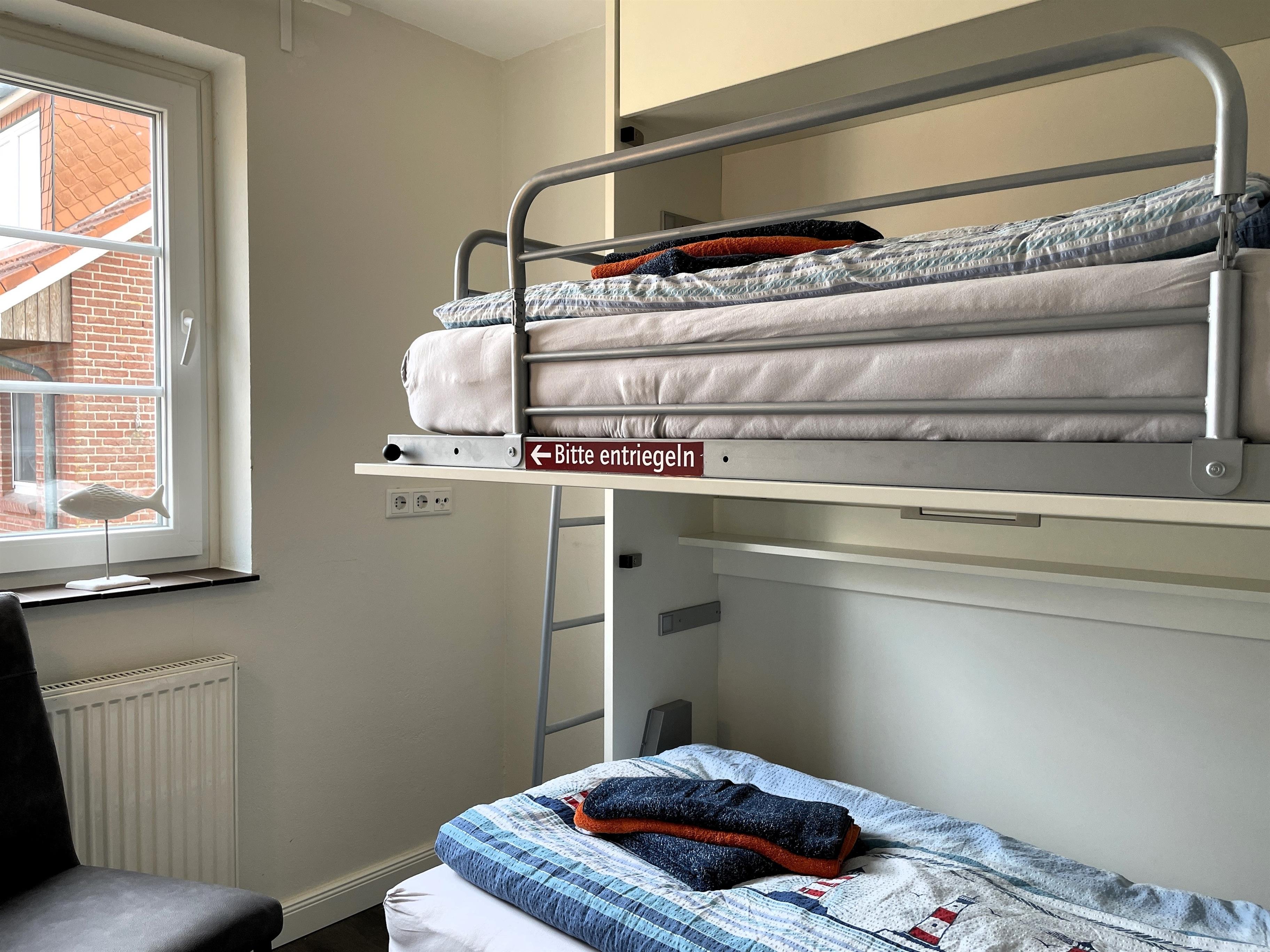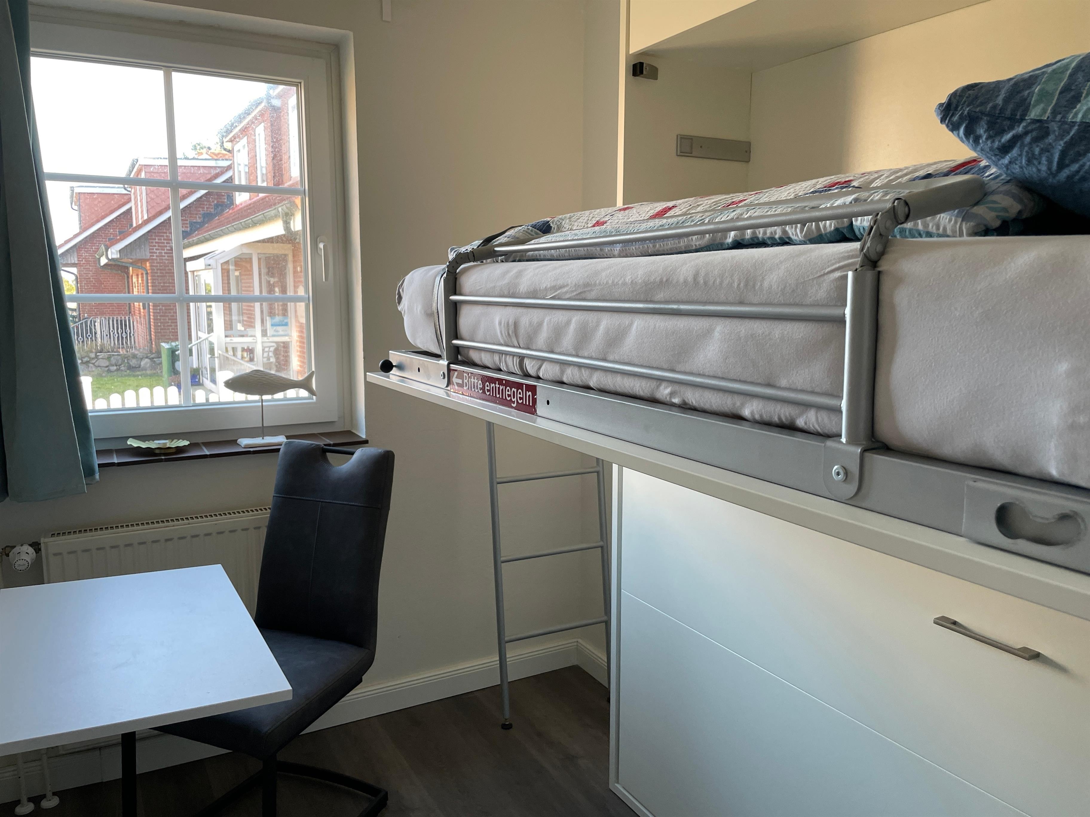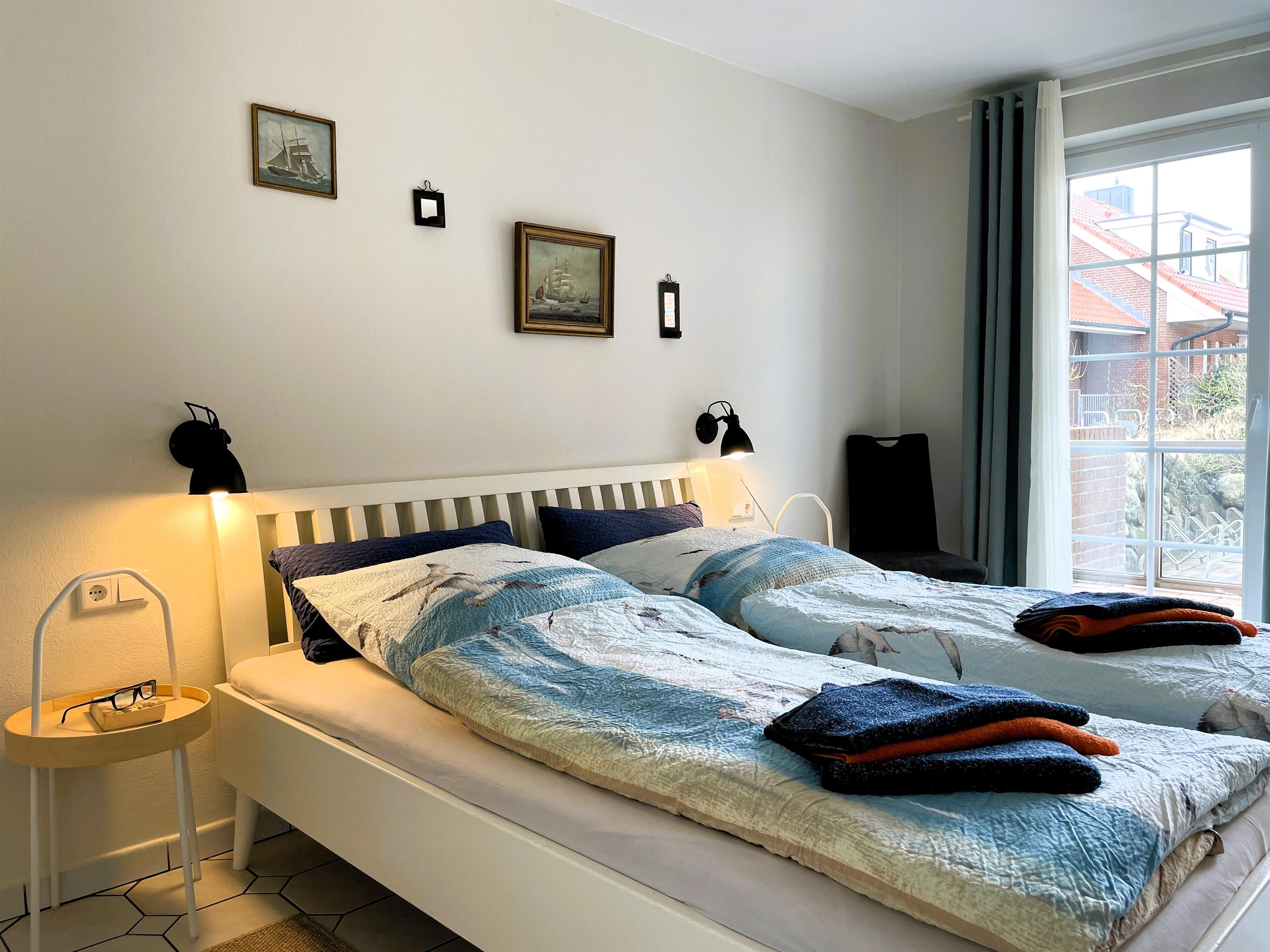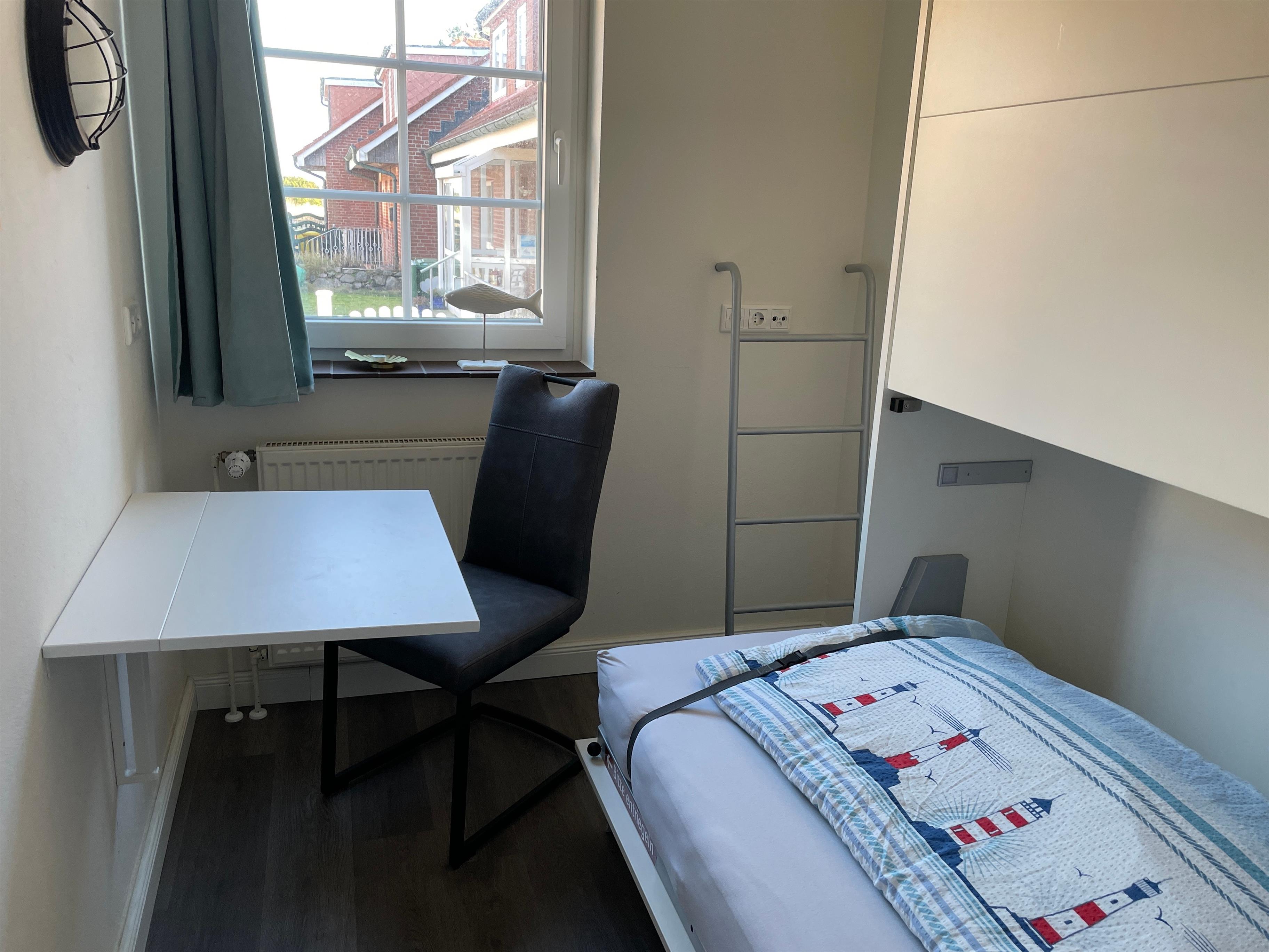 Herzlich willkommen in der Ferienwohnung Huus Waterkant 01 - Ihr gemütliches Zuhause auf Zeit an der Nordsee! Diese Ferienwohnung bietet Ihnen einen perfekten Rückzugsort für einen entspannten Urlaub. Die Wohnung verfügt über zwei Zimmer, die optimal für 2-4 Personen geeignet sind. Das geräumige Wohn- und Schlafzimmer lädt mit seinem bequemen Doppelbett zum Ausruhen ein. Ein praktischer Schrank bietet ausreichend Stauraum, und die integrierte Küchenzeile mit Esstisch und Stühlen ermöglicht gemeinsame Mahlzeiten. Ein weiteres Schlafzimmer mit einem Etagenbett, das auch für Erwachsene geeignet ist, sorgt für zusätzlichen Schlafkomfort. Das helle Bad mit Dusche und WC grenzt an den kleinen Eingangsbereich und verfügt über ein Fenster zur natürlichen Belüftung. Die sonnige Süd-West-Terrasse bietet einen wunderbaren Blick auf Amrum. Hier können Sie die Seele baumeln lassen und die Ruhe genießen. Zusätzliche Annehmlichkeiten wie ein Gefrierfach im Untergeschoss sowie die kostenfreie Nutzung von Waschmaschine und Trockner runden das Urlaubsvergnügen ab. SAT-TV und Radio sorgen für Unterhaltung, wenn Sie nach einem Tag voller Erlebnisse gemütlich zu Hause sind.