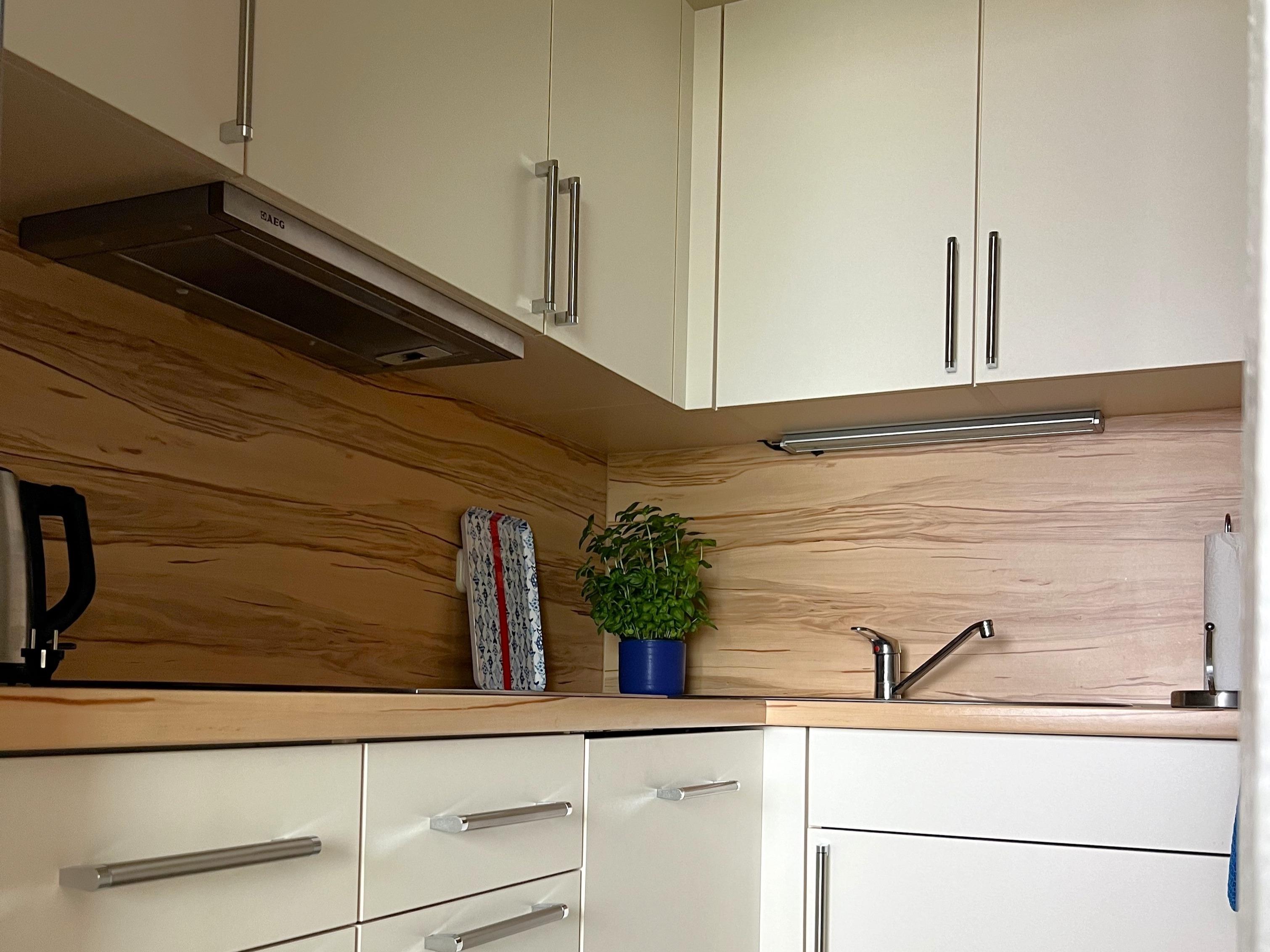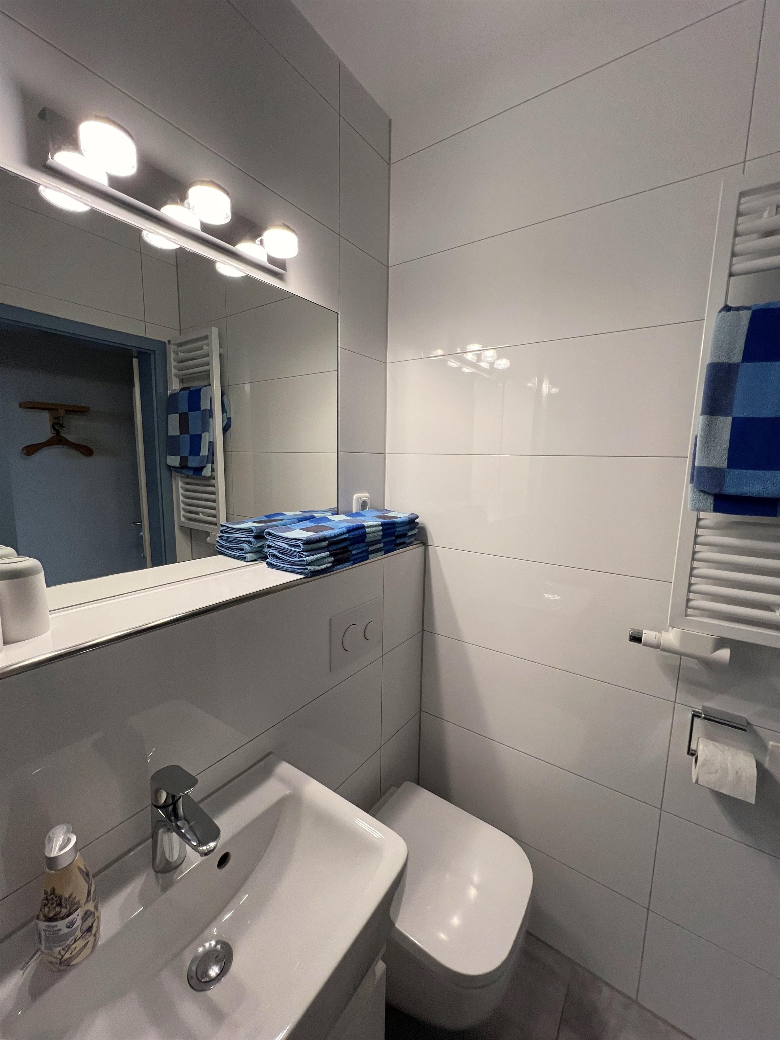 In der Ferienwohnung finden Sie ein modernes Bad mit ebenerdiger Dusche, sowie eine umfassend ausgestattete Küche und einen bequemen Wohnbereich vor.