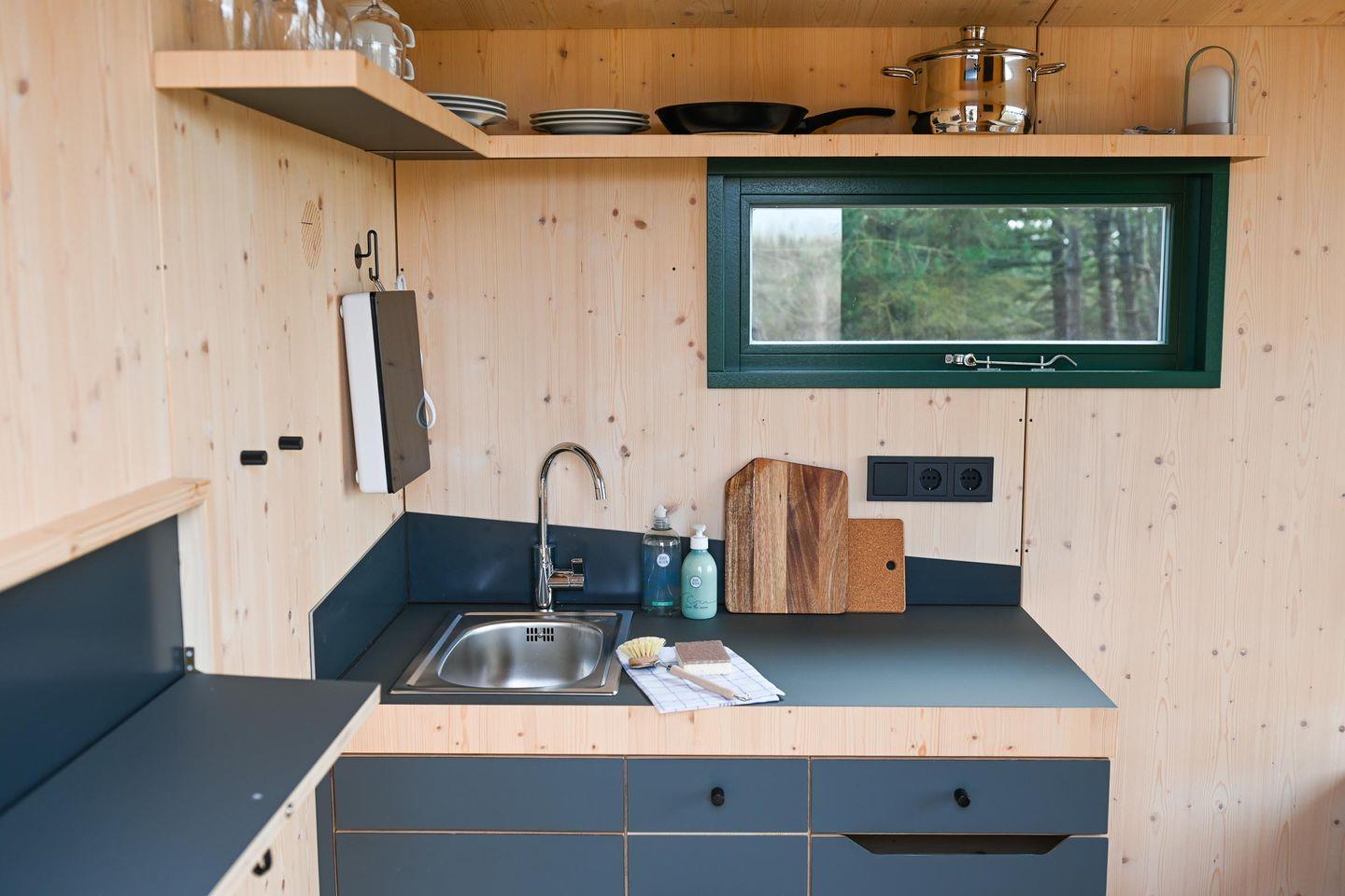 Die neuen Green Tiny Sleep Spaces sind ideal geeignet für Fahrradfahrer, Wanderer und andere Naturliebhaber, die nach einer nachhaltigen und stilvollen Übernachtungsmöglichkeit suchen. Auf fünf Quadratmetern findest du alles, was du für einen Kurzaufenthalt benötigst: ein komfortables Bett für zwei Personen, eine Kochnische mit Waschbecken und ausreichend Staumöglichkeiten. Duschen und Toiletten findest du in den Waschräumen auf dem Campingplatz Amrum. Die kleinen Geschwister der Green Tiny Houses vom Typ Pioneer werden ebenfalls in Schleswig-Holstein gebaut und bestehen ausschließlich aus wohngesunden Materialien. Außerdem bieten wir dir eine klimaneutrale Übernachtung dank Kompensation aller anfallenden CO2-Emissionen.