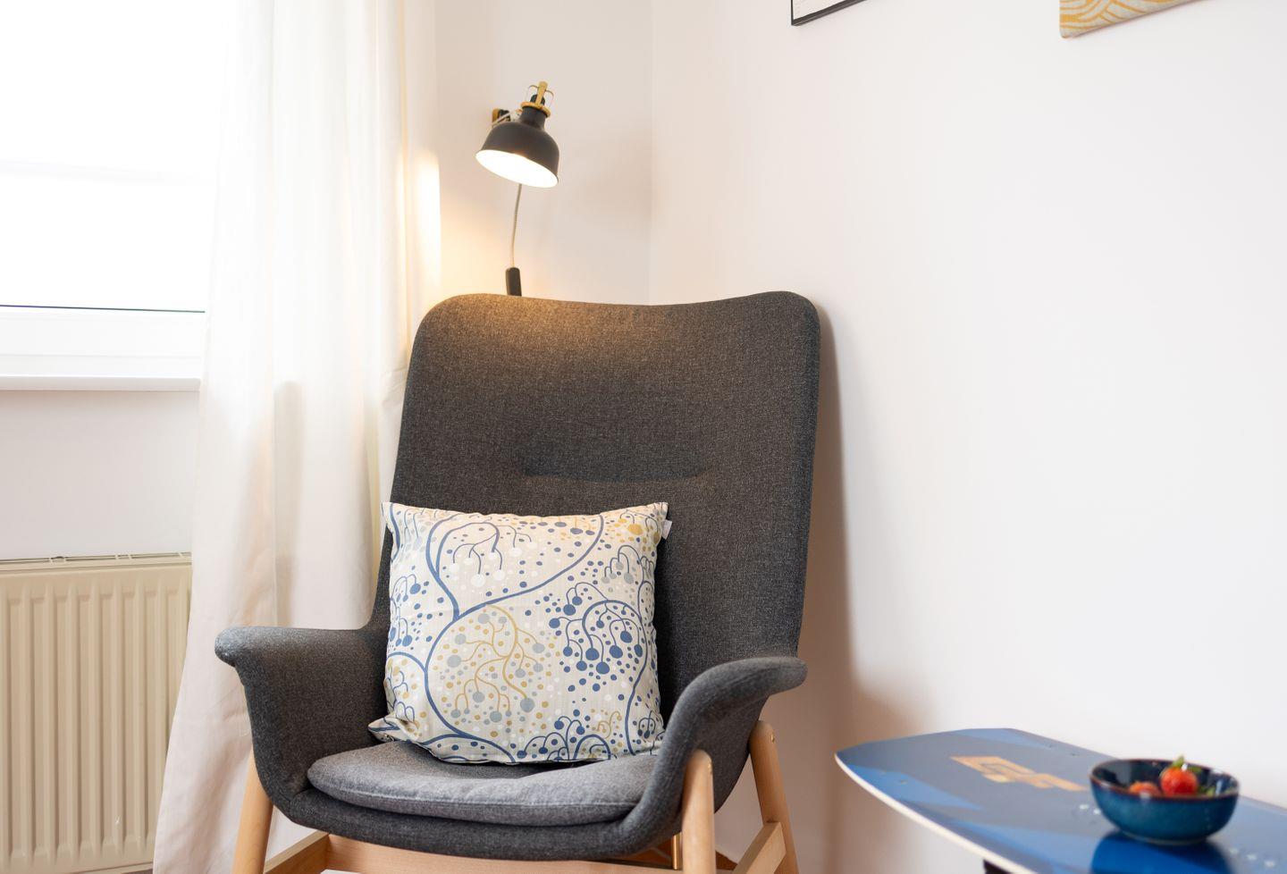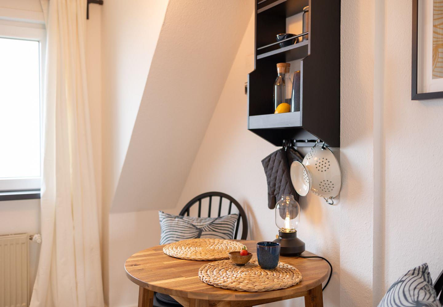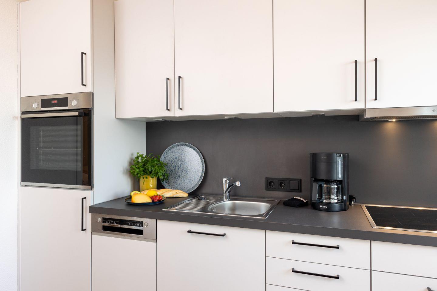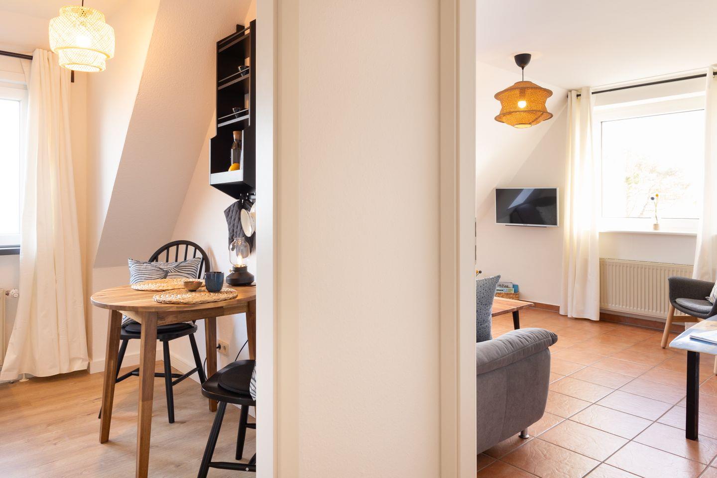 Die Ausstattung der Ferienwohnung lässt keine Wünsche offen. Sie finden hier ein Badezimmer mit Dusche. Die gut ausgestattete Küche ermöglicht es Ihnen, köstliche Mahlzeiten zuzubereiten und trotzdem den Blick auf das Meer zu genießen. Für gemütliche Abende steht Ihnen eine einladende Sitzecke zur Verfügung, in der Sie entspannen und den Alltag hinter sich lassen können.