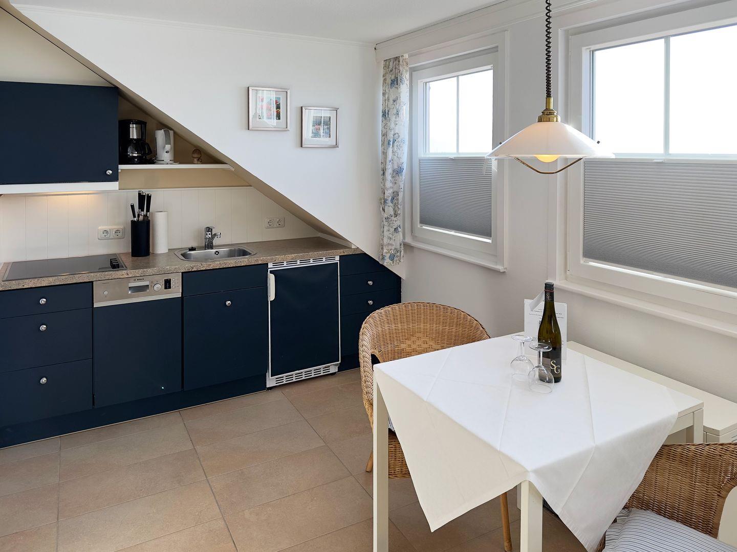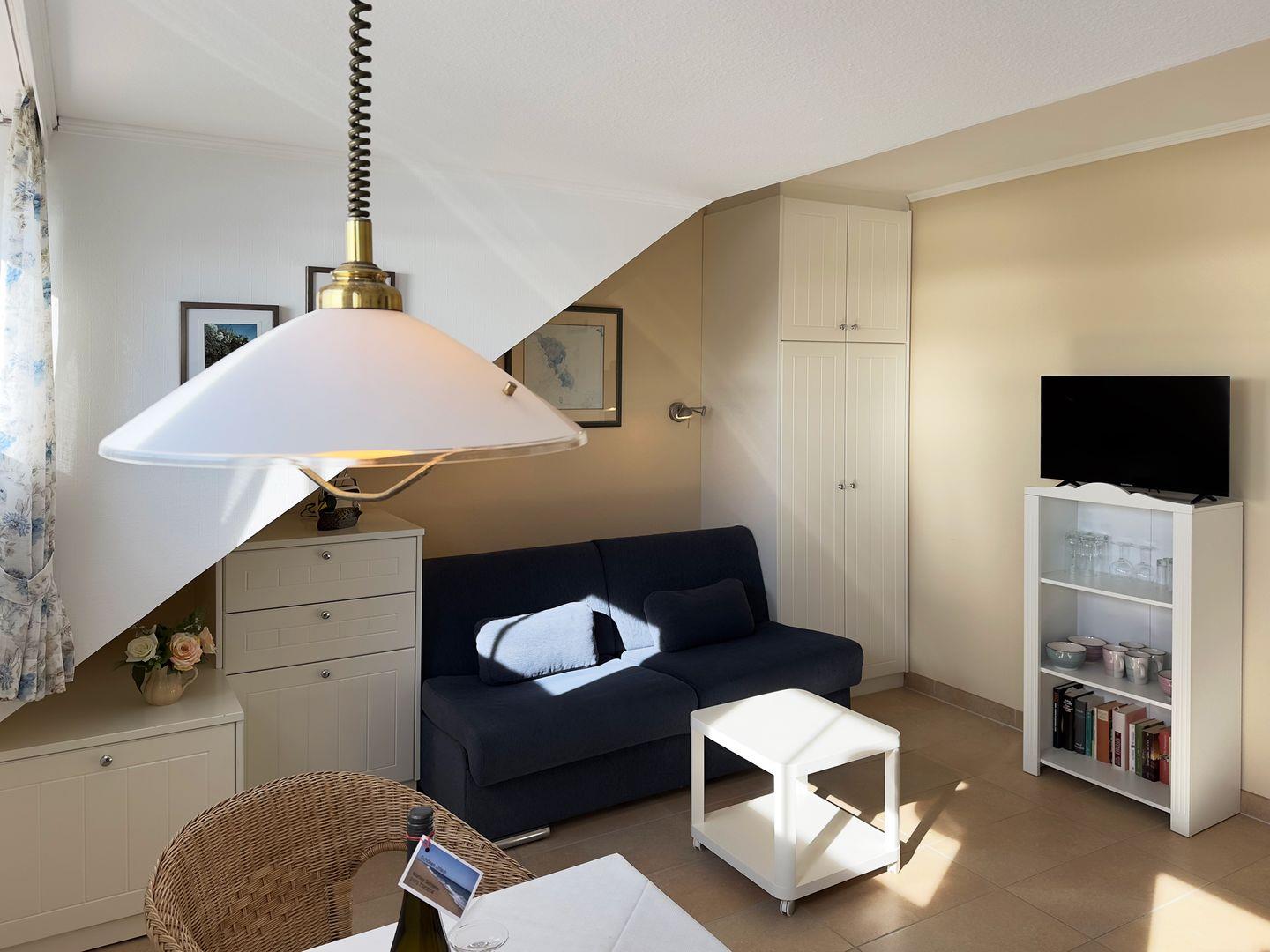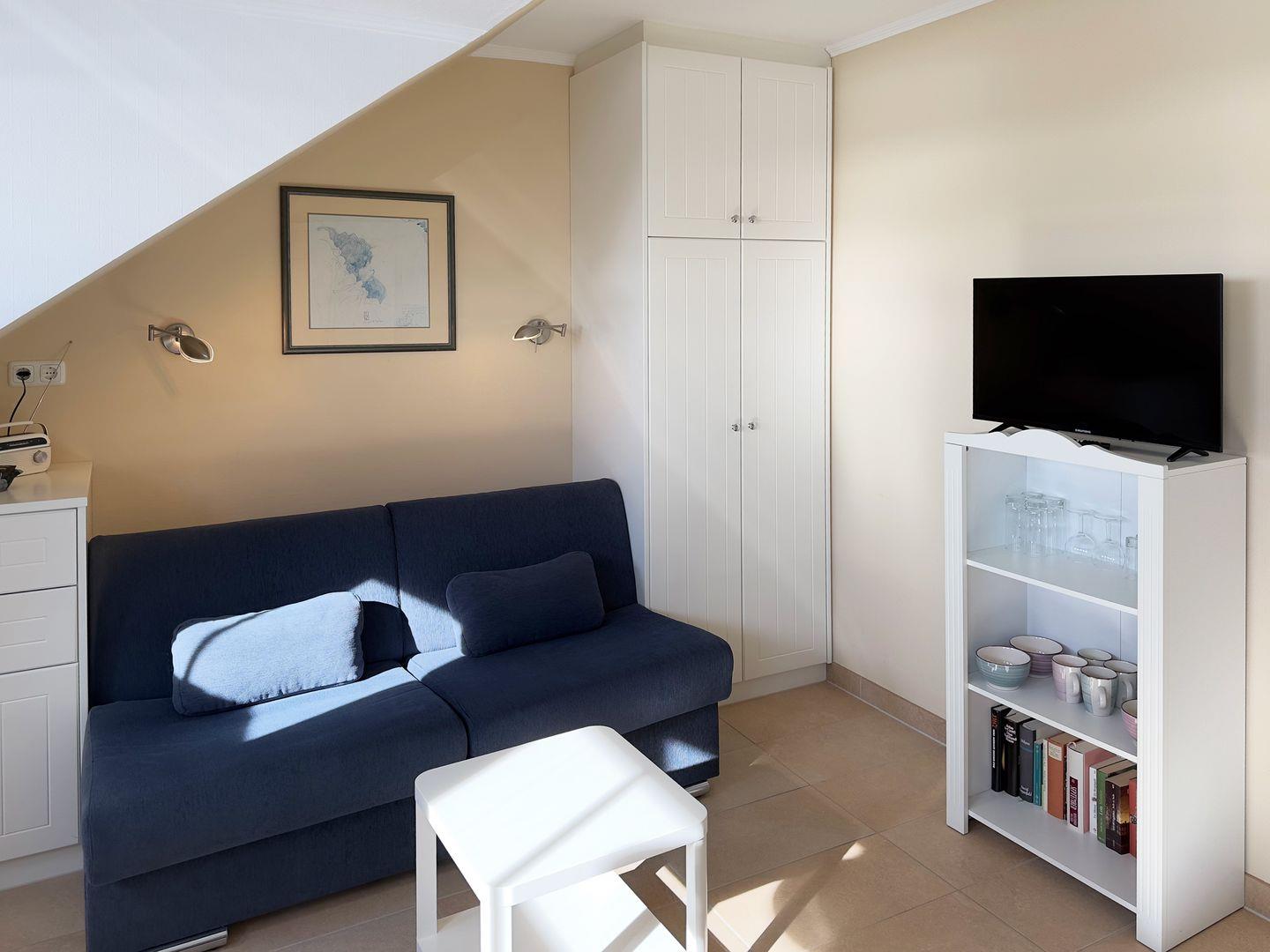 Die Ferienwohnung „Südspitze 34/26" im 1. Obergeschoss des Hauses in Wittdün auf Amrum ist eine 1-Zimmer-Ferienwohnung (ca. 23 qm Grundfläche) mit Schlafmöglichkeiten für 1 bis 2 Personen.