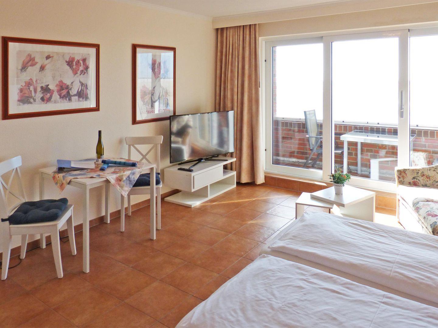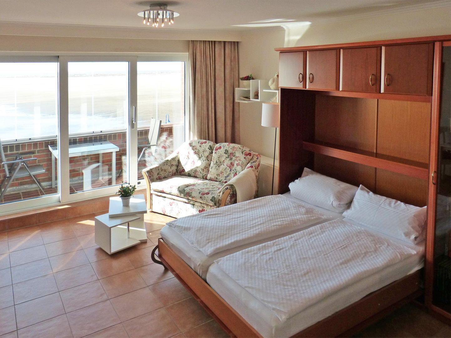 Die Ferienwohnung „Obere Wandelbahn 15/5" im 1. Obergeschoss des Hauses „Obere Wandelbahn 15b" in Wittdün auf Amrum ist eine 1-Zimmer-Ferienwohnung (ca. 40 qm Grundfläche) mit Schlafmöglichkeiten für 1 bis 2 Personen.
