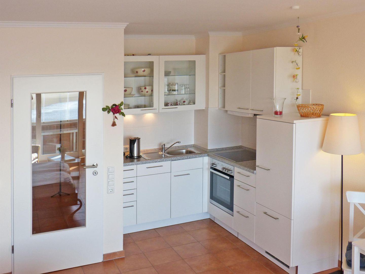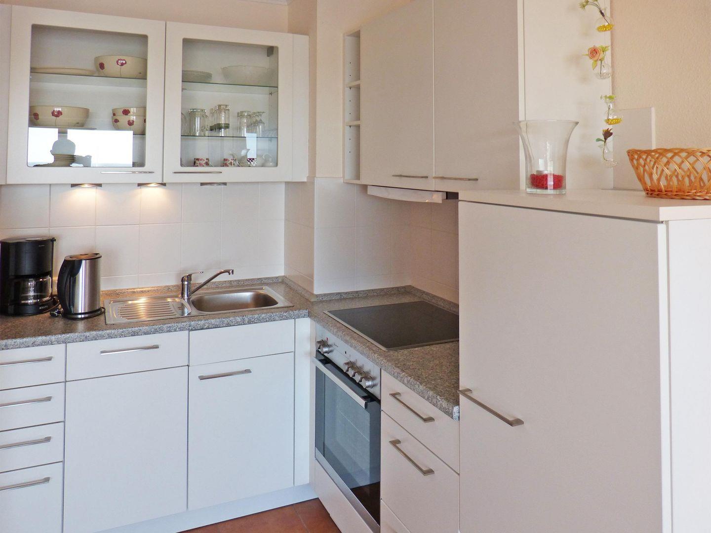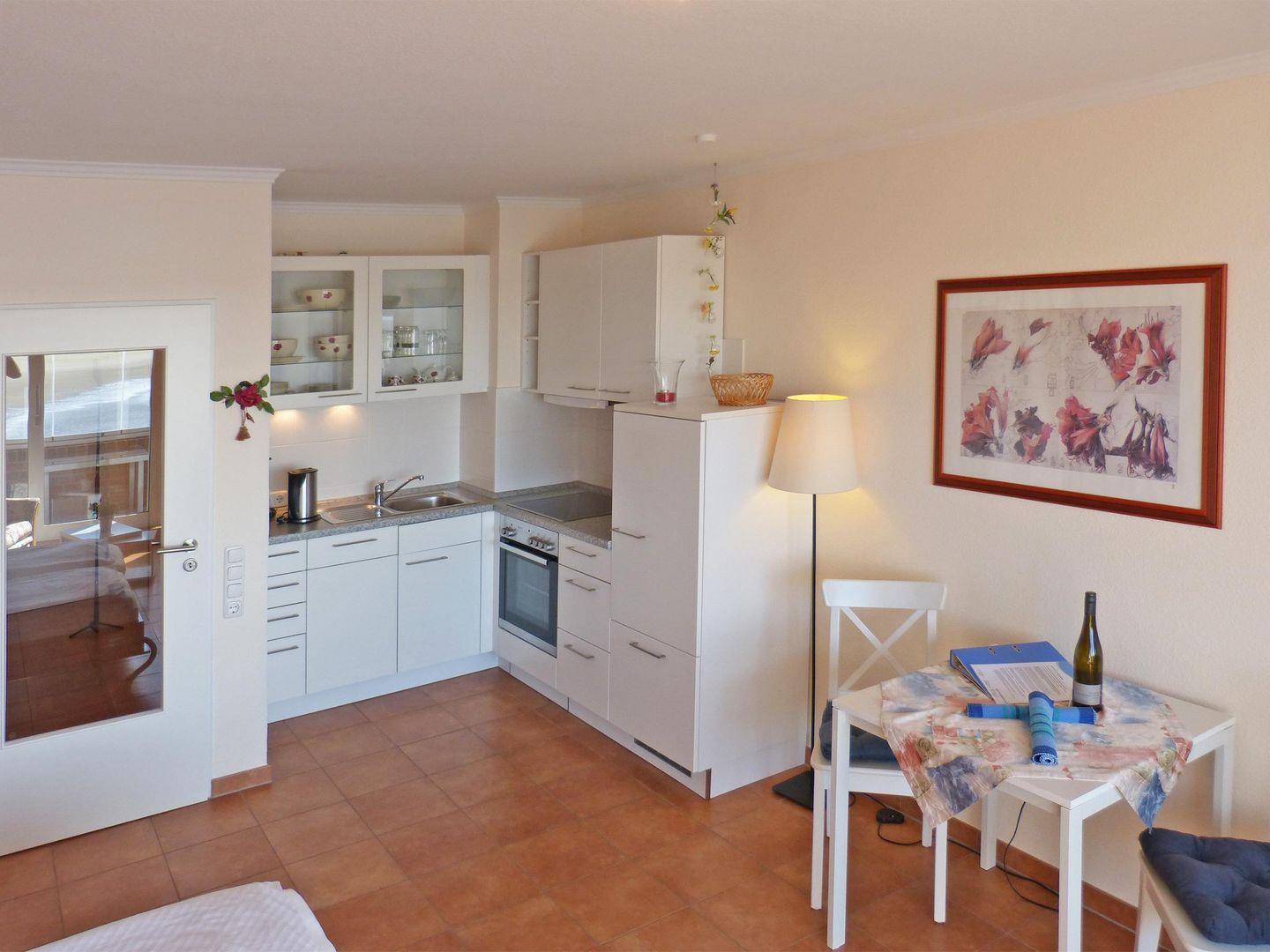 Die Wohnung verfügt über einen kombinierten Wohn-Schlafraum mit WLAN, Sat-TV und offener Küche, 1 Badezimmer mit Dusche und WC; eine verglaster Süd-Balkon (Loggia) mit Möbeln und Meerblick.