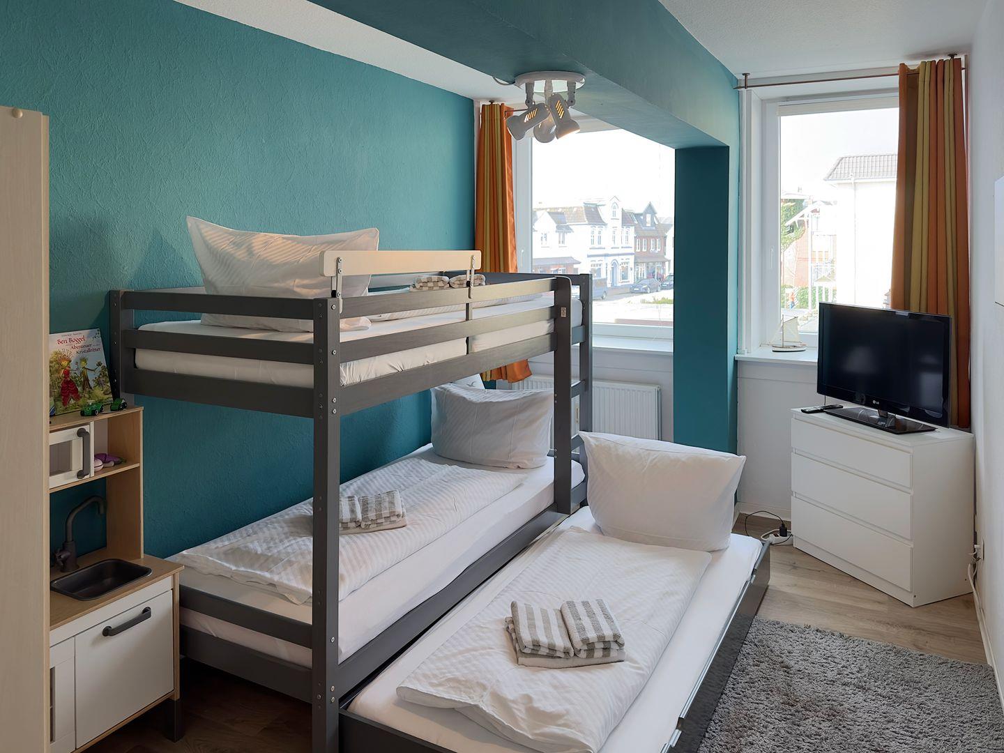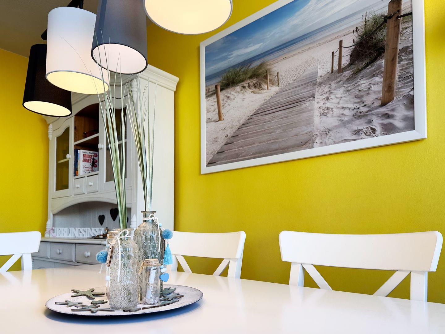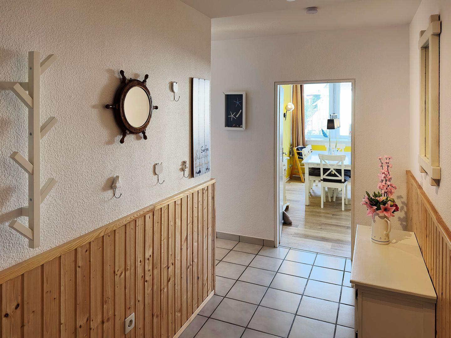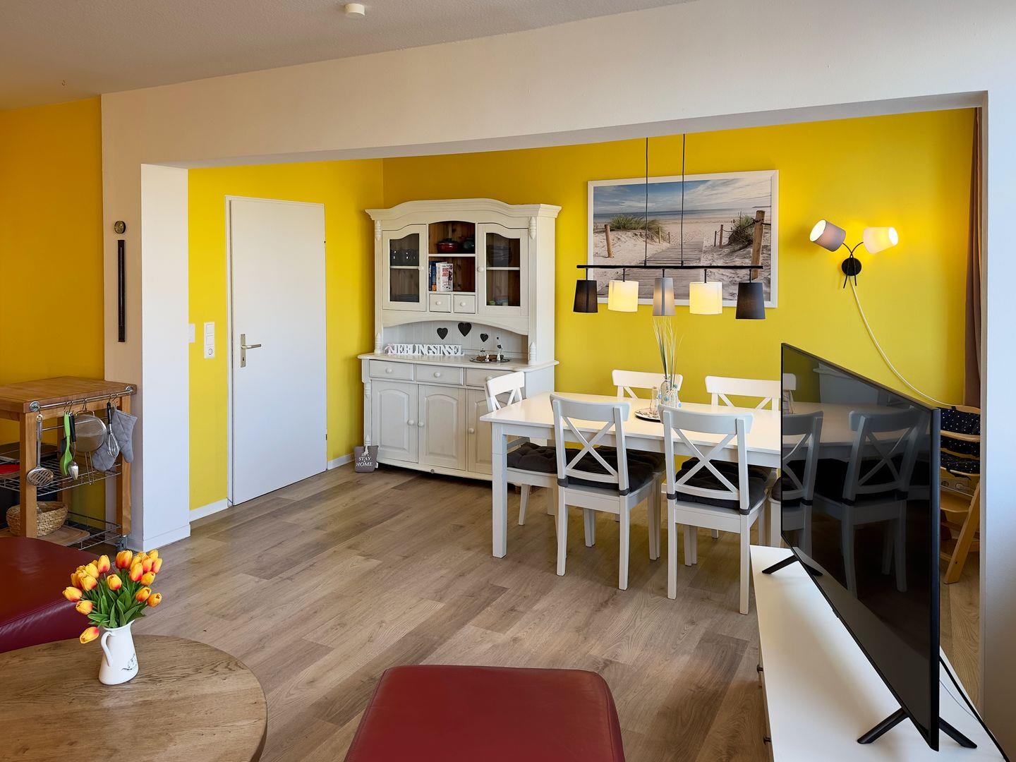 Die Ferienwohnung „Willkommen bei den Hartmanns" im 1. Obergeschoss des Hauses „Nordenlicht" in Wittdün auf Amrum ist eine 4-Zimmer-Ferienwohnung (ca. 88 qm Grundfläche) mit Schlafmöglichkeiten für bis zu 7 Personen (5 Erwachsene und 2 Kinder).