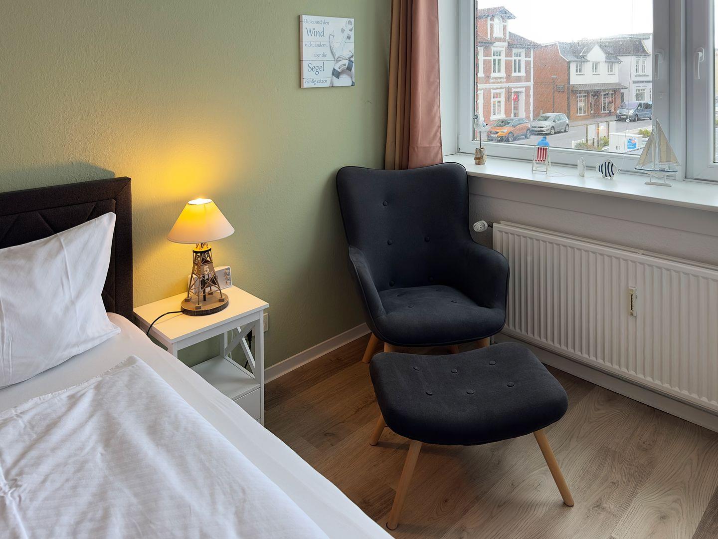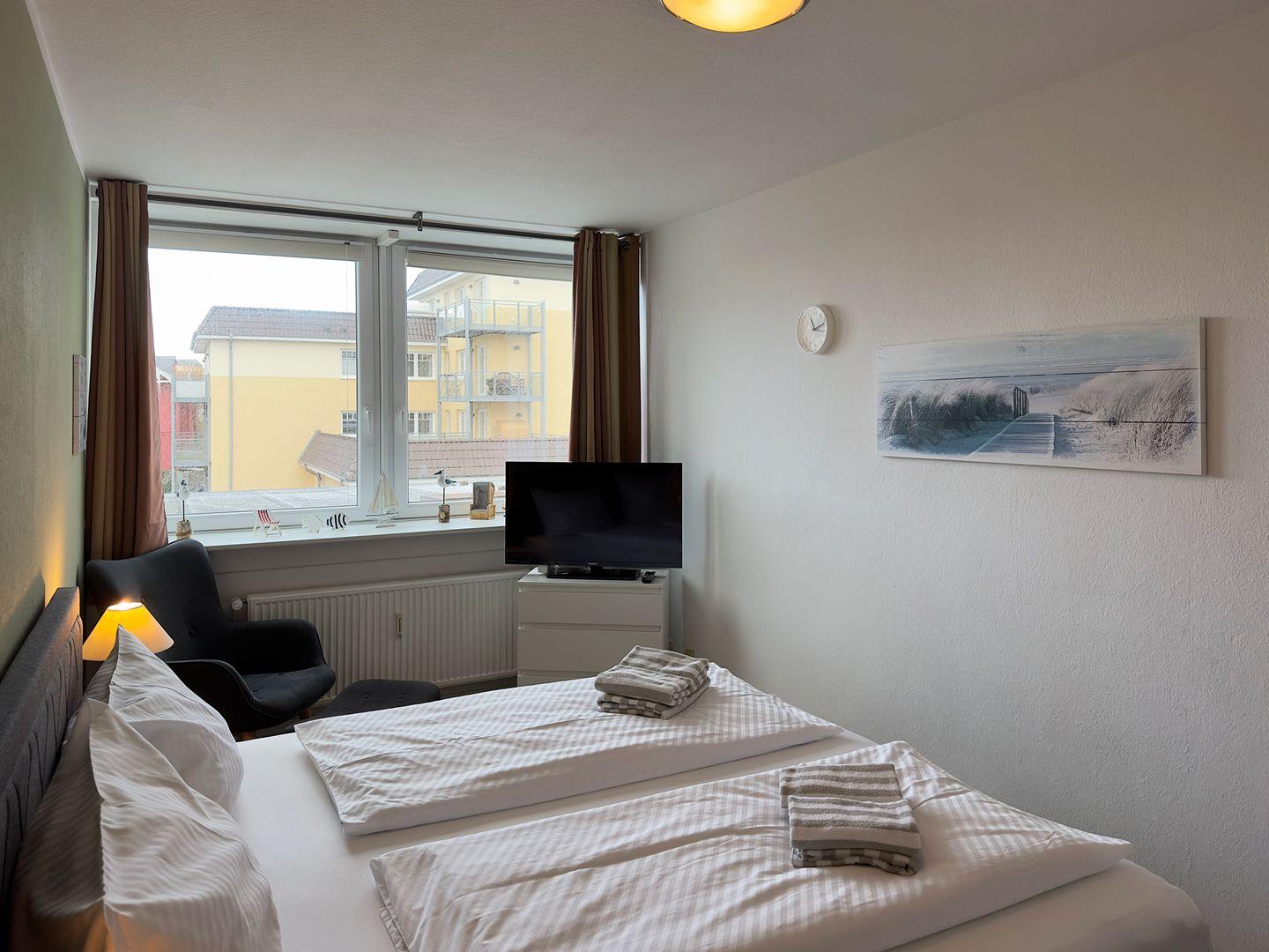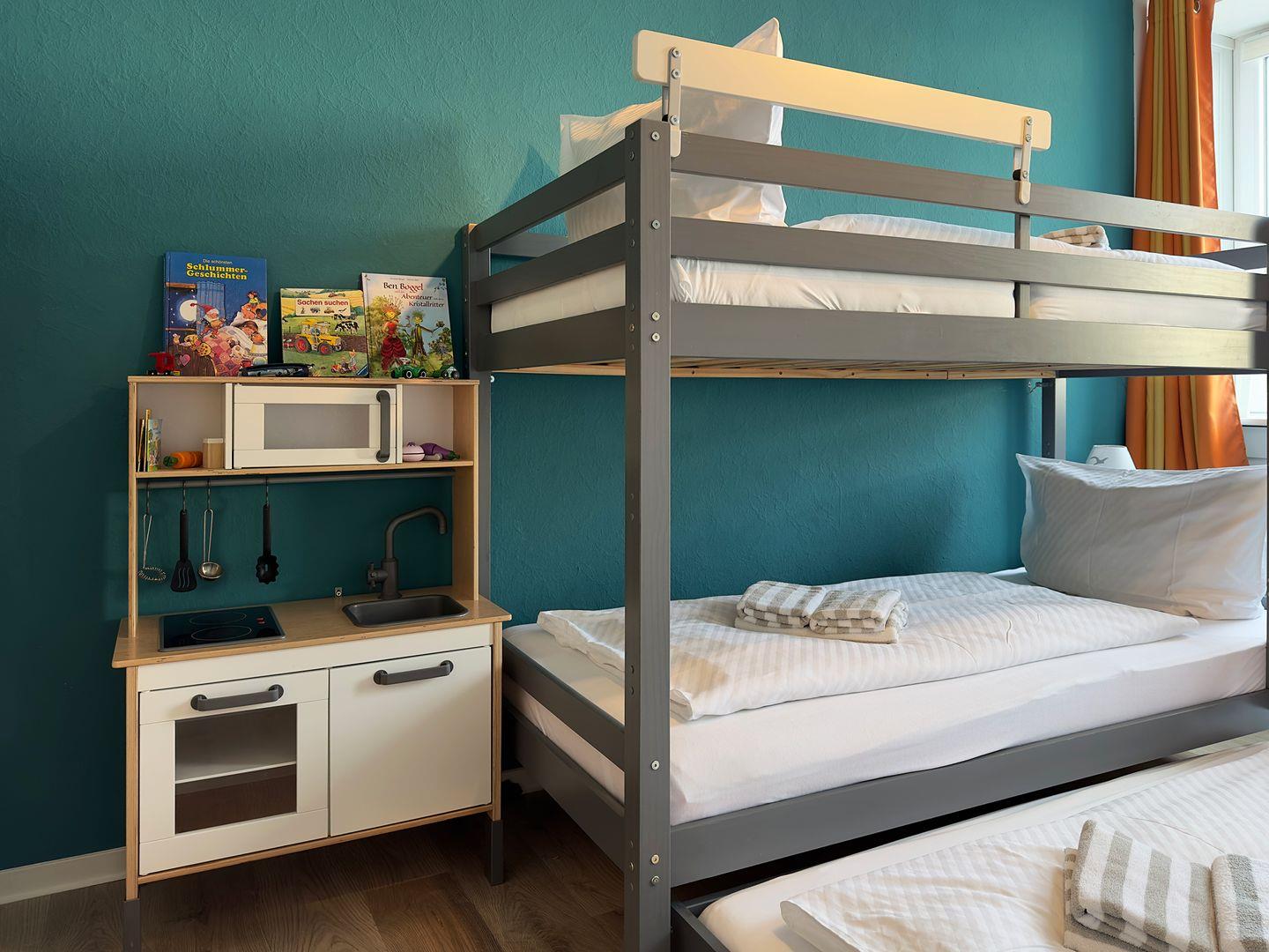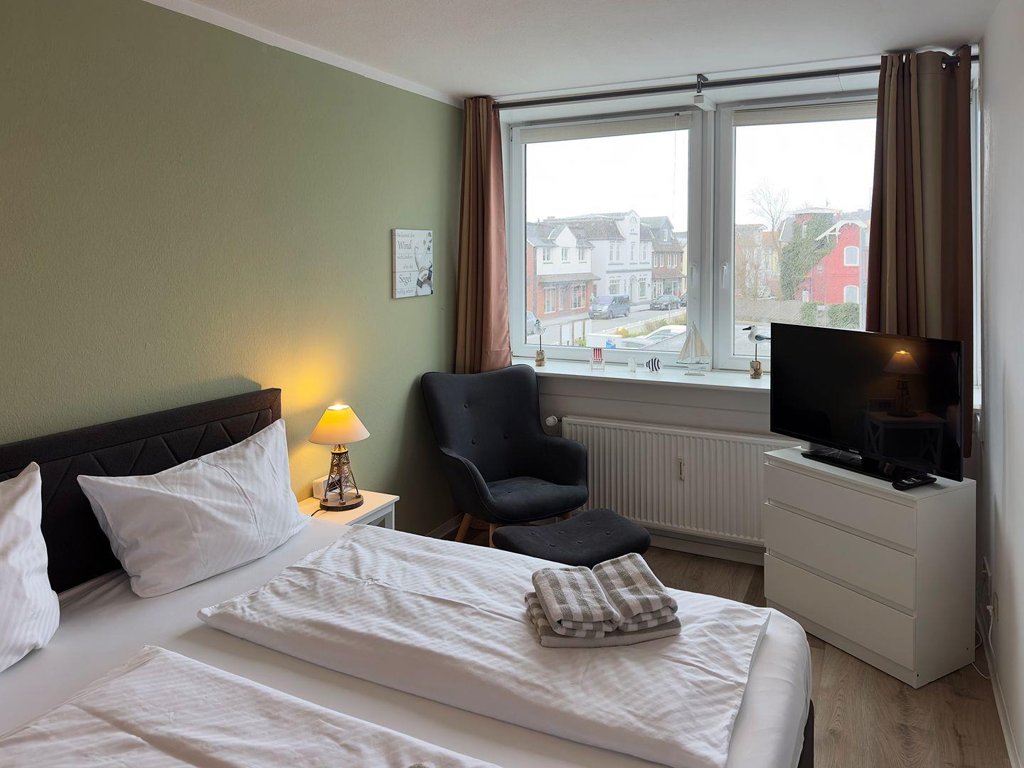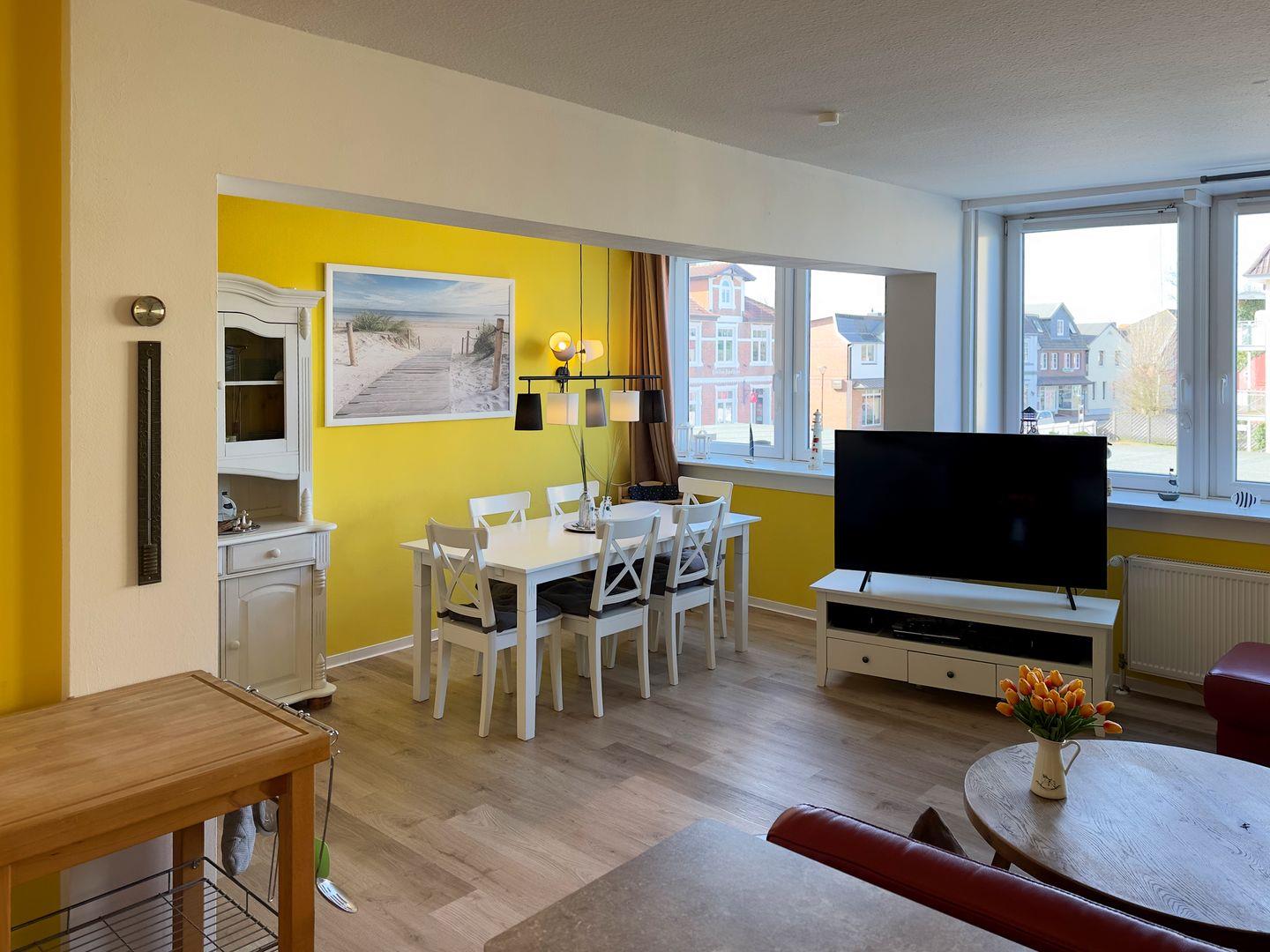 Die Ferienwohnung „Willkommen bei den Hartmanns" im 1. Obergeschoss des Hauses „Nordenlicht" in Wittdün auf Amrum ist eine 4-Zimmer-Ferienwohnung (ca. 88 qm Grundfläche) mit Schlafmöglichkeiten für bis zu 7 Personen (5 Erwachsene und 2 Kinder).