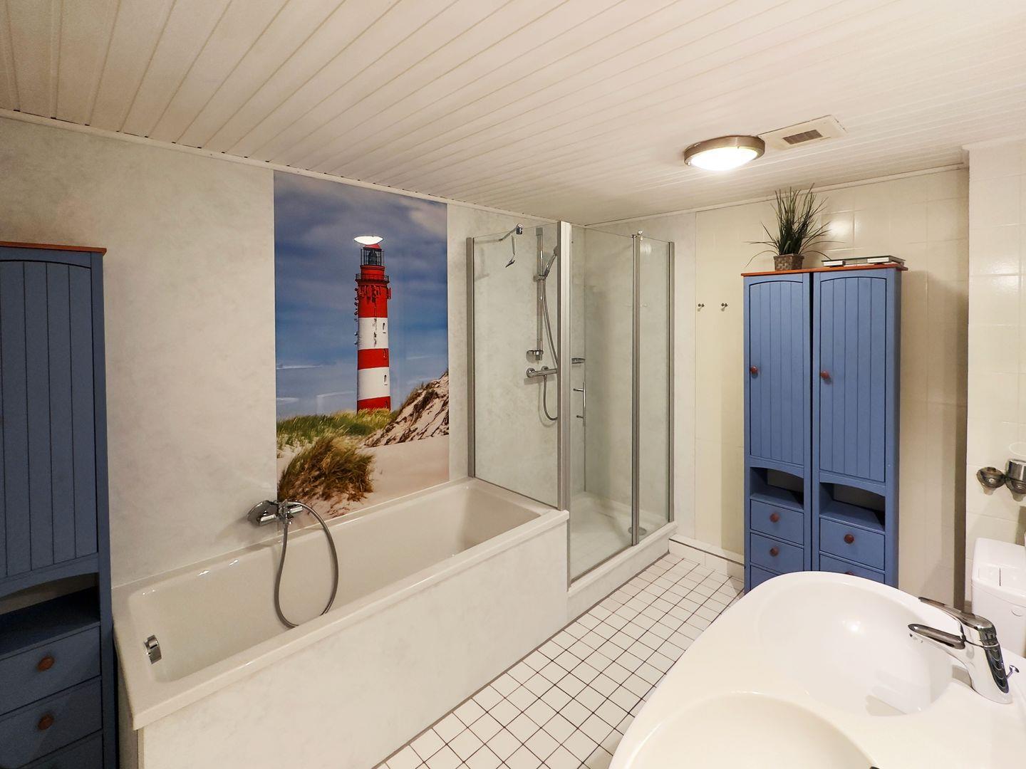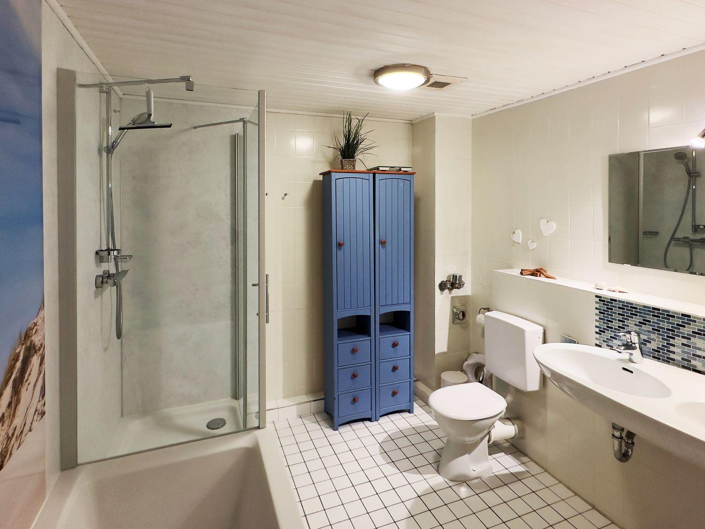 Die Wohnung verfügt über 1 Wohnraum mit Sat-TV, WLAN und offener Küche, 3 Schlafzimmer, 1 Badezimmer mit Badewanne, Dusche, Doppel-Waschbecken und WC.