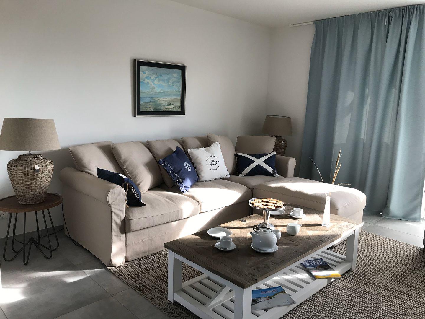 Die Ferienwohnung *Weiße Düne 3 / OceanView* im Erdgeschoss des Hauses *Weiße Düne* in Wittdün auf Amrum ist eine 3-Zimmer-Ferienwohnung (ca. 93 qm Grundfläche) mit Schlafmöglichkeiten für 2 bis 5 Personen inklusive kostenfreier Nutzung des "Eilun Fit“.