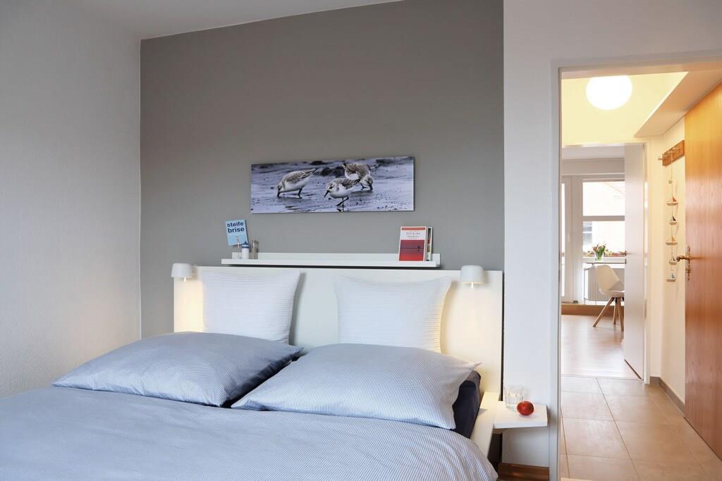 Die FeWo Sanderling (kleiner Watvogel am Wattenmeer) wurde 2017 komplett saniert und neu eingerichtet. Schönes Wohnzimmer mit Schlafcouch für eine mögliche 3. Person, modernes Duschbad/WC, ein Schlafzimmer mit Doppelbett und ein überdachter Balkon laden Sie ein. Die komplett ausgestattete Küche verfügt über einen Backofen und einen Geschirrspüler. Fahrrad-Abstellmöglichkeit direkt am Haus