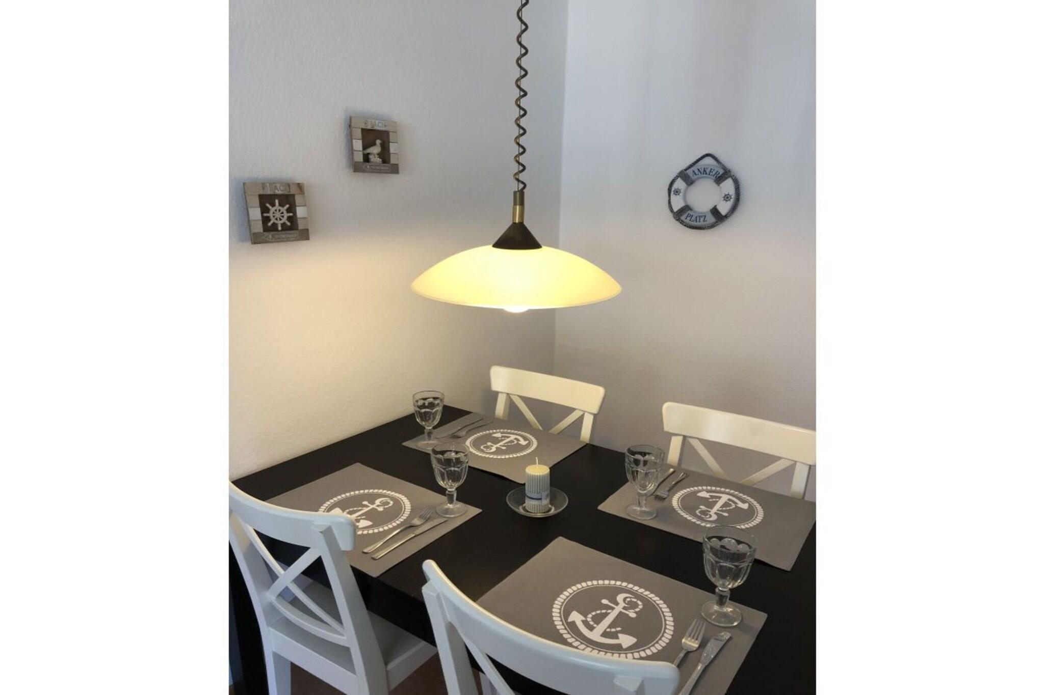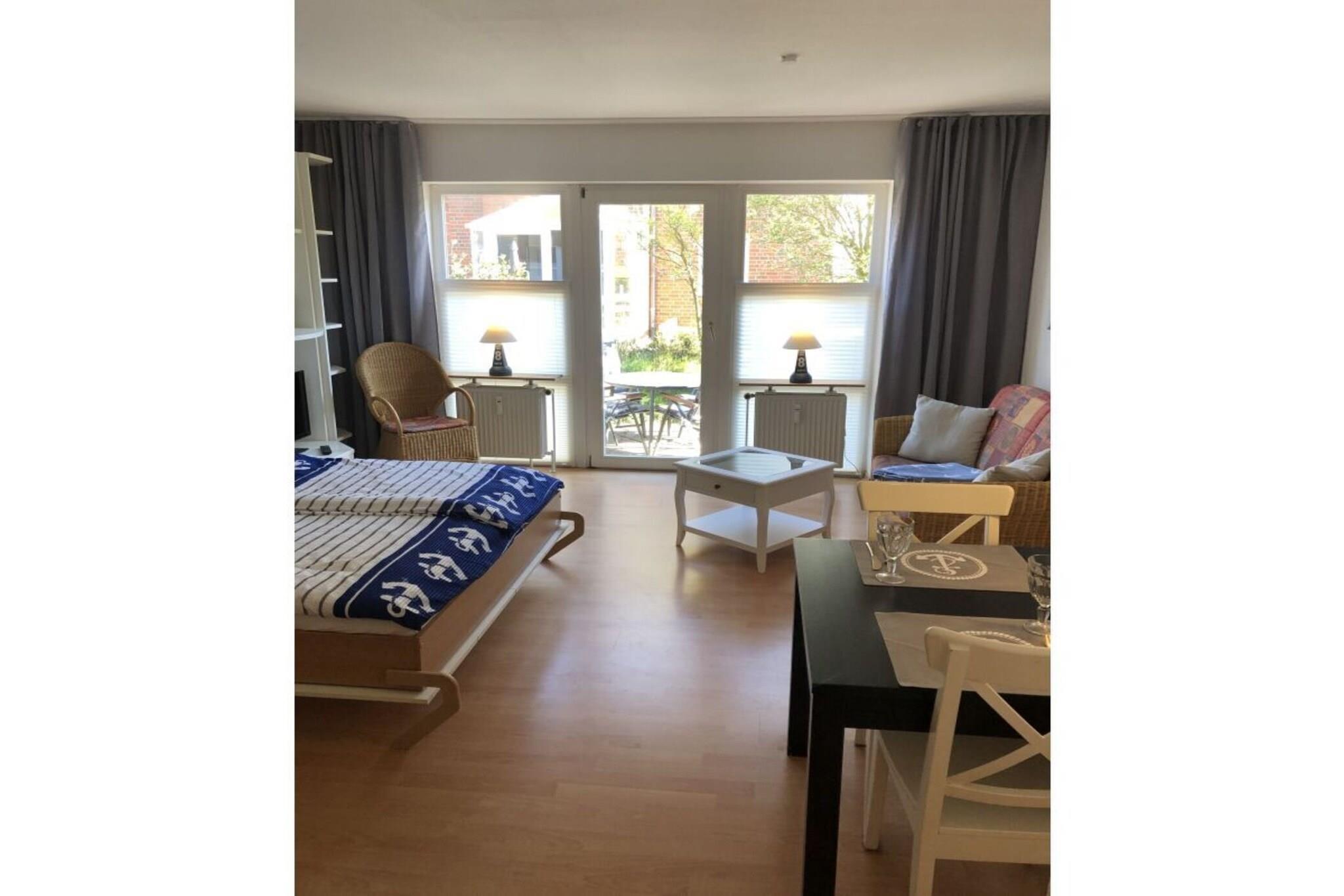 Ferienwohnung Seestern im Erdgeschoß: ca. 55 qm, großes Wohn-/Eßzimmer mit anschließender Terrasse, komplett eingerichtete Küche mit Geschirrspüler (ohne Backofen), Schlafzimmer mit Doppelbett, Du/WC. Im Wohnraum befindet sich ein Schrank-Doppel-Bett und eine moderne Couch, Sessel und einen großzügigen Esstisch. Diese Wohnung ist für max. 4 Personen (plus Baby) ausgelegt. Hier dürfen Sie Ihren Hund gern mitbringen !