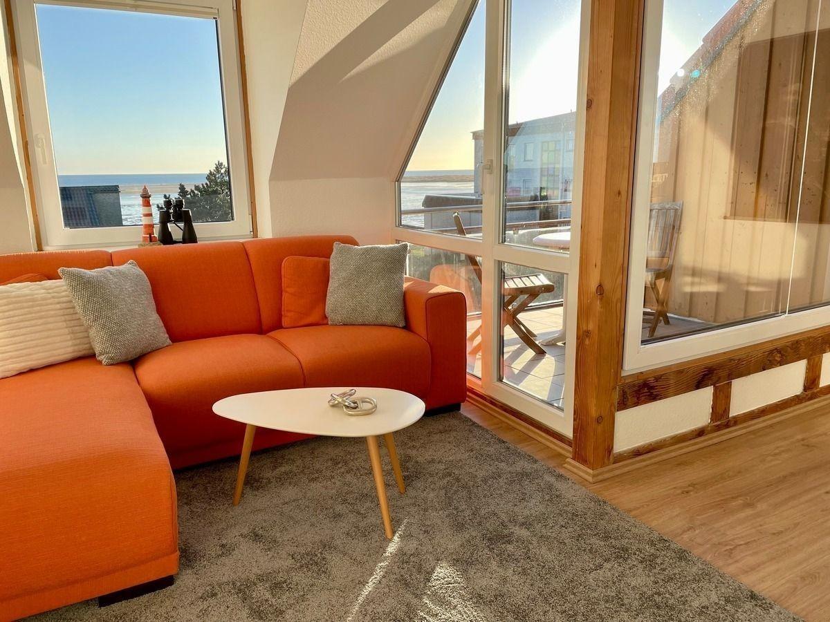 Maisonettewohnung mit einem gigantischen Blick auf's Meer und den Amrumer Leuchtturm, das erwartet Sie in der Ferienwohnung "Brandung" in Wittdün auf Amrum! Das separate Schlafzimmer, das Bad und das Wohnzimmer der Ferienwohnung "Brandung"gewähren Ihnen einen einzigartigen Blick auf das Wahrzeichen Amrums - den Leuchtturm - sowie die Brandung am weitläufigen Sandstrand "Kniepsand". Die Gezeiten immer in Blick können sie hier eine tolle Auszeit verbringen. Keine weiteren Wohnungen befinden sich mehr über Ihnen, da die Wohnung in der Endetage liegt (2. OG).