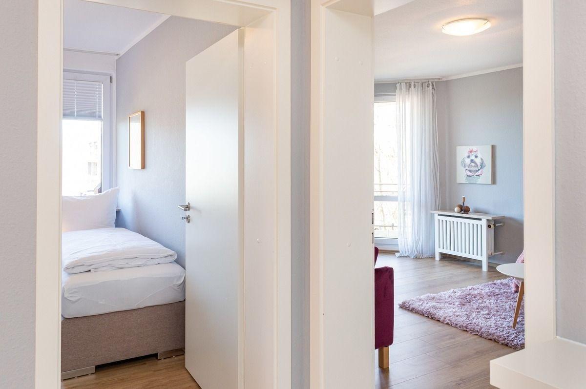 Die Ferienwohnung bietet einen harmonischen Rückzugsort für erholsame Tage. Sie verfügt über zwei gemütliche Schlafzimmer, eines mit einem komfortablen Doppelbett und das andere mit zwei Einzelbetten, ideal für Familien oder Freunde. Die separate, voll ausgestattete Küche beinhaltet moderne Annehmlichkeiten wie einen Geschirrspüler, Backofen, Mikrowelle, Kaffeemaschine und Toaster, die das Kochen zum Vergnügen machen. Im lichtdurchfluteten Duschbad findet man alles Nötige für eine erfrischende Auszeit. Praktische Extras wie eine Waschmaschine, ein Wäschetrockner und ein eigener Parkplatz erhöhen den Komfort. Diese großzügige Wohnung ist perfekt geeignet, um den Alltag hinter sich zu lassen und die Zeit in vollen Zügen zu genießen.