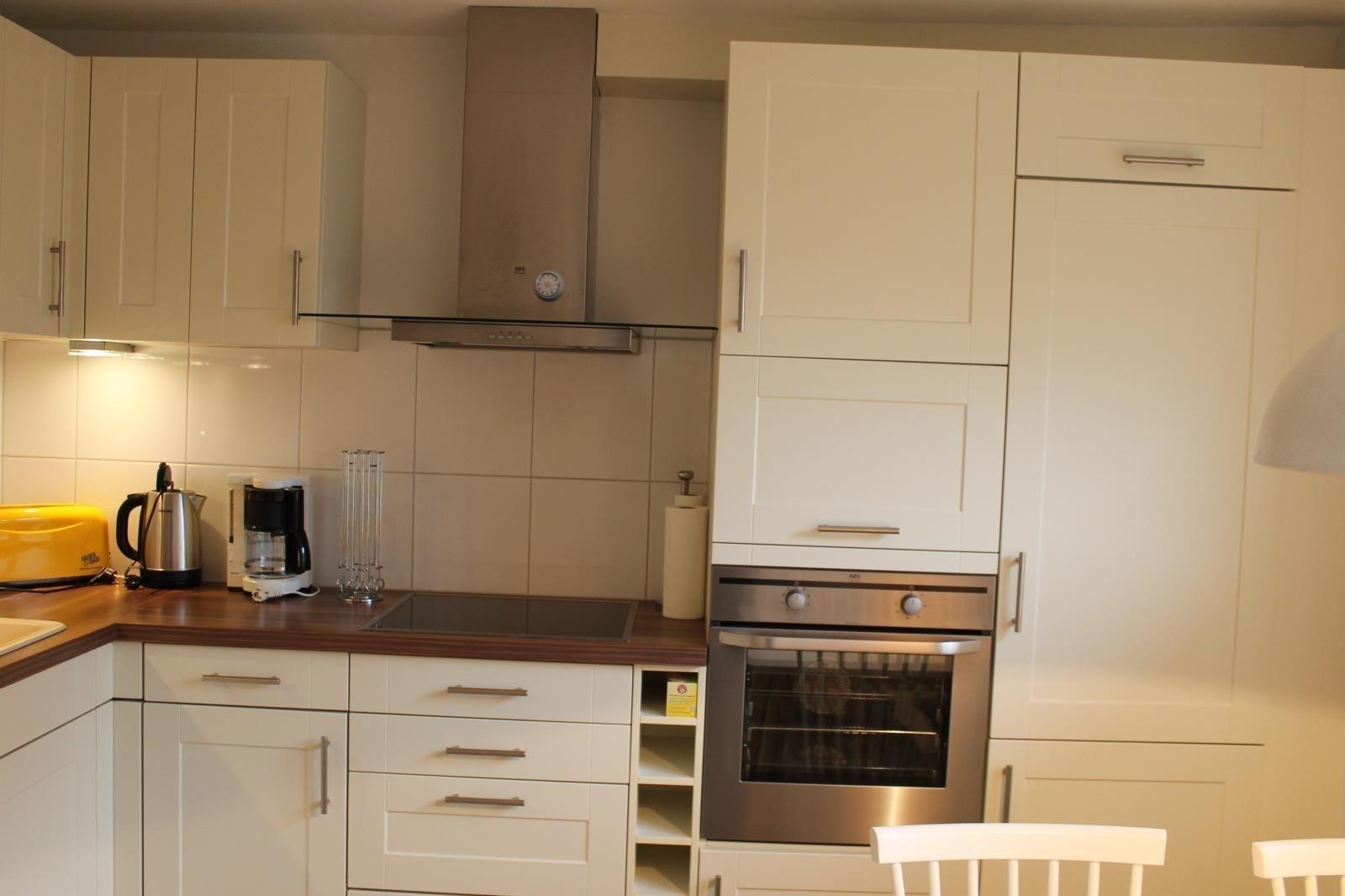 Die gut ausgestattete Küchenzeile verfügt über einen Elektro-/Gasherd, Backofen, Mikrowelle, Geschirrspüler, Kühlschrank und eine Kaffeemaschine – alles, was zum Kochen und Genießen benötigt wird. Ein Toaster und ein Kinderhochstuhl stehen ebenfalls zur Verfügung.