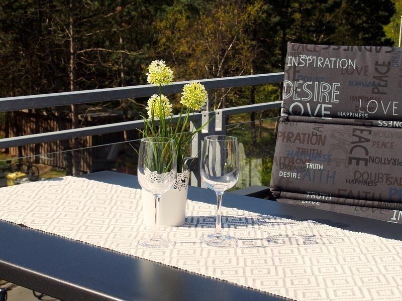 Die Ferienwohnung bietet einen einladenden Balkon, der zum Entspannen und Genießen der frischen Luft einlädt. Hier kann man den Tag mit einem Frühstück im Freien starten oder den Abend bei einem Glas Wein ausklingen lassen. Der Außenbereich ist perfekt gestaltet, um die natürliche Schönheit der Umgebung in vollen Zügen zu erleben.