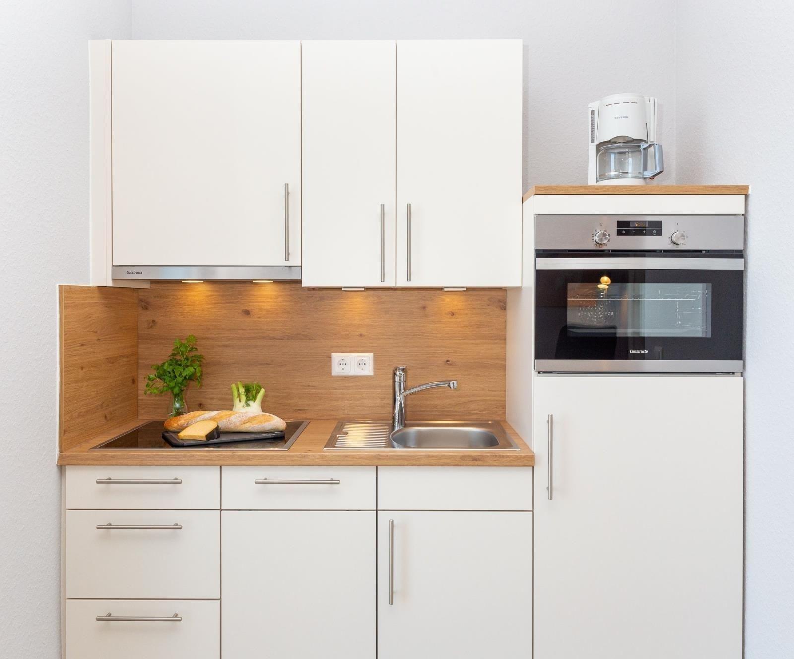 Eine moderne Wohnküche mit guter Ausstattung ,ein große Schlafzimmer sowie ein Tageslichtduschbad .