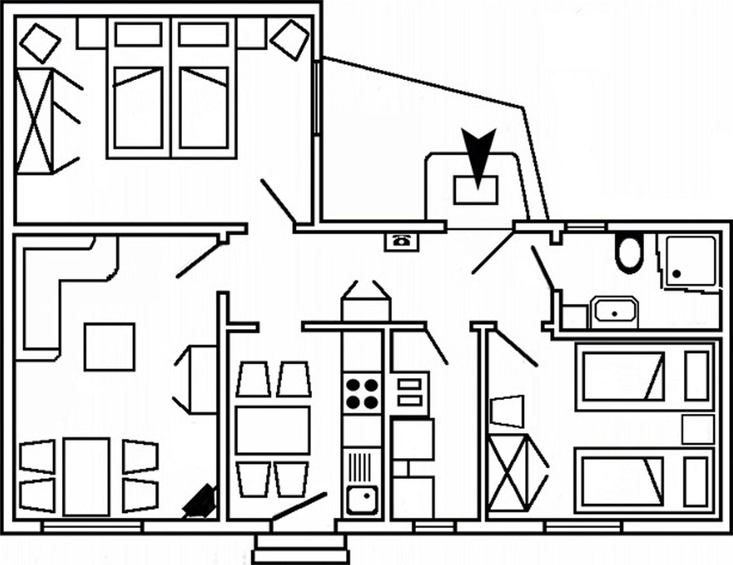 Im Wohnzimmer finden Sie neben dem Fernseher, einem Radio CD-Player auch einen zusätzlichen Essplatz. Die seperate und komplett eingerichtete Einbauküche verfügt über einen weiteren Esstisch mit 4 Plätzen. Ansonsten finden Sie einen Backofen und eine Spülmachine in der Küche vor. Im Duschbad haben wir einen Föhn für Sie bereitgestellt. In der Abstellkammer steht eine Waschmaschine, ein Bügeleisen und Bügelbrett sind vorhanden.