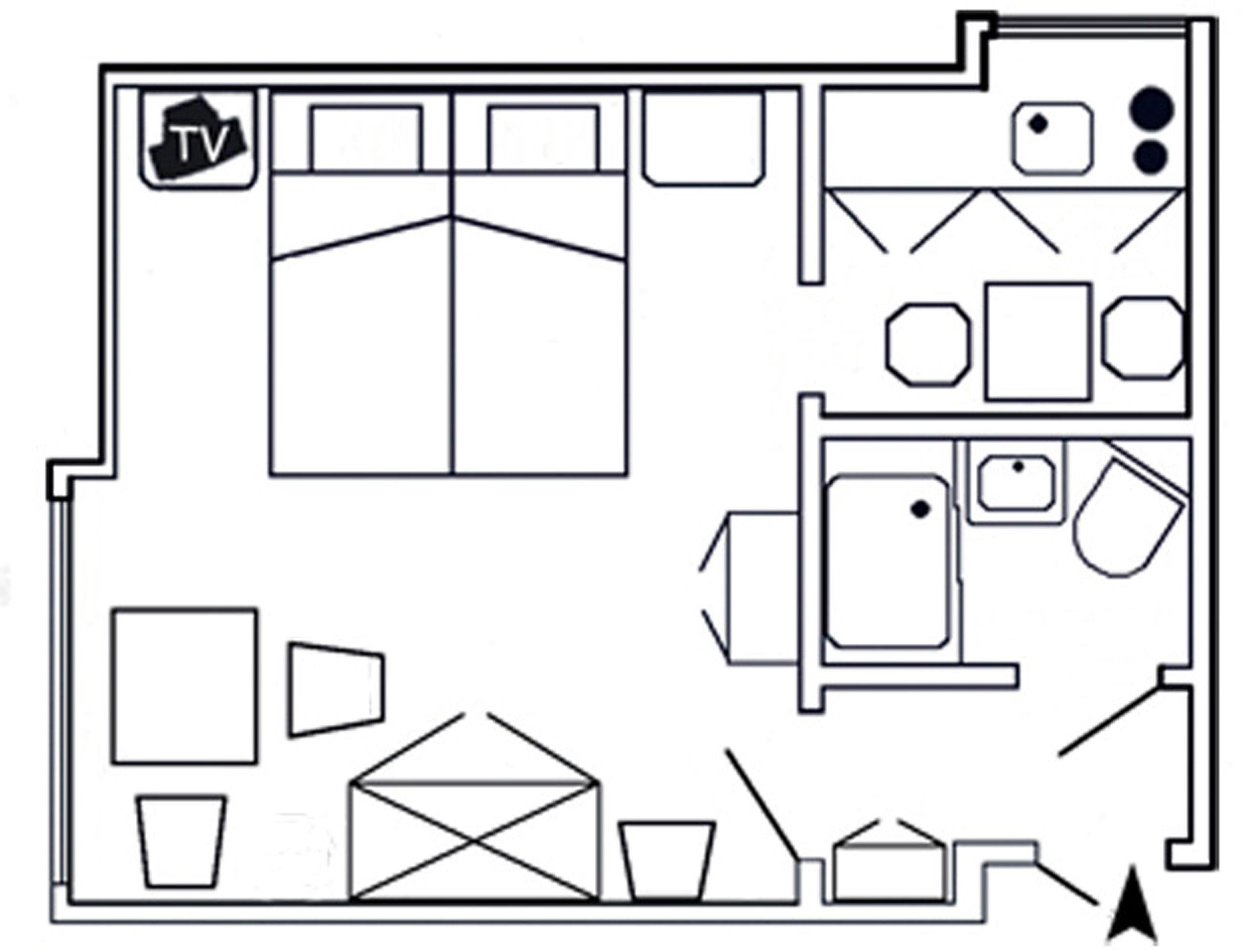 Die Wohnung besteht aus einem kombinierten Wohn- und Schlafraum, einer kleinen seperaten Küche und einem Duschbad. Im Wohnraum finden Sie neben einem gemütlichem und großem Doppelbett auch einen Fernseher und ein Radiowecker vor.