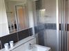 Bad mit Dusche /Duschtrennwand, WC, Waschbecken, Fön, Badezimmerschrank
