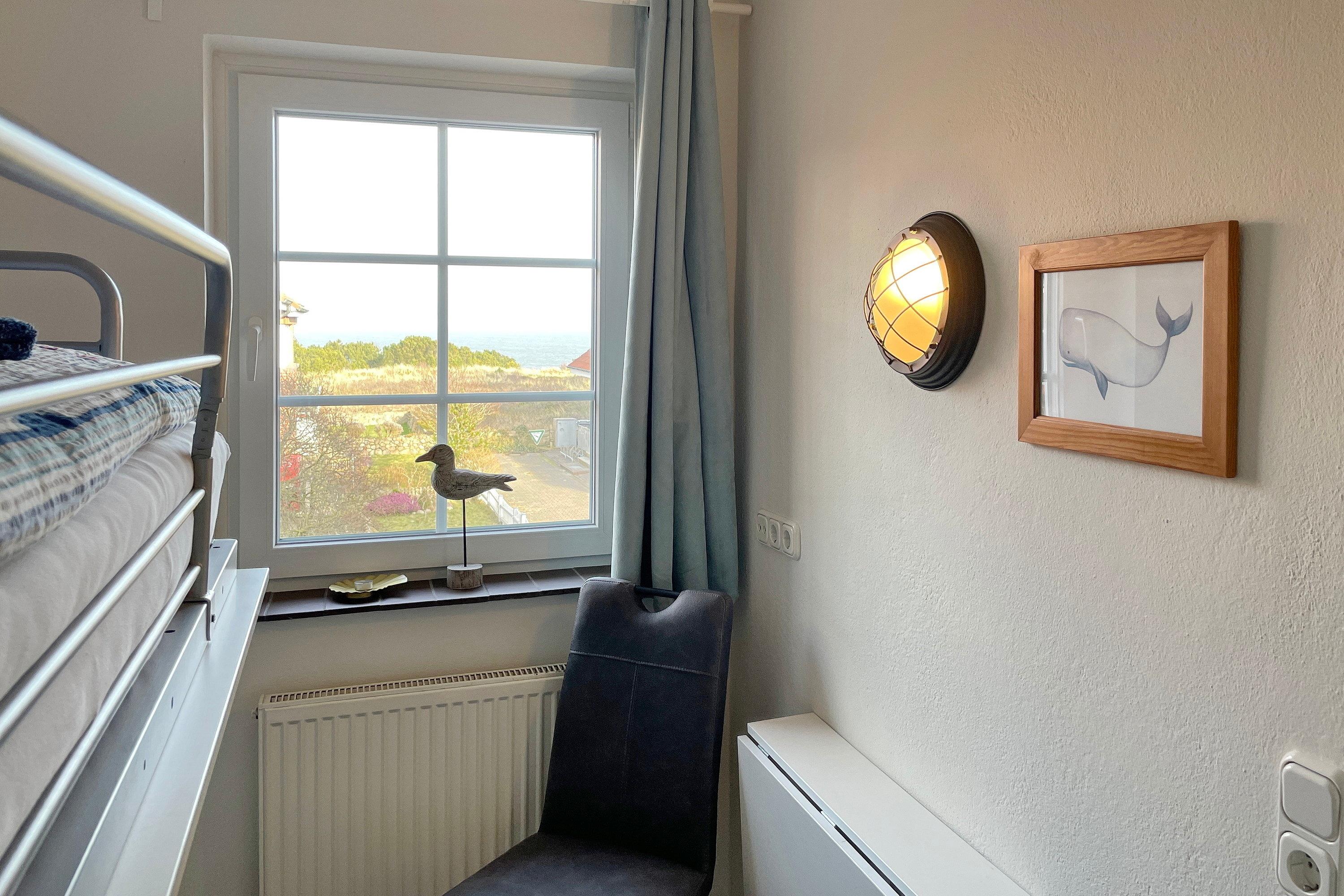 Lust auf einen Tapetenwechsel? Dann schnappen Sie sich Ihre Koffer und steuern Sie unsere gemütliche Ferienwohnung an! Zwei Zimmer stehen Ihnen zur Verfügung - perfekt für eine kleine Familie oder ein Pärchen mit Anhang. Im Wohn-/Schlafzimmer finden Sie alles, was das Herz begehrt: ein kuscheliges Doppelbett für süße Träume, einen Schrank mit genügend Platz und eine Küchenzeile für spontane Kochsessions. Am Esstisch lässt sich's prima schlemmen und plaudern. Nebenan wartet ein Schlafzimmer mit einem Etagenbett, dass einzeln aufgeklappt werden kann und somit auch als Einzelbett fungiert. Hier haben Sie den Blick aufs Meer ebenso wie vom Balkon. Das Bad gleich um die Ecke punktet mit Fenster, Dusche und WC - so können Sie sich gleich schnell fertig machen für einen herrlichen Tag auf Amrum. Der Clou: Vom Wohn-/Schlafzimmer aus geht's raus auf den Balkon. Hier können Sie die Beine hochlegen, die Sonne auf der Nase kitzeln lassen. Richtung Süd-Westen gelegen, verwöhnt er Sie mit reichlich Helligkeit. Im Untergeschoss steht Ihnen ein eigenes Gefrierfach für Ihre Eisvorräte zur Verfügung. Und keine Sorge um schmutzige Wäsche - die gemeinschaftliche Waschmaschine und Trockner können Sie gratis nutzen. Also, worauf warten Sie noch? Packen Sie Ihre sieben Sachen und machen Sie es sich in unserem gemütlichen Feriendomizil bequem. Hier können Sie so richtig die Seele baumeln lassen!