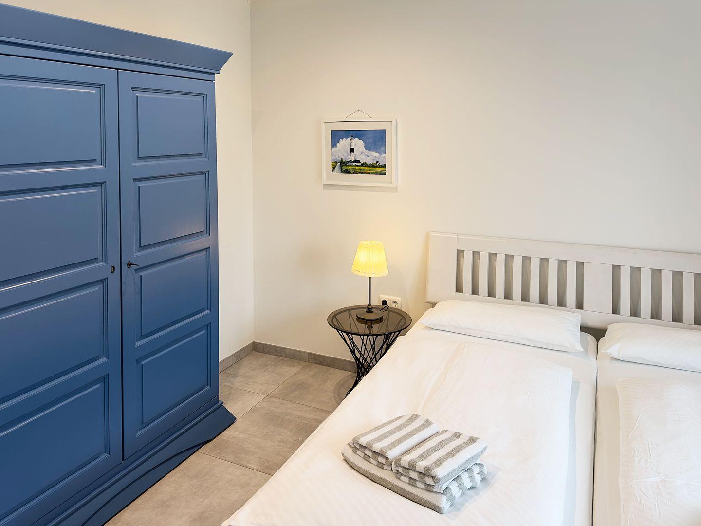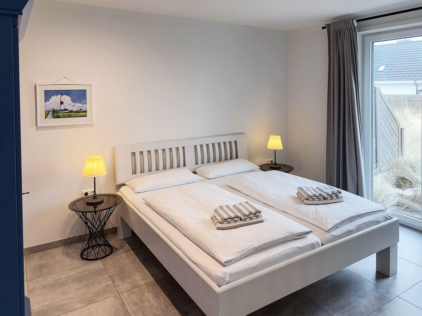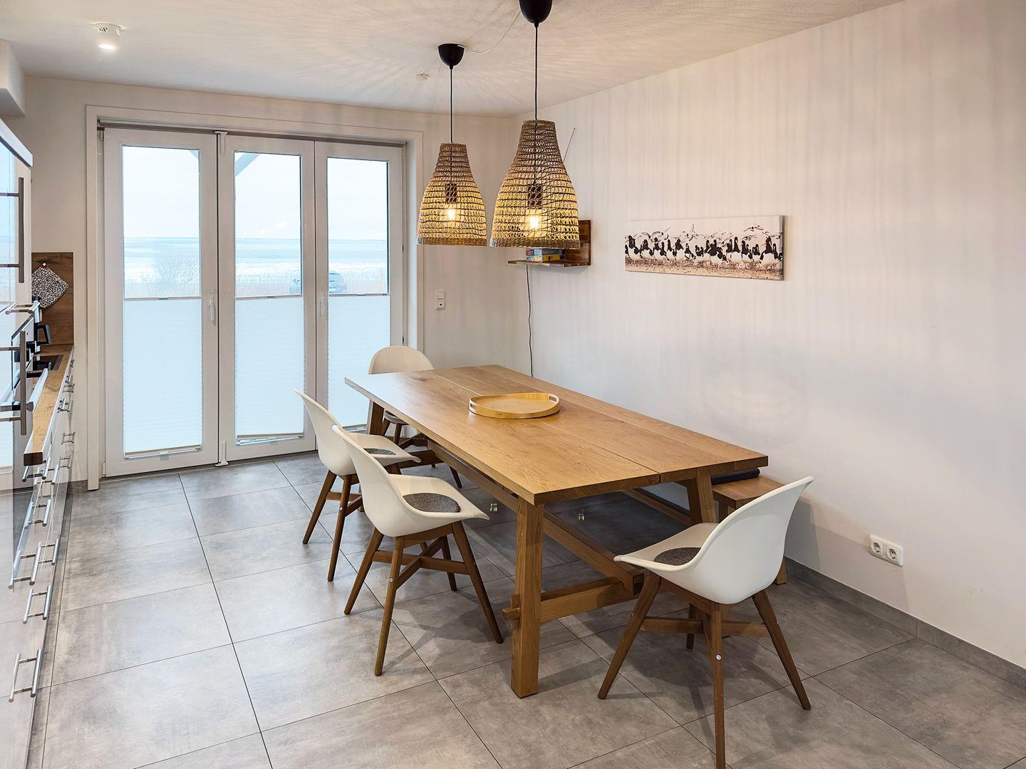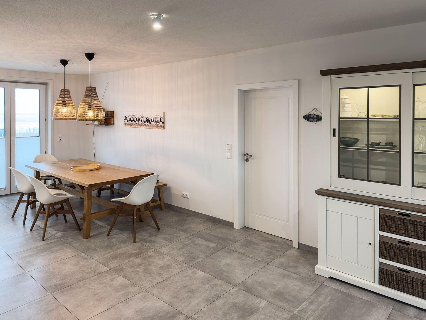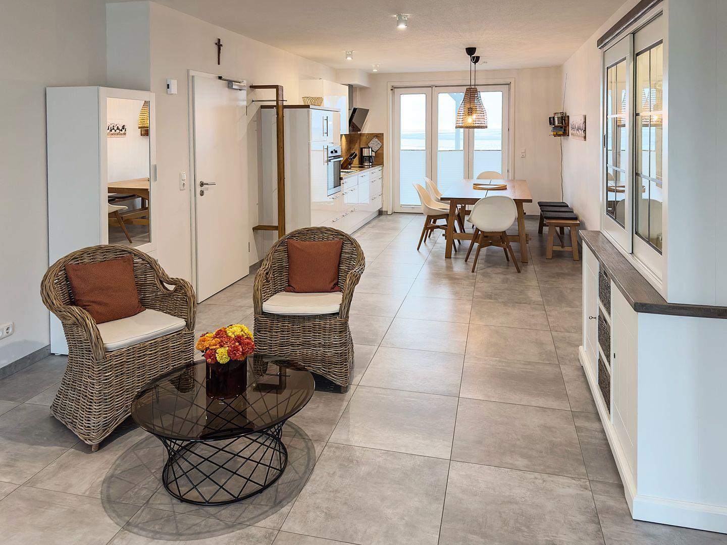 Die Ferienwohnung *Weiße Düne 4* im Erdgeschoss des Hauses *Weiße Düne* in Wittdün auf Amrum ist eine 3-Zimmer-Ferienwohnung (ca. 93 qm Grundfläche) mit Schlafmöglichkeiten für 2 bis 4 Personen. Die Ferienwohnung ist behindertenfreundlich, da das Haus über eine Rampe erreichbar und ein Aufzug zur Wohnung vorhanden ist.