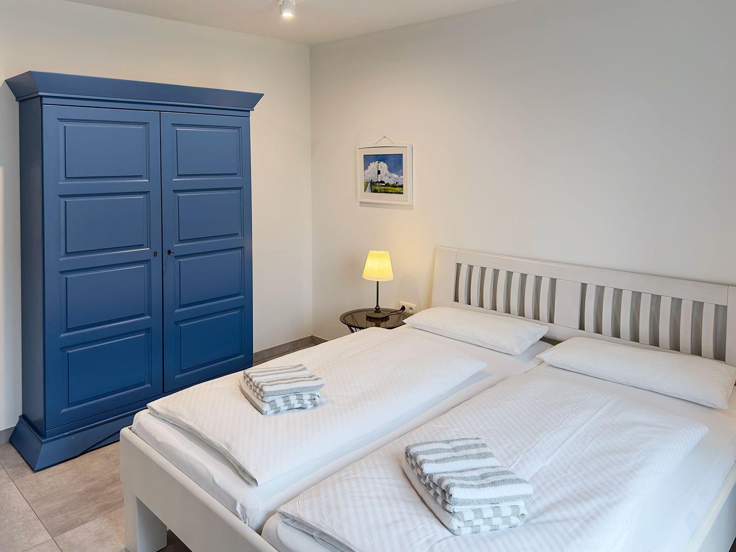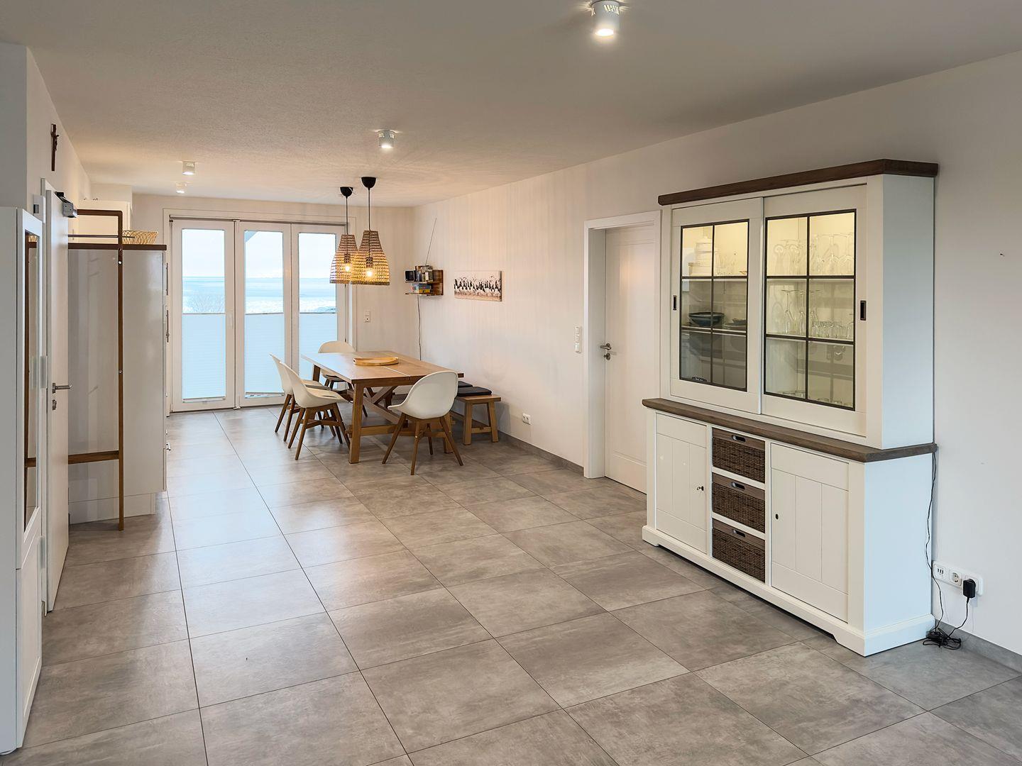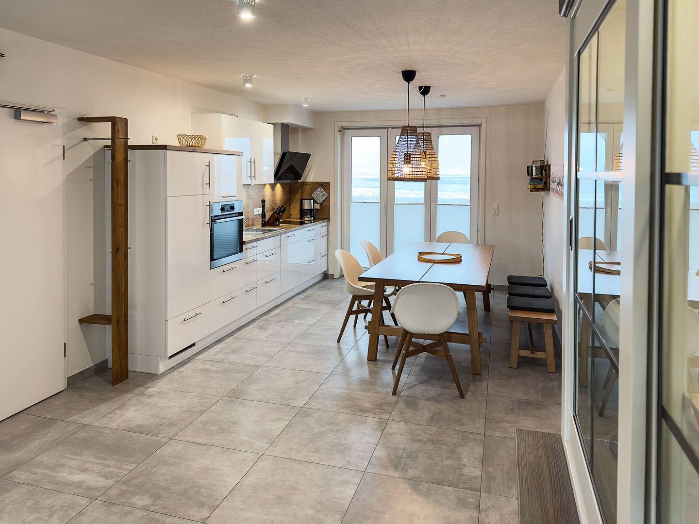 Die Wohnung verfügt über 1 Wohnraum mit WLAN, Sat-TV und offener Küche, 2 Schlafzimmer, 1 Badezimmer mit Dusche und WC, 1 Gäste-WC; 1 Süd-Balkon vom Wohnzimmer, 1 Nord-Balkon mit Meerblick vom Esszimmer, Balkonmöbel (April – Oktober). Im rechten Keller (1. Tür rechts) befinden sich eine Münz-Waschmaschine und ein Münz-Trockner zur Gemeinschaftsnutzung. Eigener PKW-Stellplatz in der Nähe des Hauses, Unterstellmöglichkeit für Fahrräder. Nur wenige Meter vom Meer entfernt.