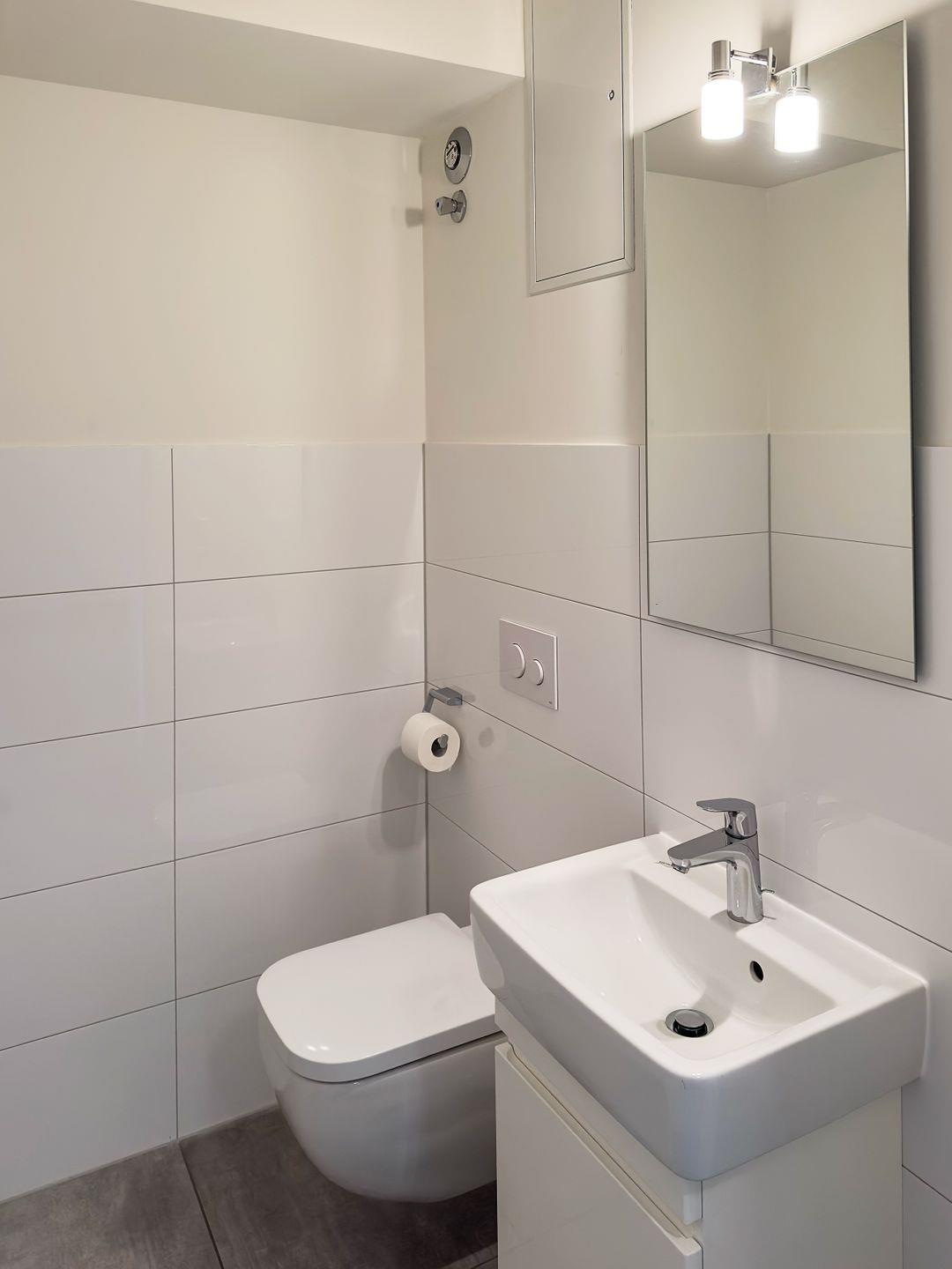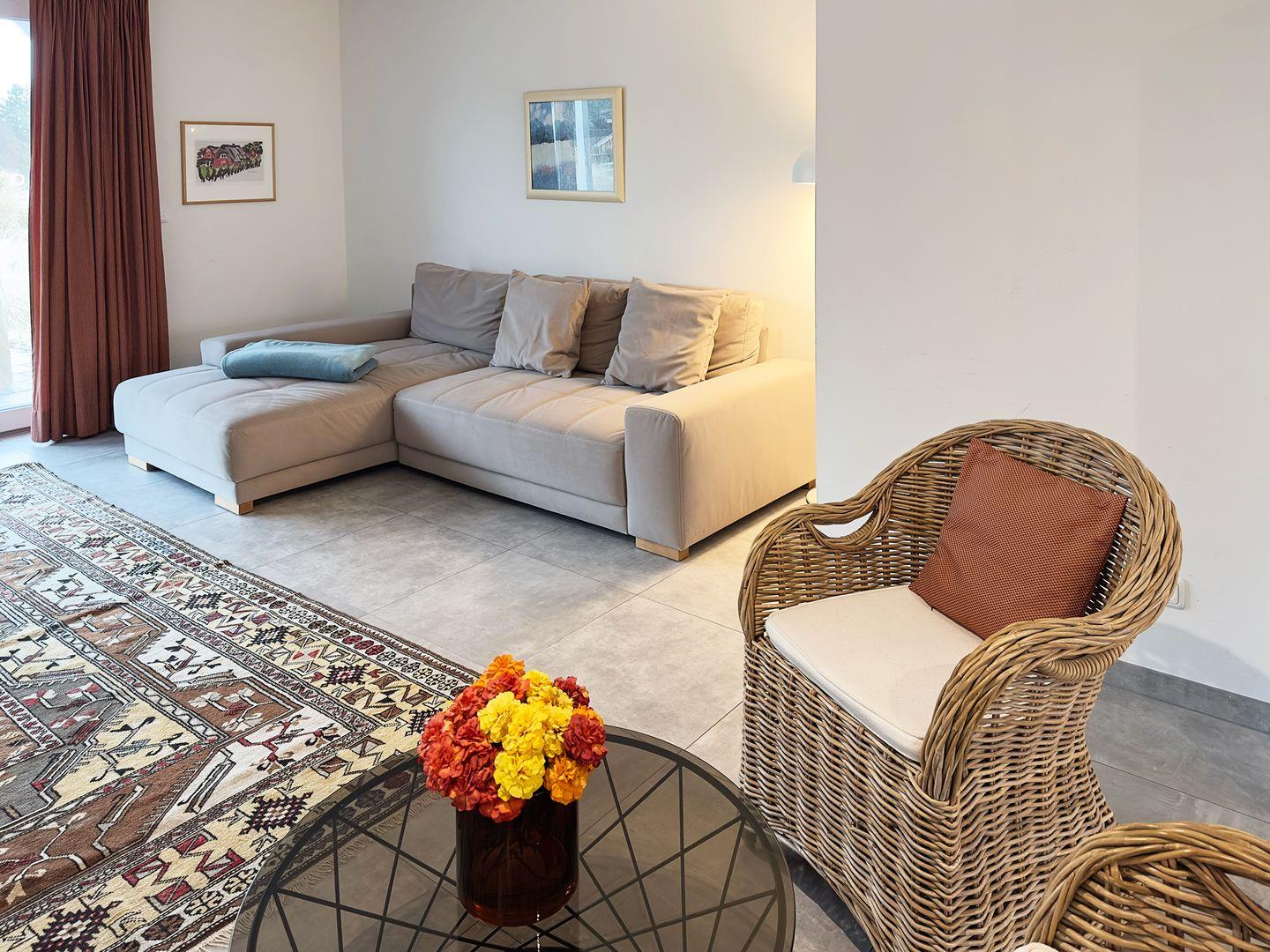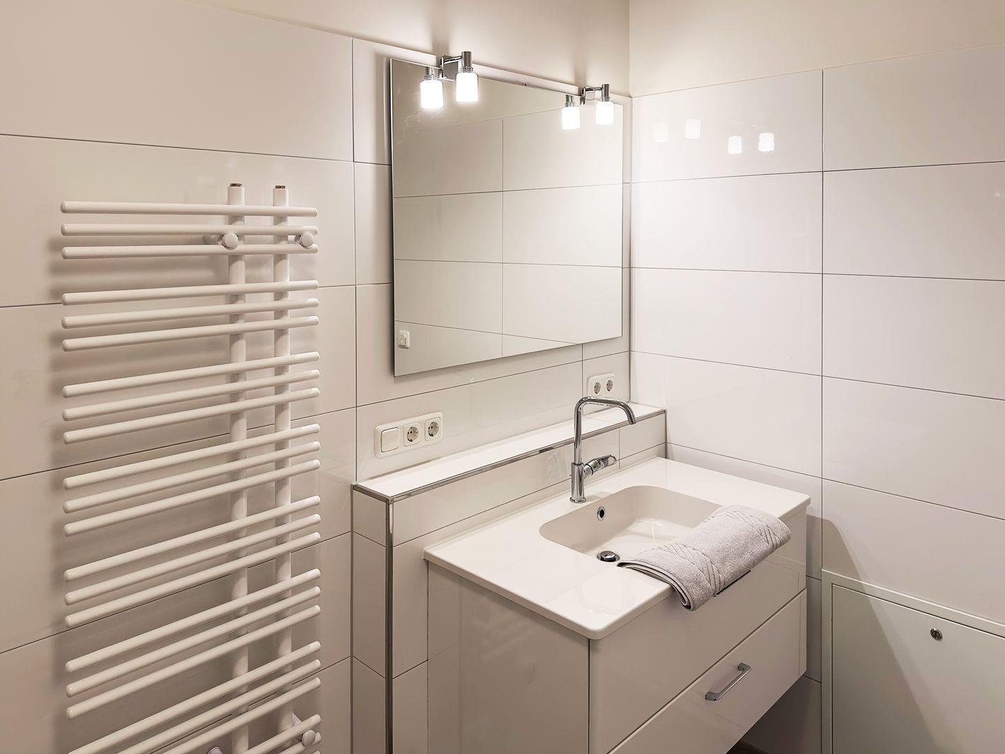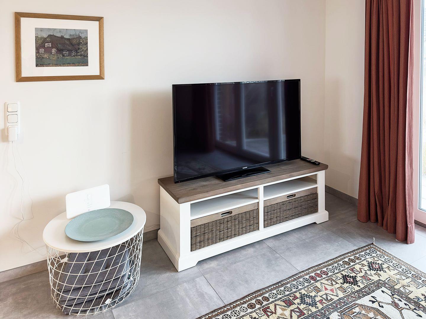 Die Wohnung verfügt über 1 Wohnraum mit WLAN, Sat-TV und offener Küche, 2 Schlafzimmer, 1 Badezimmer mit Dusche und WC, 1 Gäste-WC; 1 Süd-Balkon vom Wohnzimmer, 1 Nord-Balkon mit Meerblick vom Esszimmer, Balkonmöbel (April – Oktober). Im rechten Keller (1. Tür rechts) befinden sich eine Münz-Waschmaschine und ein Münz-Trockner zur Gemeinschaftsnutzung. Eigener PKW-Stellplatz in der Nähe des Hauses, Unterstellmöglichkeit für Fahrräder. Nur wenige Meter vom Meer entfernt.