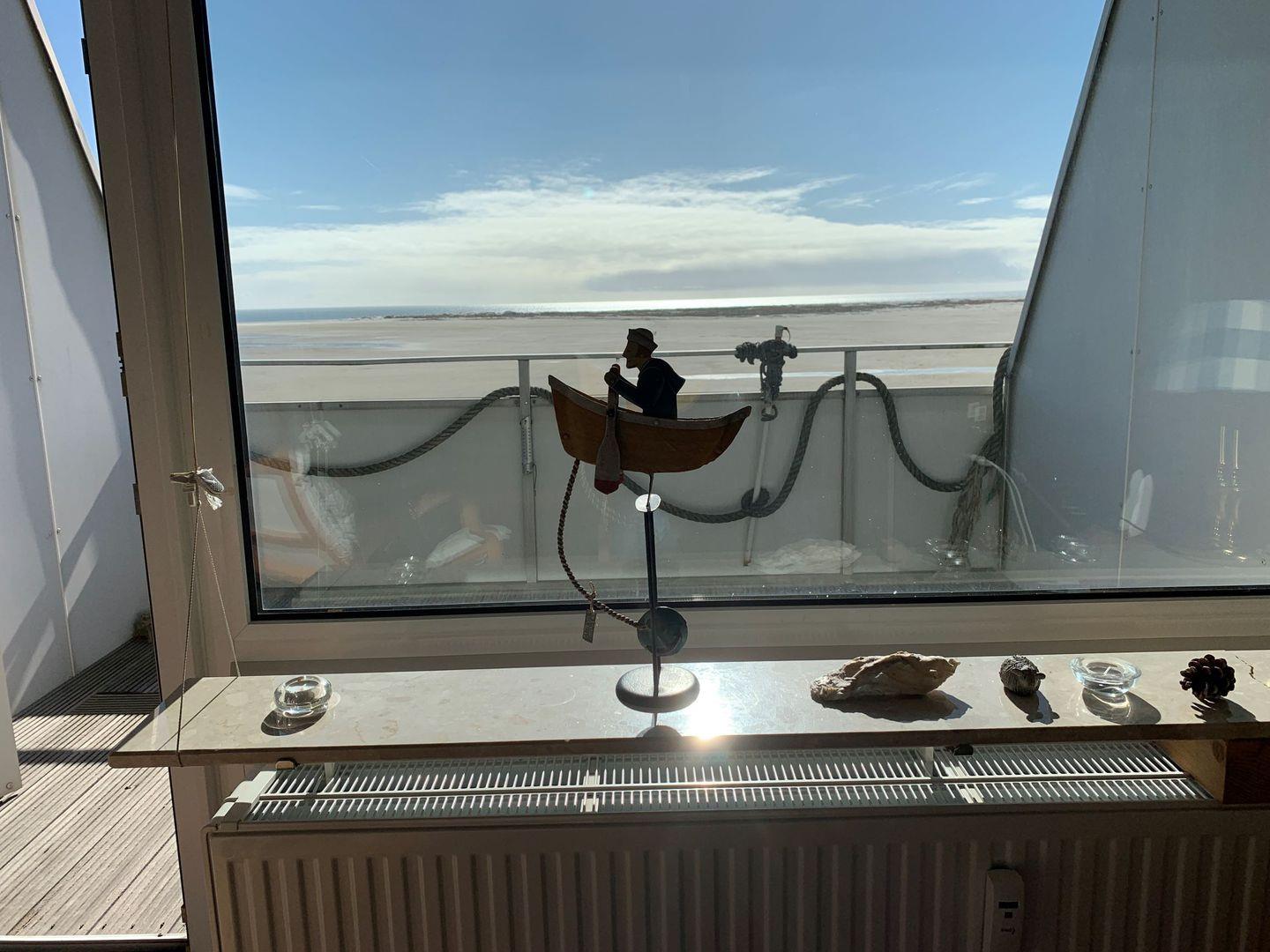 Vom Balkon aus haben sie einen traumhaften Blick über den Amrumer Kniepsand auf die Hallig Hooge und die offene Nordsee.