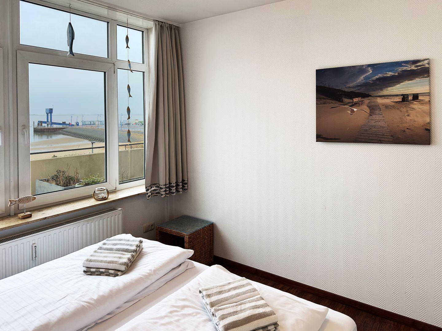 Die Ferienwohnung „Wattkieker" im Hochparterre des Hauses „Nordenlicht" in Wittdün auf Amrum ist eine 2-Zimmer-Ferienwohnung (ca. 45 qm Grundfläche) mit Schlafmöglichkeiten für 1 bis 2 Personen und direktem Blick auf die Nordsee in Richtung Seezeichenhafen.