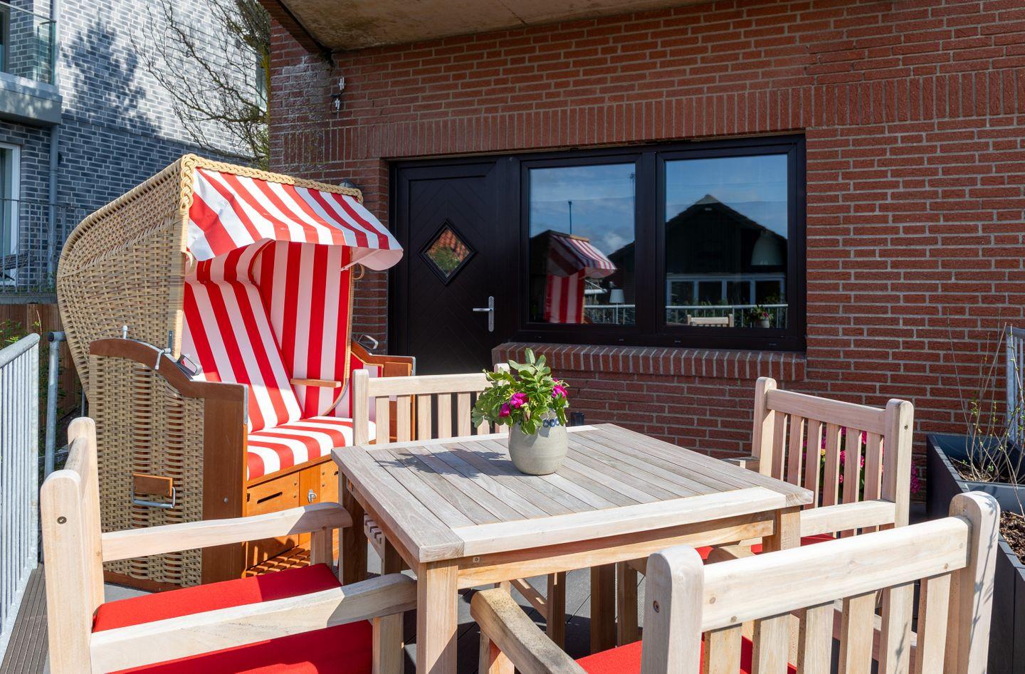Die Wohnung 1 liegt im Erdgeschoss im Ferienhaus Jungnamen Sand und zeigt Richtung Nordosten. Es finden 4 Personen auf 100 qm geschmackvoll eingerichteter Wohnfläche genügend Platz. Vor der Wohnung befindet sich ein Balkon mit Meerblick.