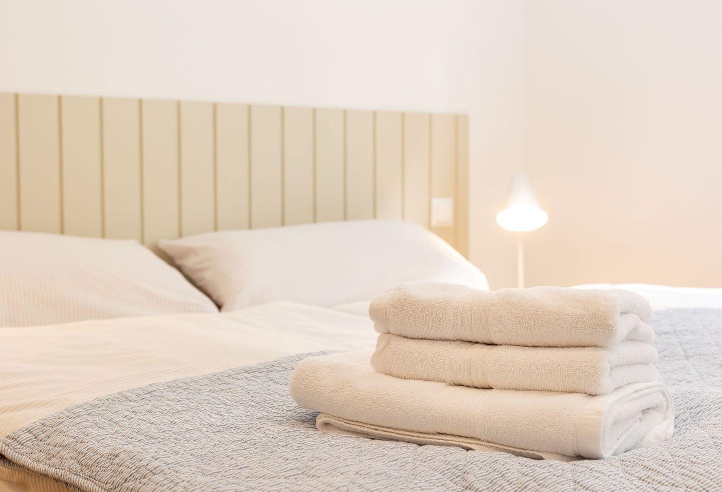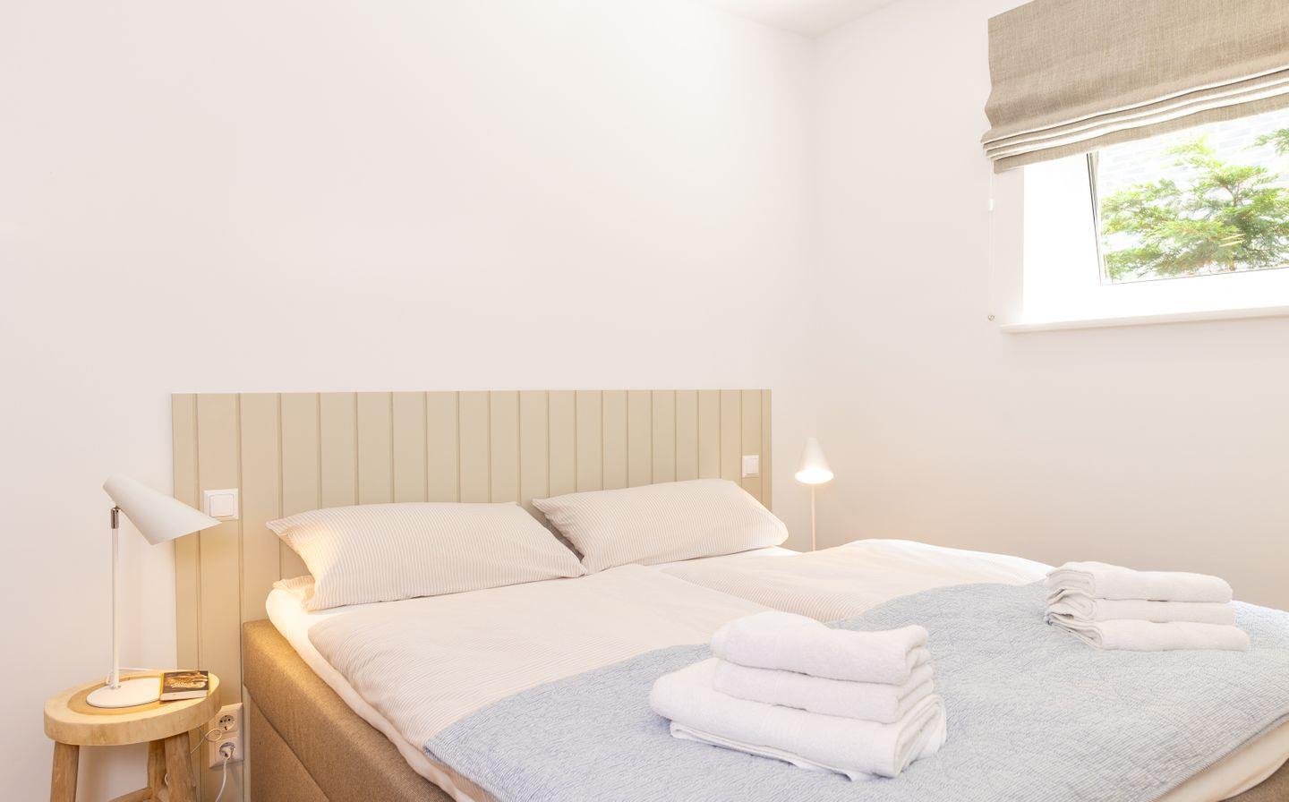 Die Wohnung verfügt über ein Wohnzimmer mit zwei separaten Schlafzimmern mit Boxspringbetten, eine voll ausgestattete Küche mit Geschirrspüler und Backofen, ein Duschbad, Satelliten TV und WLAN. Vor der Wohnung befindet sich ein Balkon mit Meerblick.