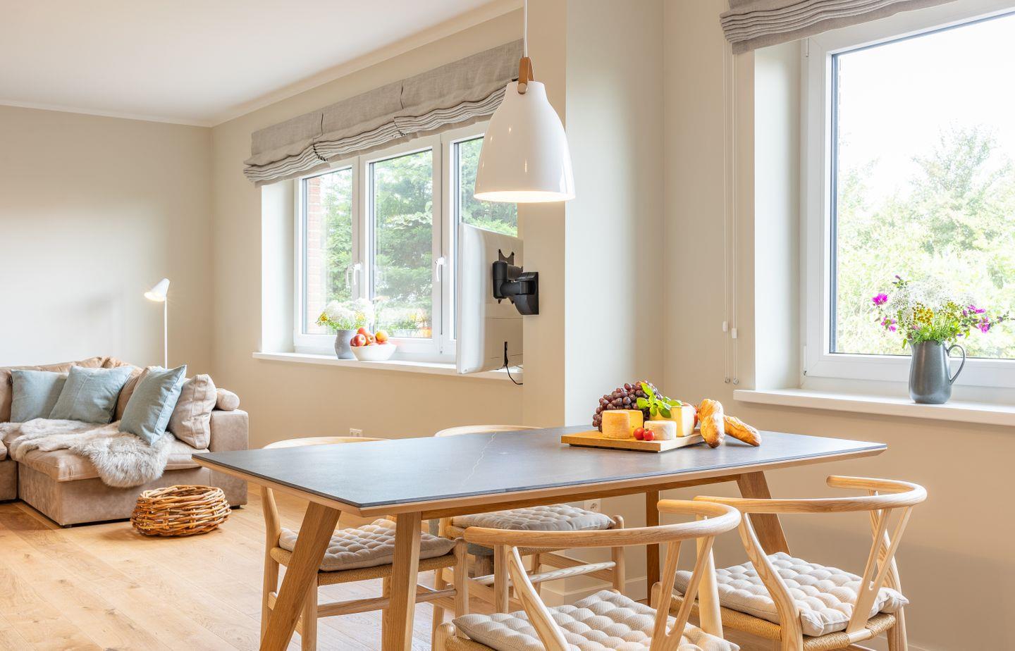 Die Wohnung 1 liegt im Erdgeschoss im Ferienhaus Jungnamen Sand und zeigt Richtung Nordosten. Es finden 4 Personen auf 100 qm geschmackvoll eingerichteter Wohnfläche genügend Platz.