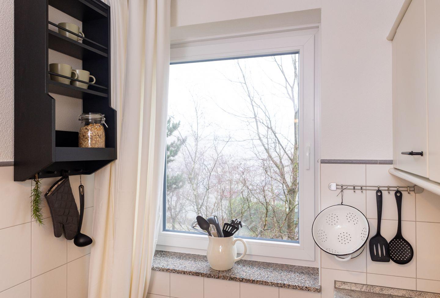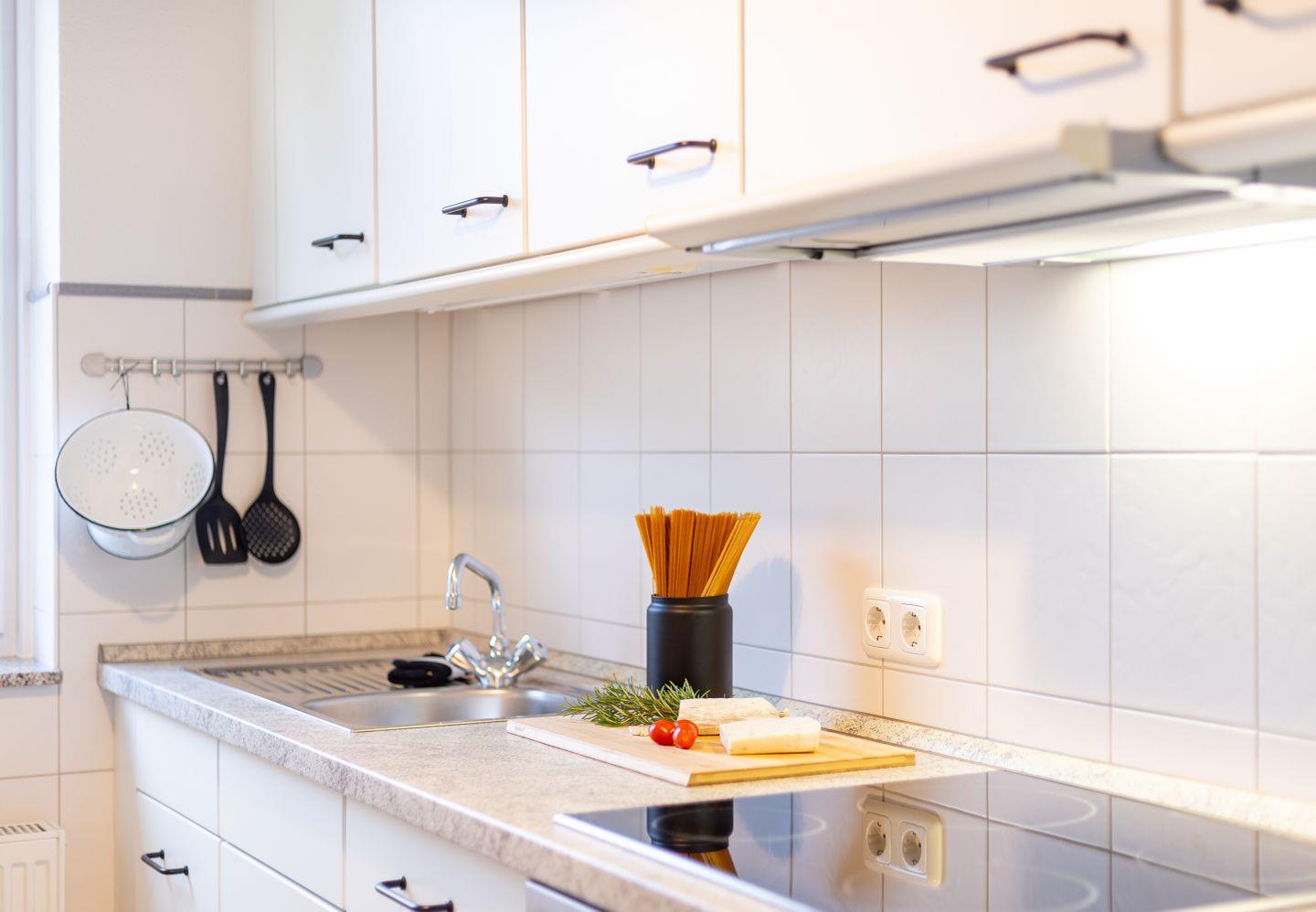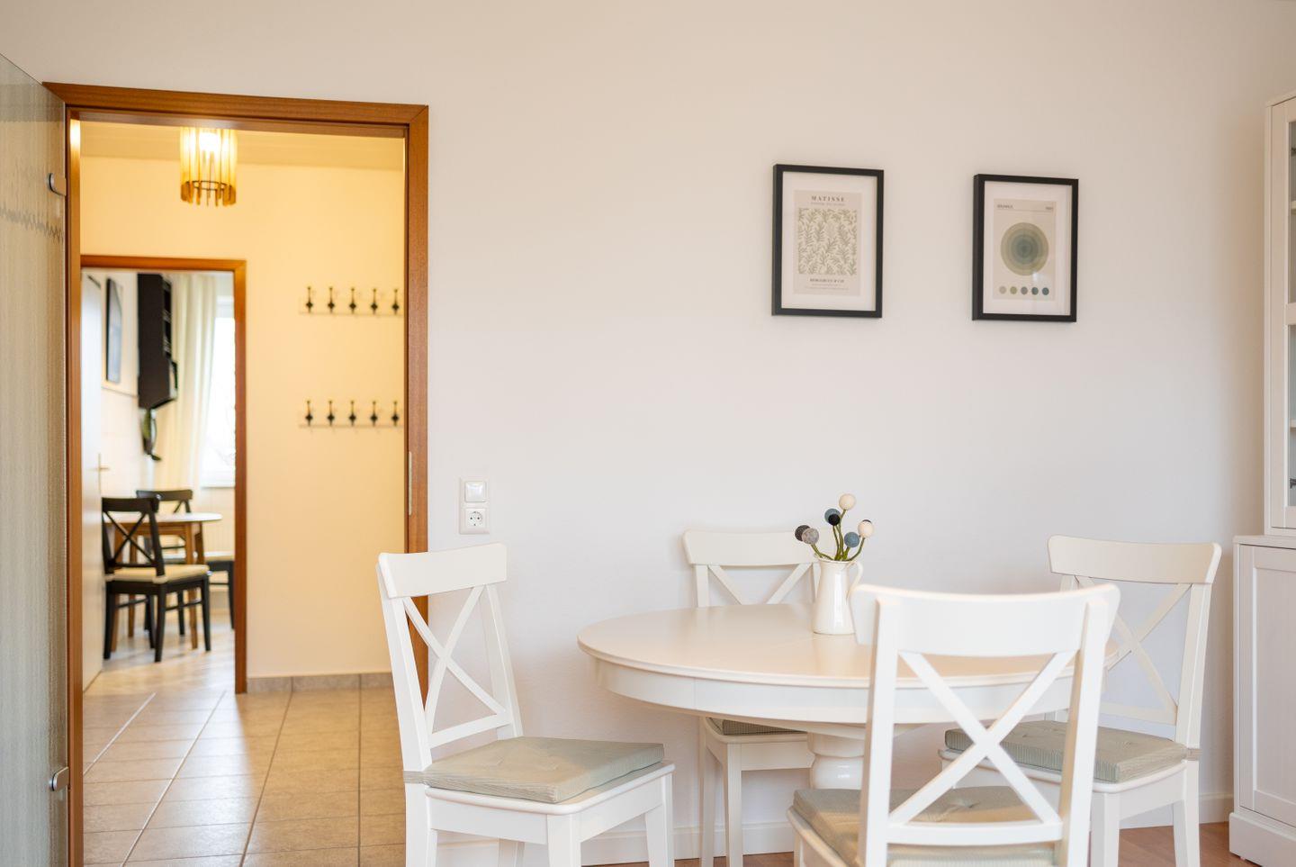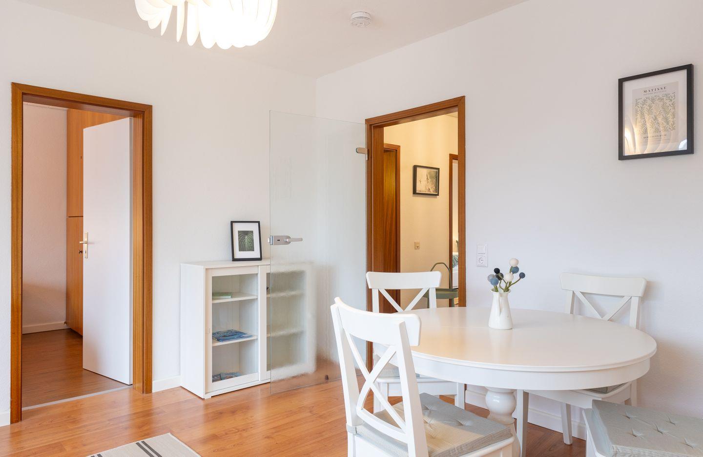 Die Ferienwohnung erstreckt sich über eine Etage und besteht aus zwei gemütlichen Schlafzimmern, die mit einem hochwertigen Laminatboden ausgestattet sind. Hier finden Sie alles, was Sie für einen erholsamen Schlaf benötigen. Der offene Essbereich ist ideal für gemeinsame Mahlzeiten und gesellige Abende. Die moderne, geschlossene Küche lädt dazu ein, leckere Gerichte zuzubereiten. Sie ist komplett mit einem Ceranherd, Backofen, Kühlschrank, Gefrierfach, Kaffeemaschine und sämtlichen Küchenutensilien ausgestattet. So steht einem kulinarischen Genuss nichts im Wege.