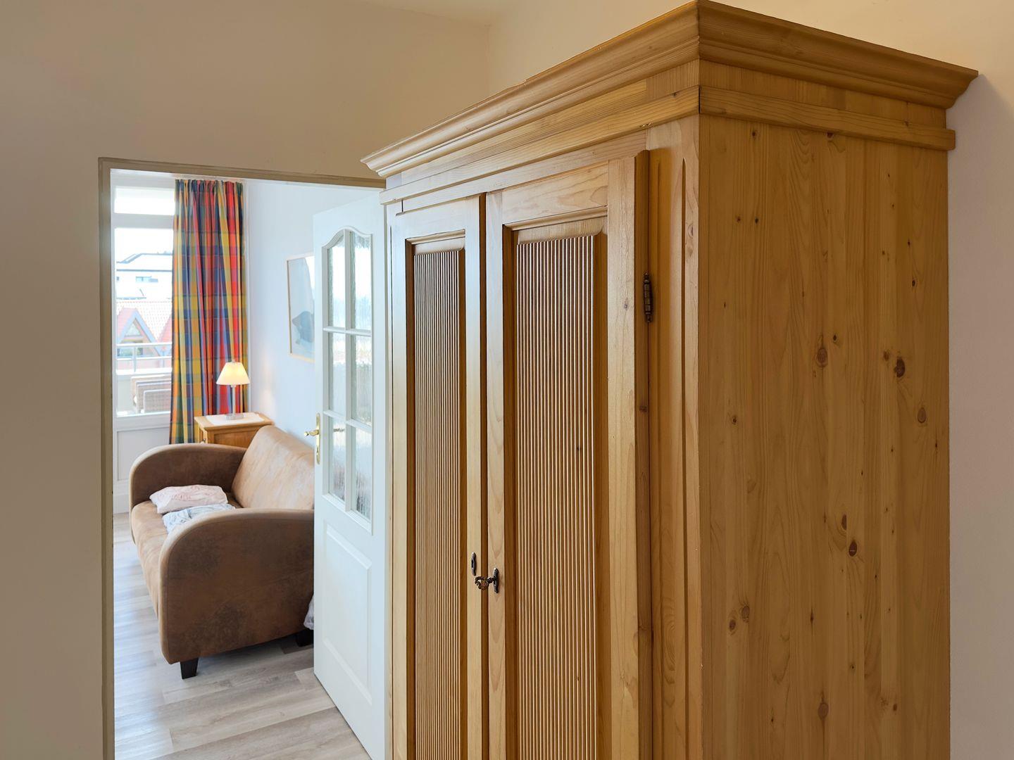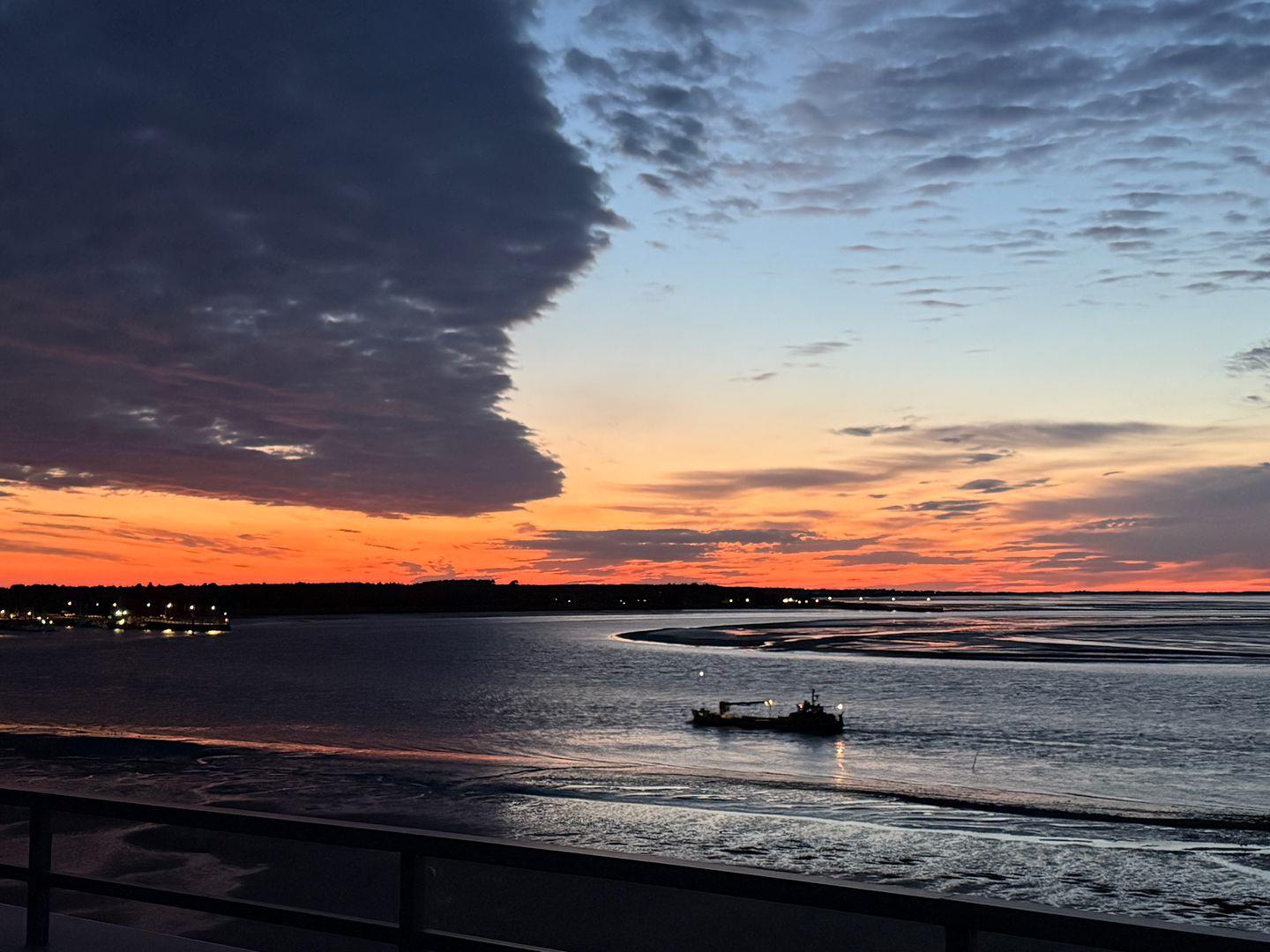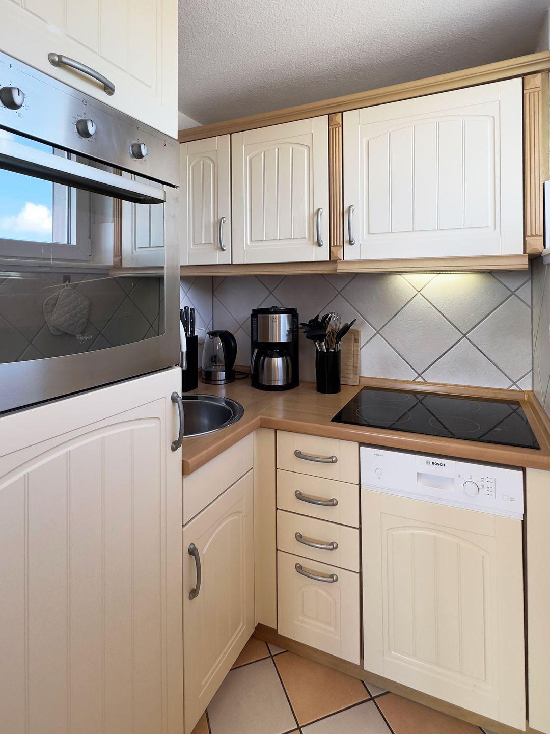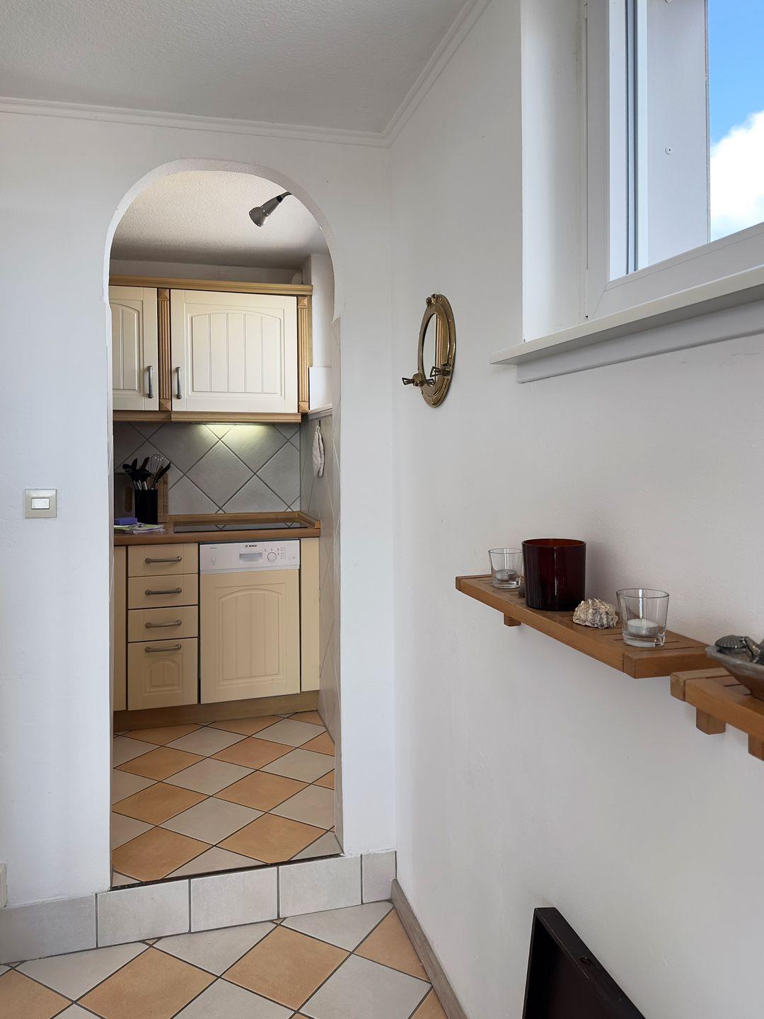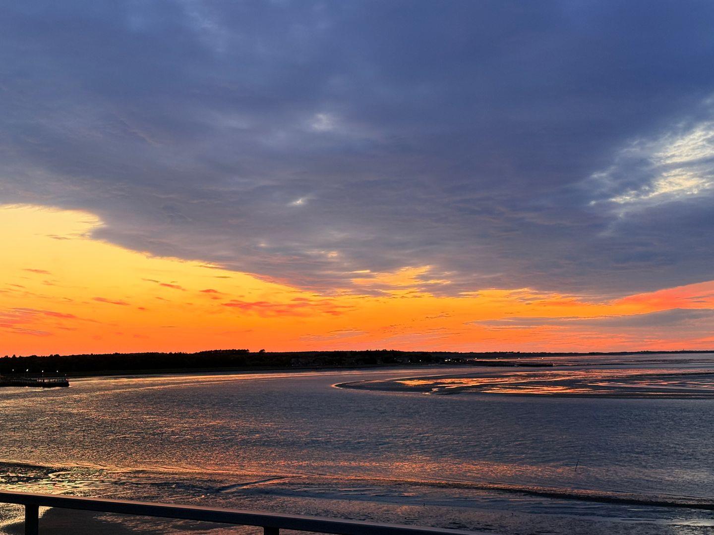Die Wohnung verfügt über 1 Wohnraum mit Sat-TV und offener Küche, 1 Badezimmer mit Dusche und WC, Blick zum Wattenmeer zum Fähranleger und zum Yachthafen sowie nach Föhr, nach Sylt und zu den Halligen. Die Wohnung verfügt über einen 42qm großen Eckbalkon Richtung Osten und Norden. Sonnenaufgänge und Sonnenuntergänge sind inklusive.