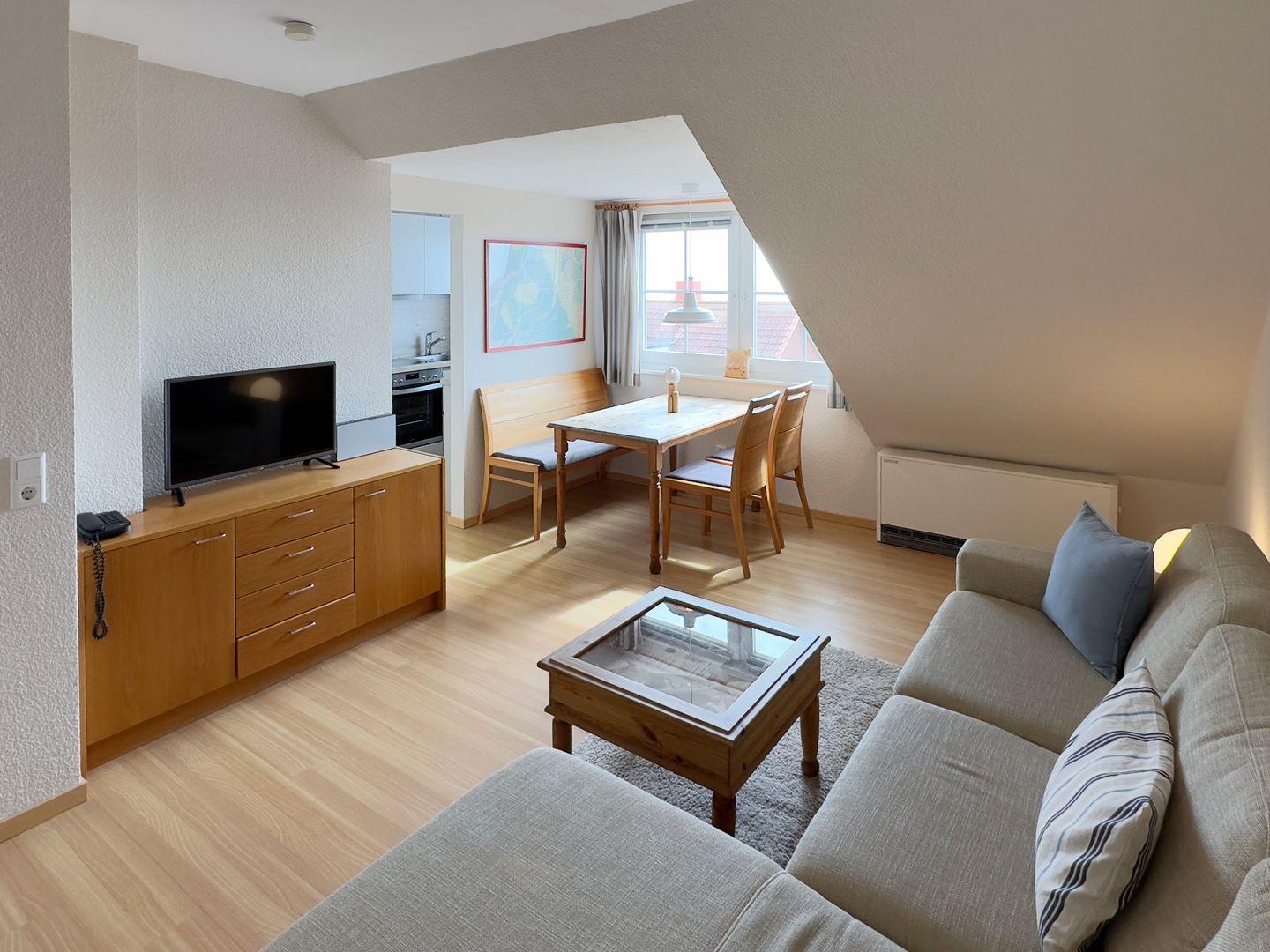 Die Ferienwohnung *Gaubenkieker* im 2. Obergeschoss des Hauses *Südspitze 17* in Wittdün auf Amrum ist eine 2-Zimmer-Ferienwohnung (ca. 42 qm Grundfläche) mit Schlafmöglichkeiten für 1 bis 2 Personen.