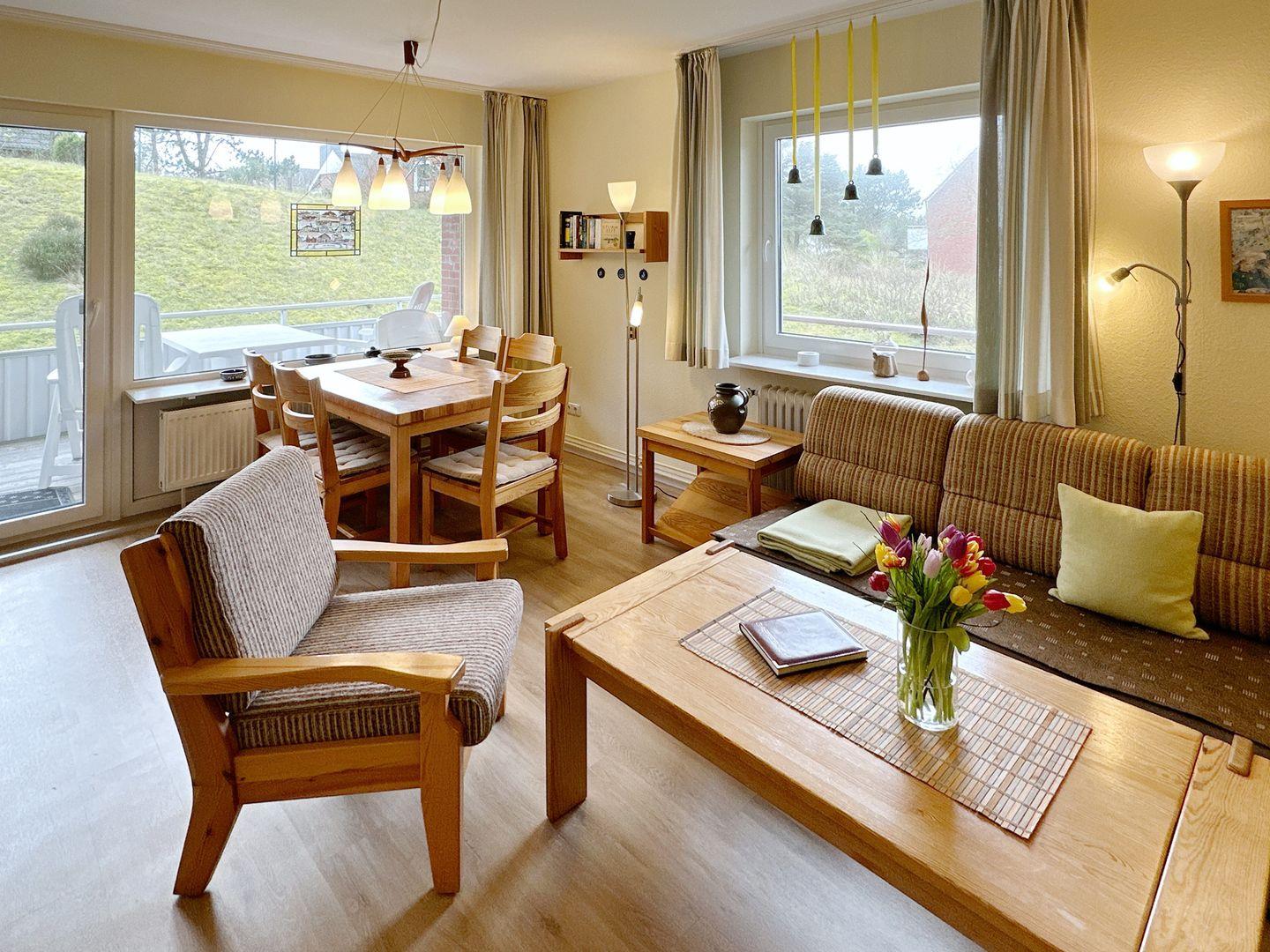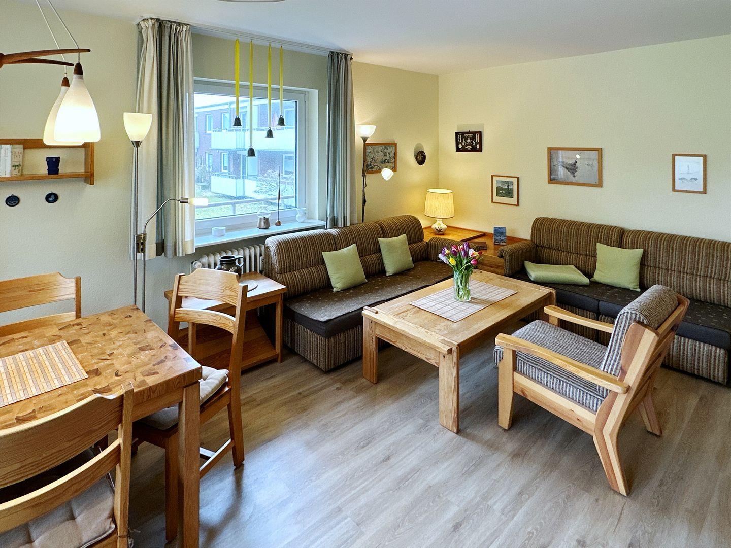 Die Ferienwohnung *Kreft* in der Hochparterre des Hauses *Seeadler* in Wittdün auf Amrum ist eine 2-Zimmer-Ferienwohnung (ca. 65 qm Grundfläche) mit Schlafmöglichkeiten für 2 bis 4 Personen.
