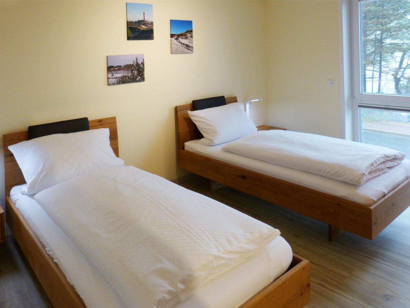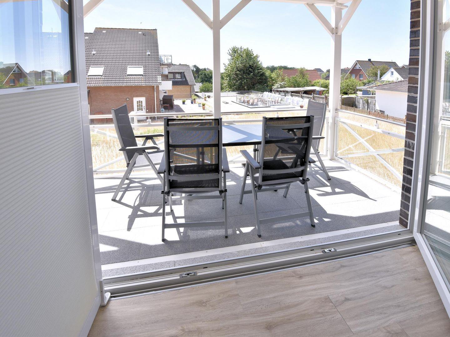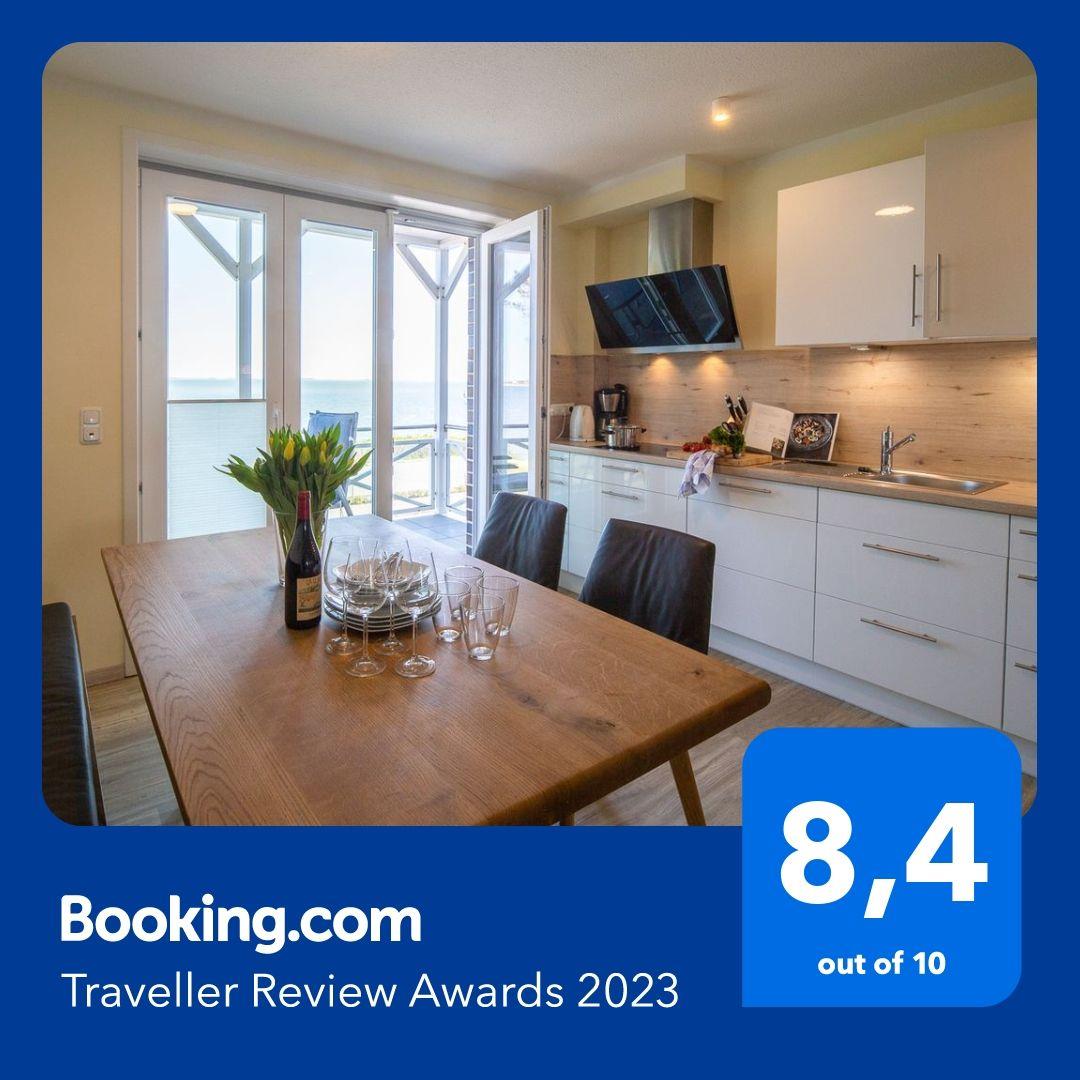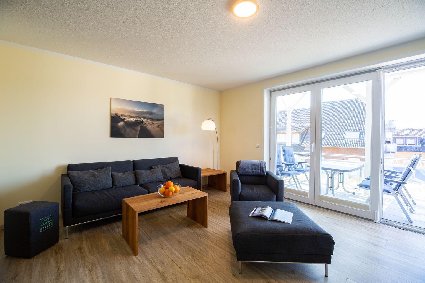 Die Wohnung verfügt über 1 Wohnraum mit WLAN, Sat-TV und offener Küche, 2 Schlafzimmer, 1 Badezimmer mit Dusche und WC, 1 Gäste-WC; 1 Süd-Balkon vom Wohnzimmer, 1 Nord-Balkon mit Meerblick vom Esszimmer, Balkonmöbel (April – Oktober). Im Keller befinden sich eine Münz-Waschmaschine und ein Münz-Trockner zur Gemeinschaftsnutzung. Eigener PKW-Stellplatz in der Nähe des Hauses, Unterstellmöglichkeit für Fahrräder. Nur wenige Meter vom Meer entfernt.