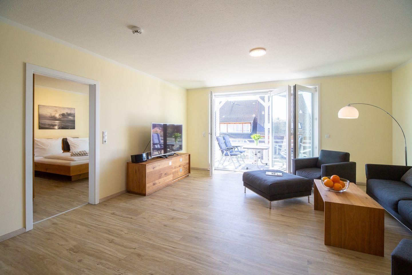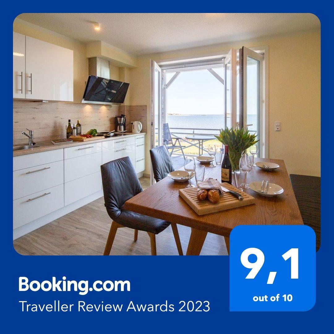 Die Wohnung verfügt über 1 Wohnraum mit WLAN, Sat-TV und offener Küche, 2 Schlafzimmer, 1 Badezimmer mit Dusche und WC, 1 Gäste-WC; 1 Süd-Balkon vom Wohnzimmer, 1 Nord-Balkon mit Meerblick vom Esszimmer, Balkonmöbel (April – Oktober). Im Keller befinden sich eine Münz-Waschmaschine und ein Münz-Trockner zur Gemeinschaftsnutzung. Eigener PKW-Stellplatz in der Nähe des Hauses, Unterstellmöglichkeit für Fahrräder. Nur wenige Meter vom Meer entfernt.