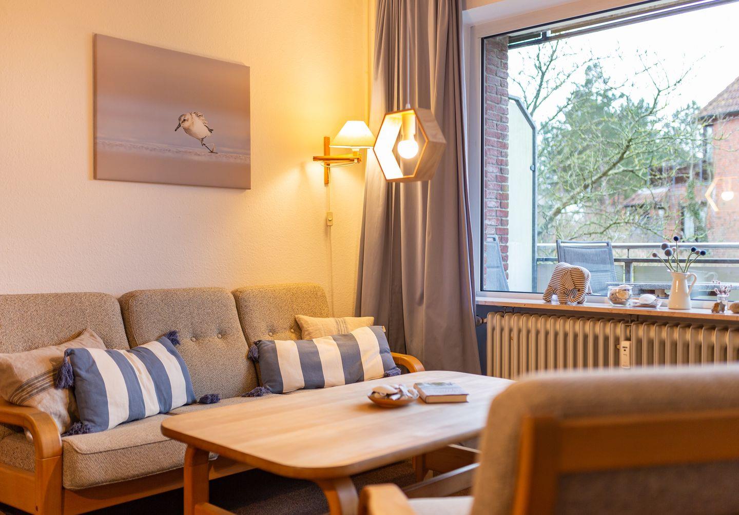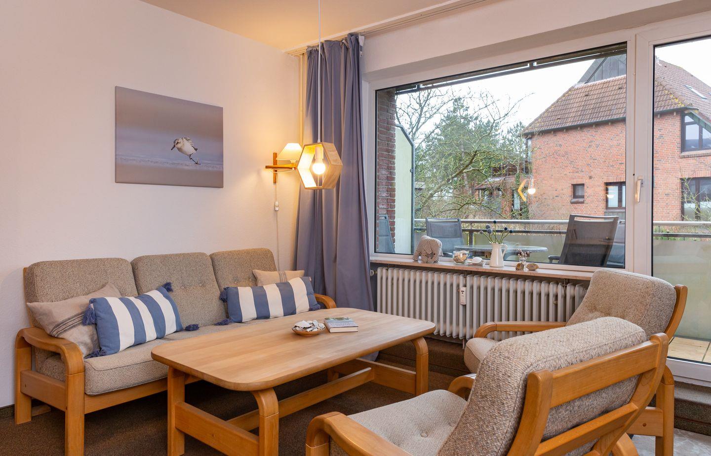 Die Ferienwohnung "Lürßen" im Haus am Seezeichen befindet sich in ruhiger Lage in der Mittelstraße in Wittdün. Vom Balkon haben Sie einen schönen Blick in den Kurpark. Die Wohnung bietet Platz für 4 Personen. Ihr Hund darf in dieser Wohnung gerne mitreisen.