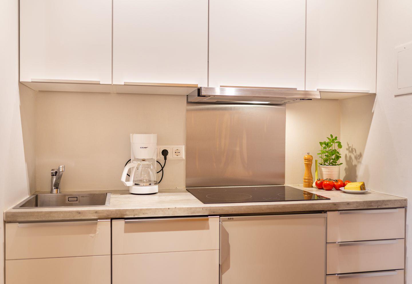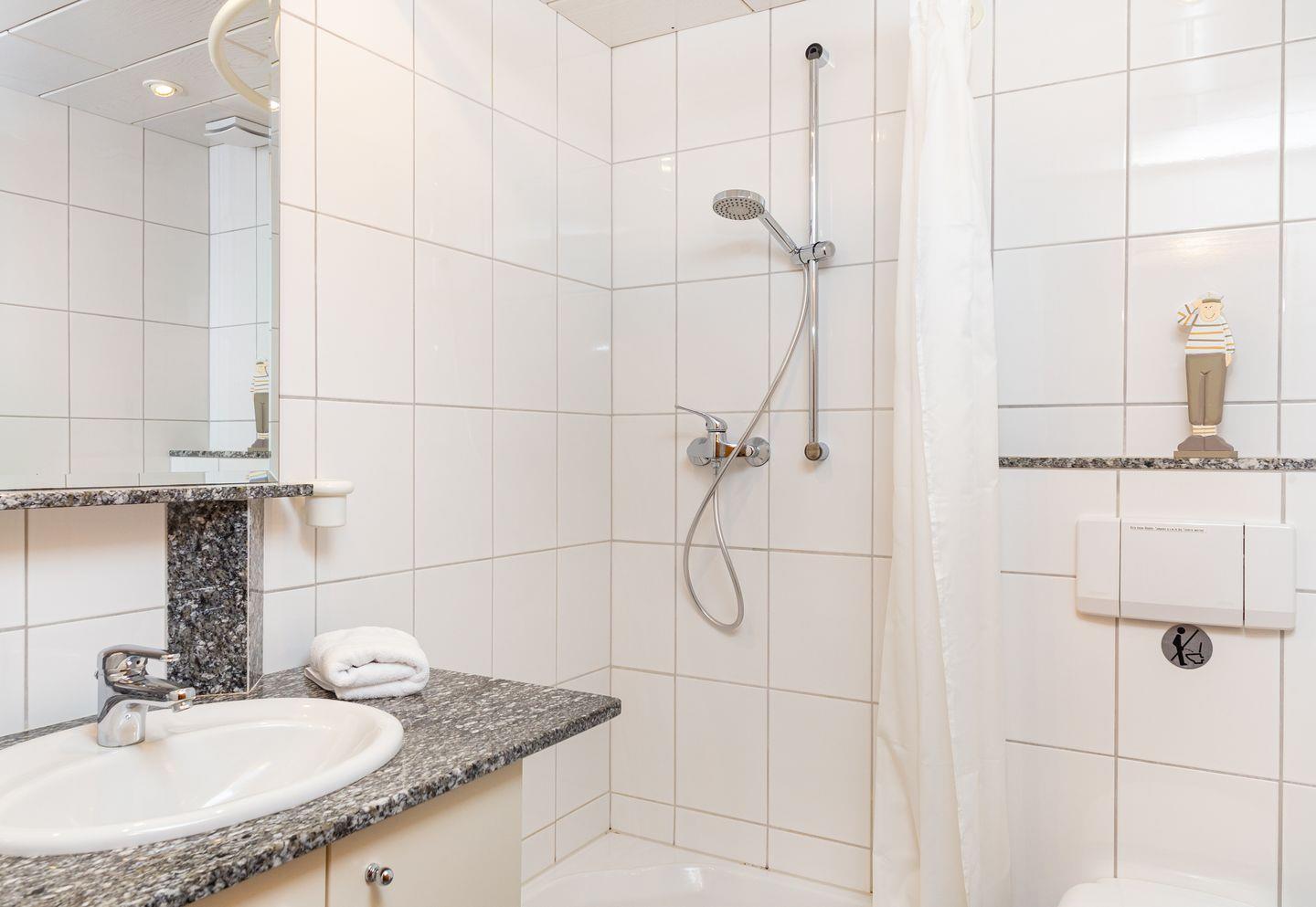 Die Wohnung verfügt über ein Wohnzimmer mit separatem Schlafzimmer mit Boxspringbett, eine voll ausgestattete Küche mit Geschirrspüler, ein Duschbad, einen Balkon mit Meerblick, Satelliten TV und WLAN.