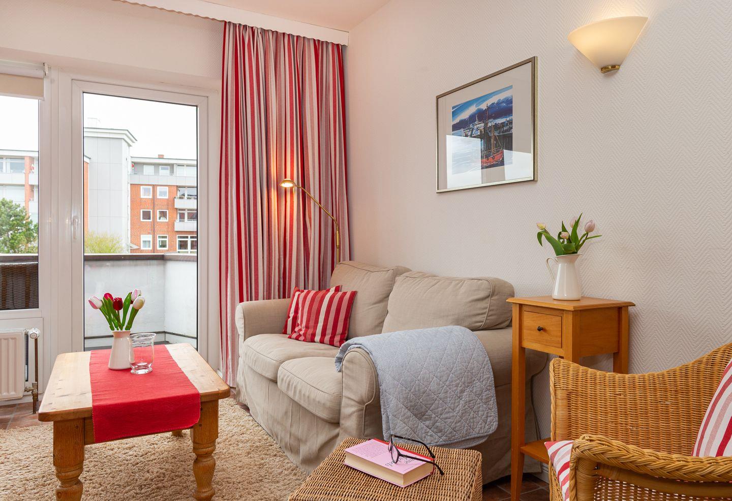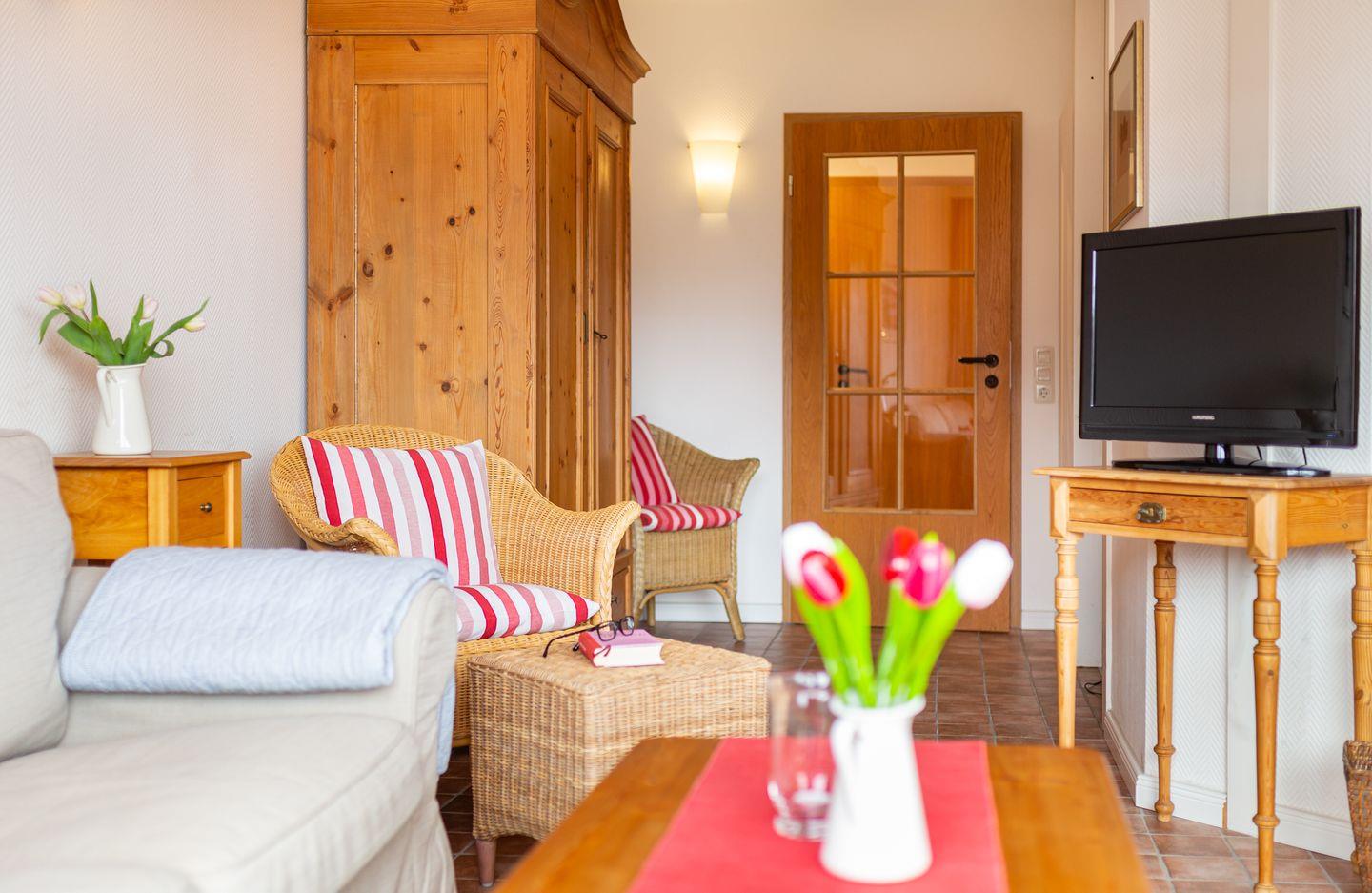 Die Wohnung 3 liegt in der ersten Etage im Ferienhaus Jungnamen Sand und zeigt Richtung Westen. Es finden 2 Personen auf 43 qm geschmackvoll eingerichteter Wohnfläche genügend Platz. Die Wohnung hat einen wunderschönen Meerblick.
