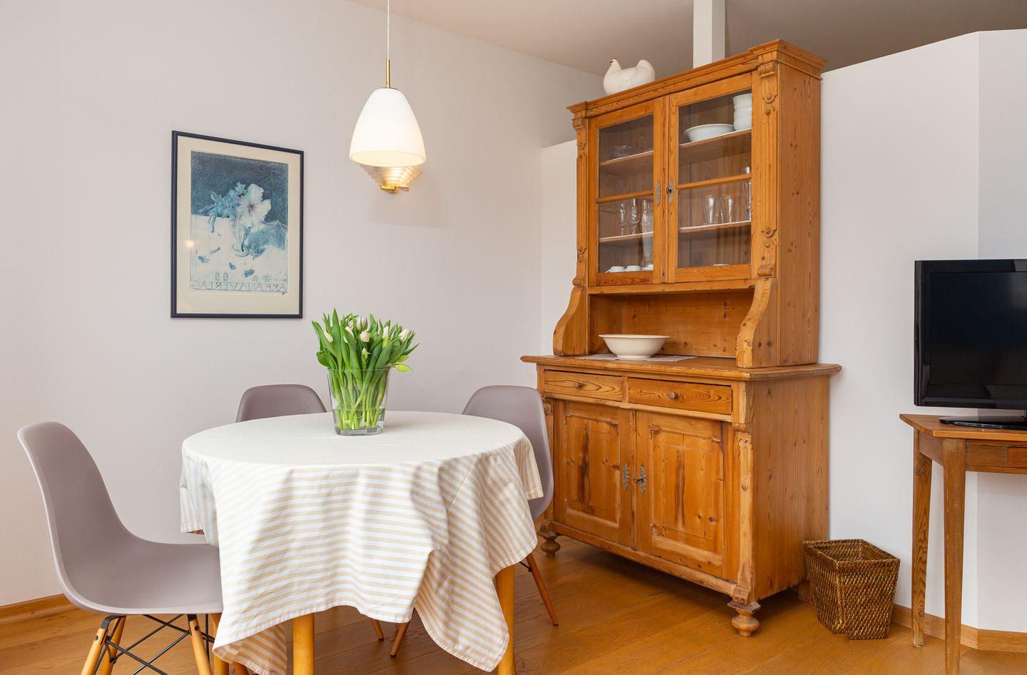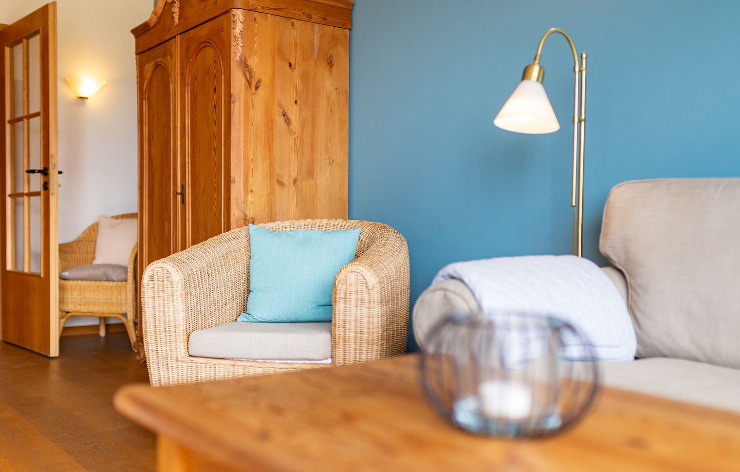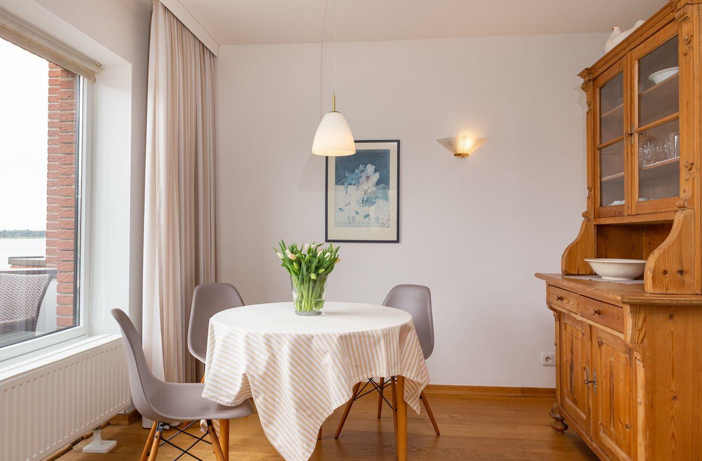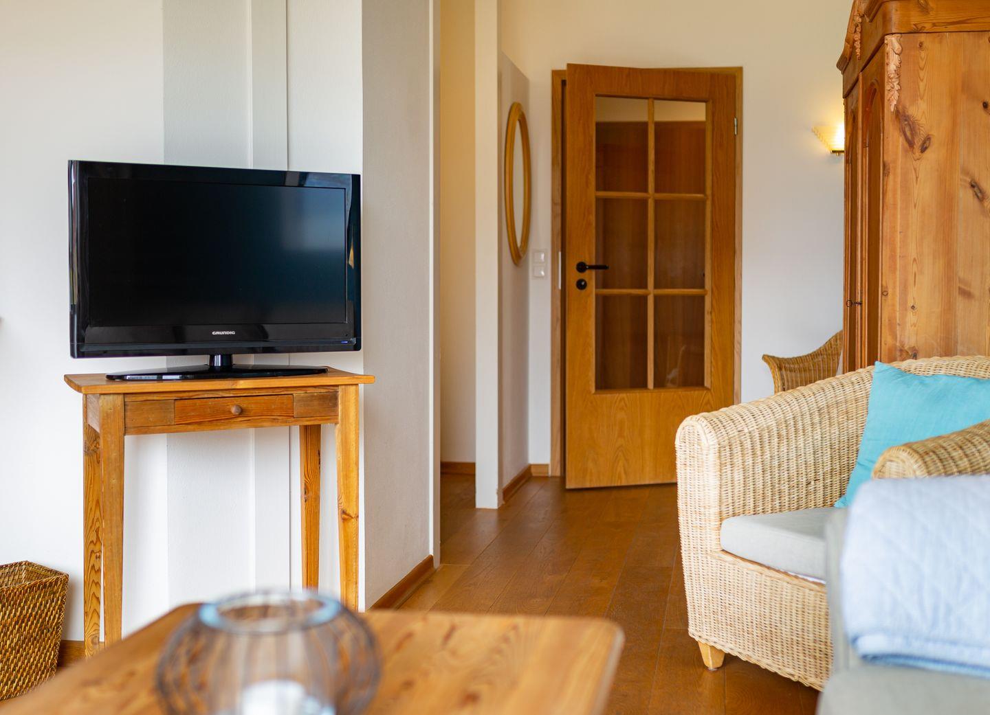 Die Wohnung 4 liegt in der ersten Etage im Ferienhaus Jungnamen Sand und zeigt Richtung Westen. Es finden 2 Personen auf 43 qm geschmackvoll eingerichteter Wohnfläche genügend Platz. Die Wohnung hat einen wunderschönen Meerblick.