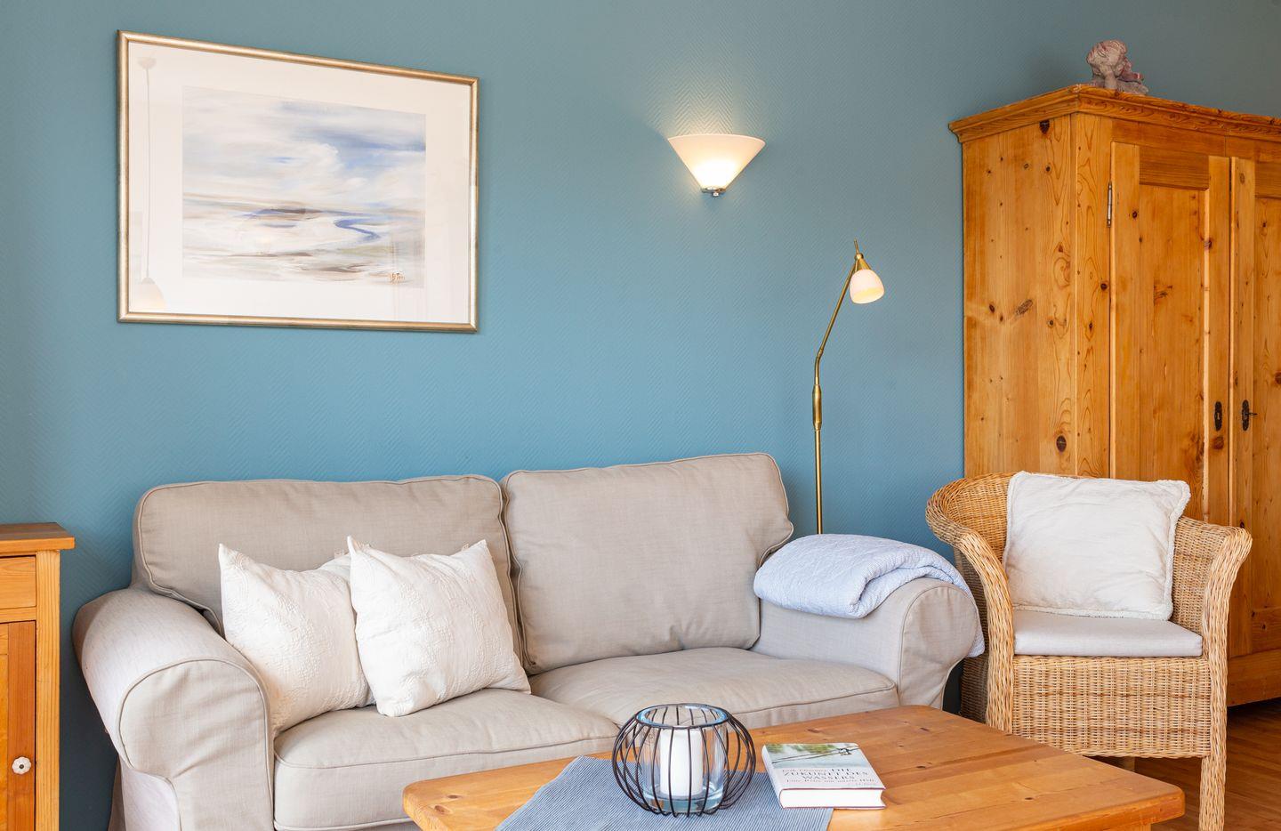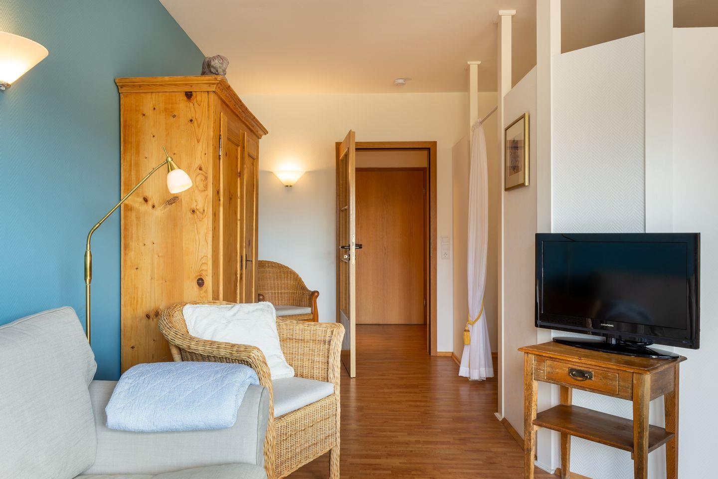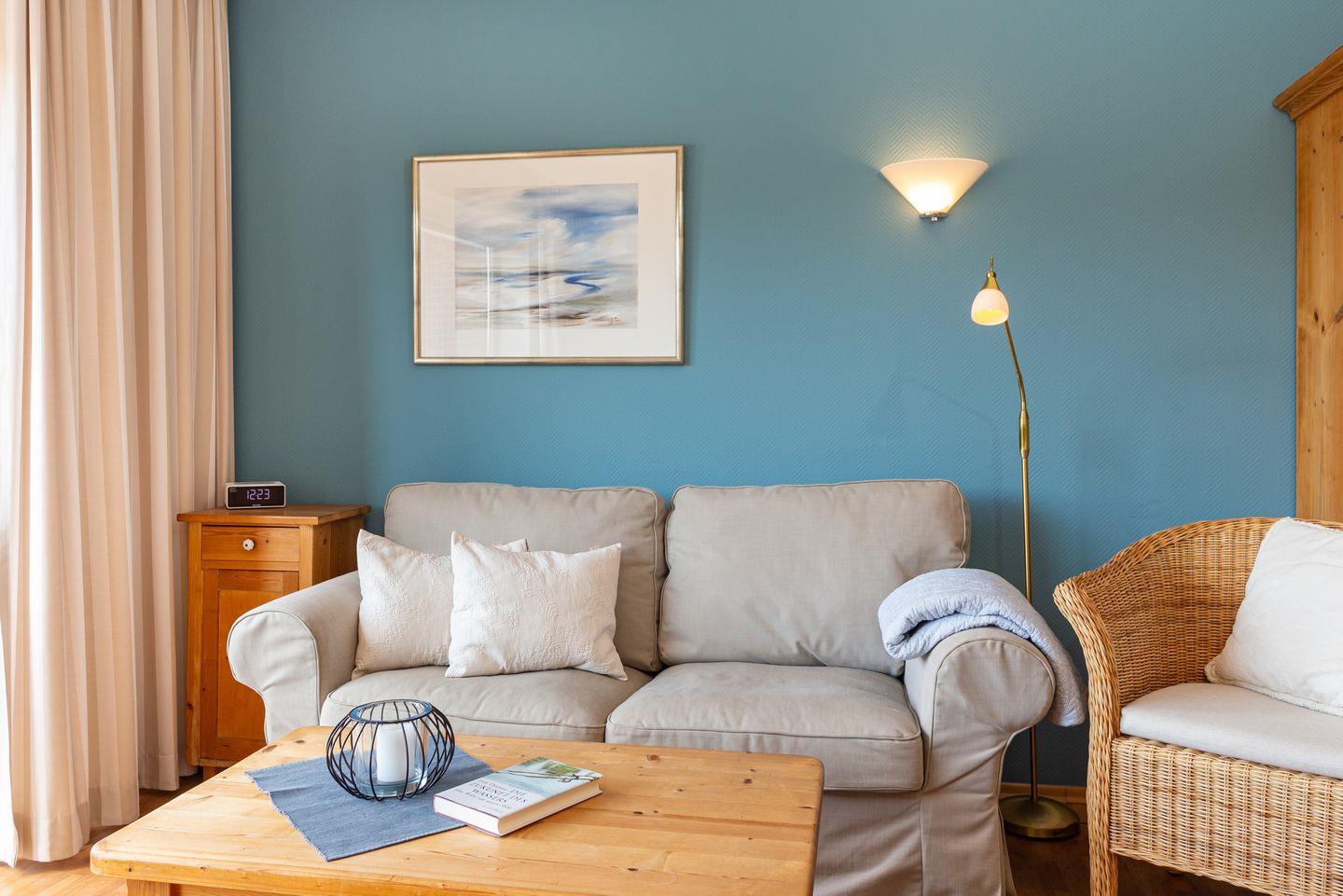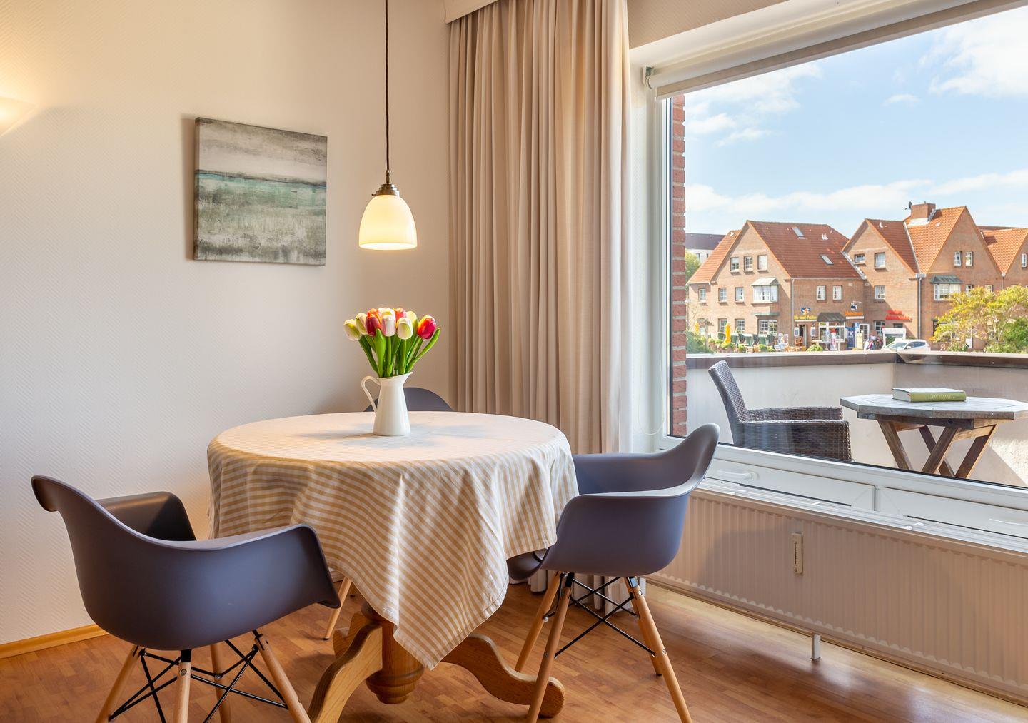 Die Wohnung 5 liegt in der ersten Etage im Ferienhaus Jungnamen Sand und zeigt Richtung Westen. Es finden 2 Personen auf 43 qm geschmackvoll eingerichteter Wohnfläche genügend Platz. Die Wohnung hat einen wunderschönen Meerblick.