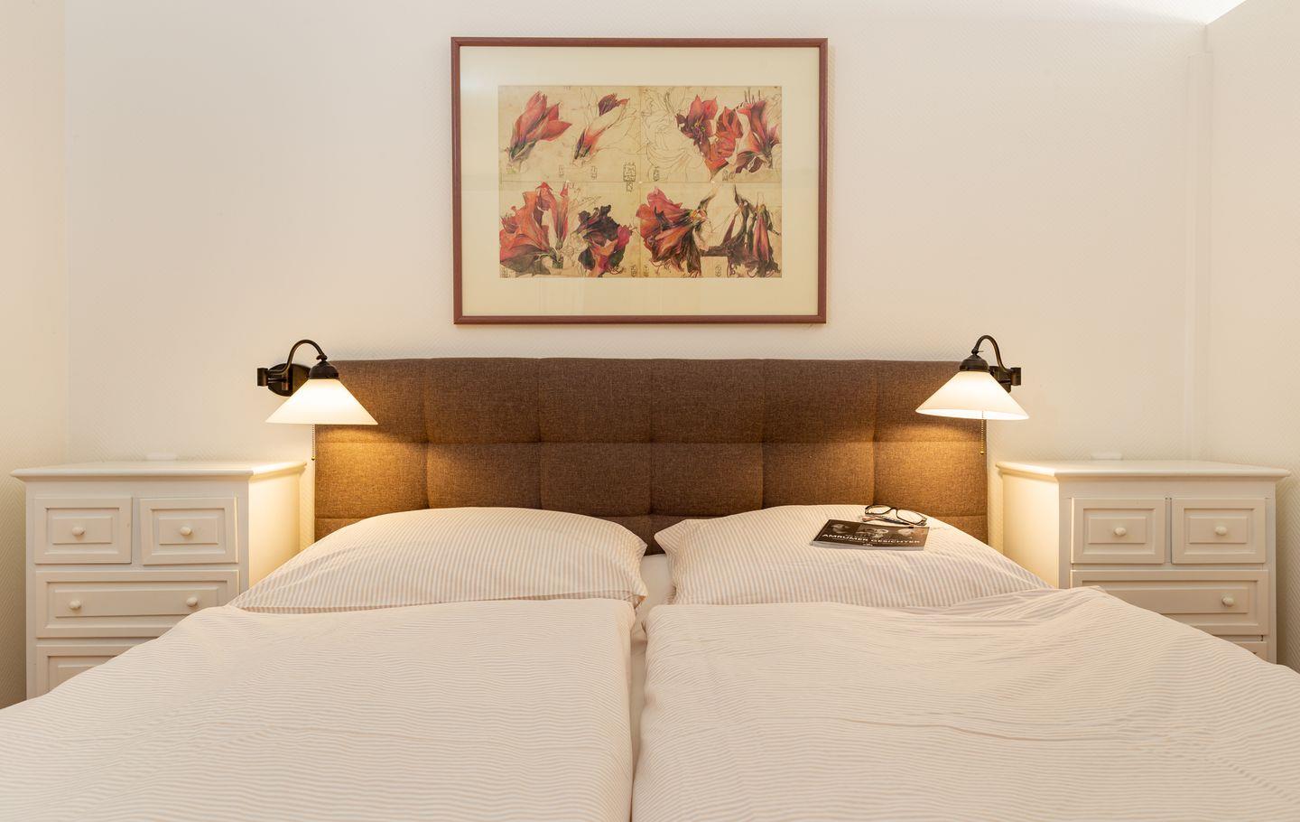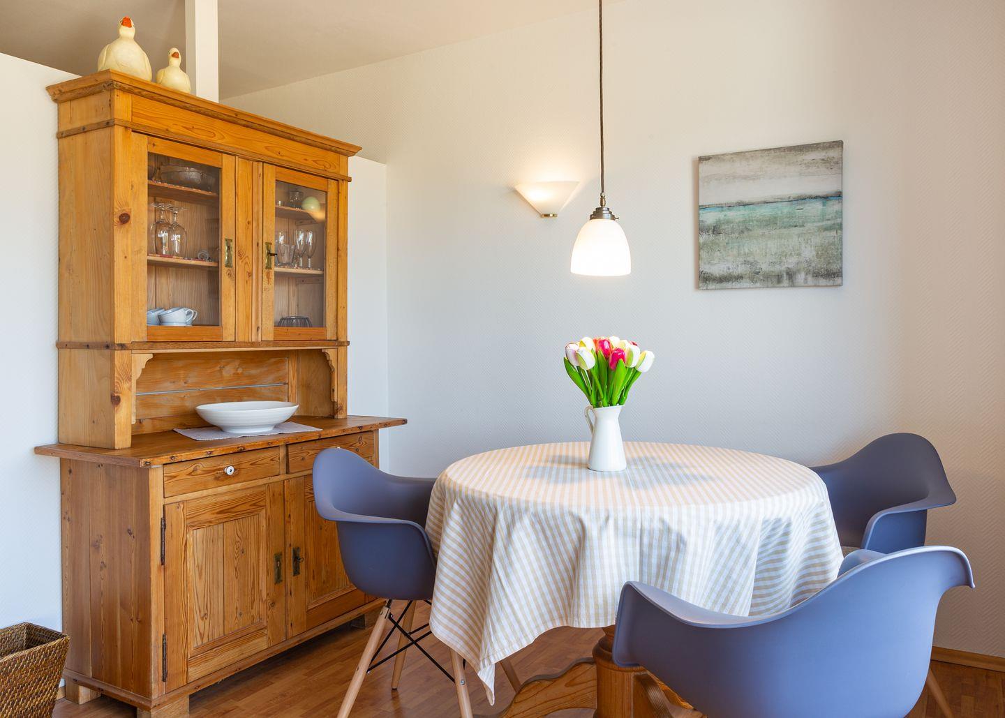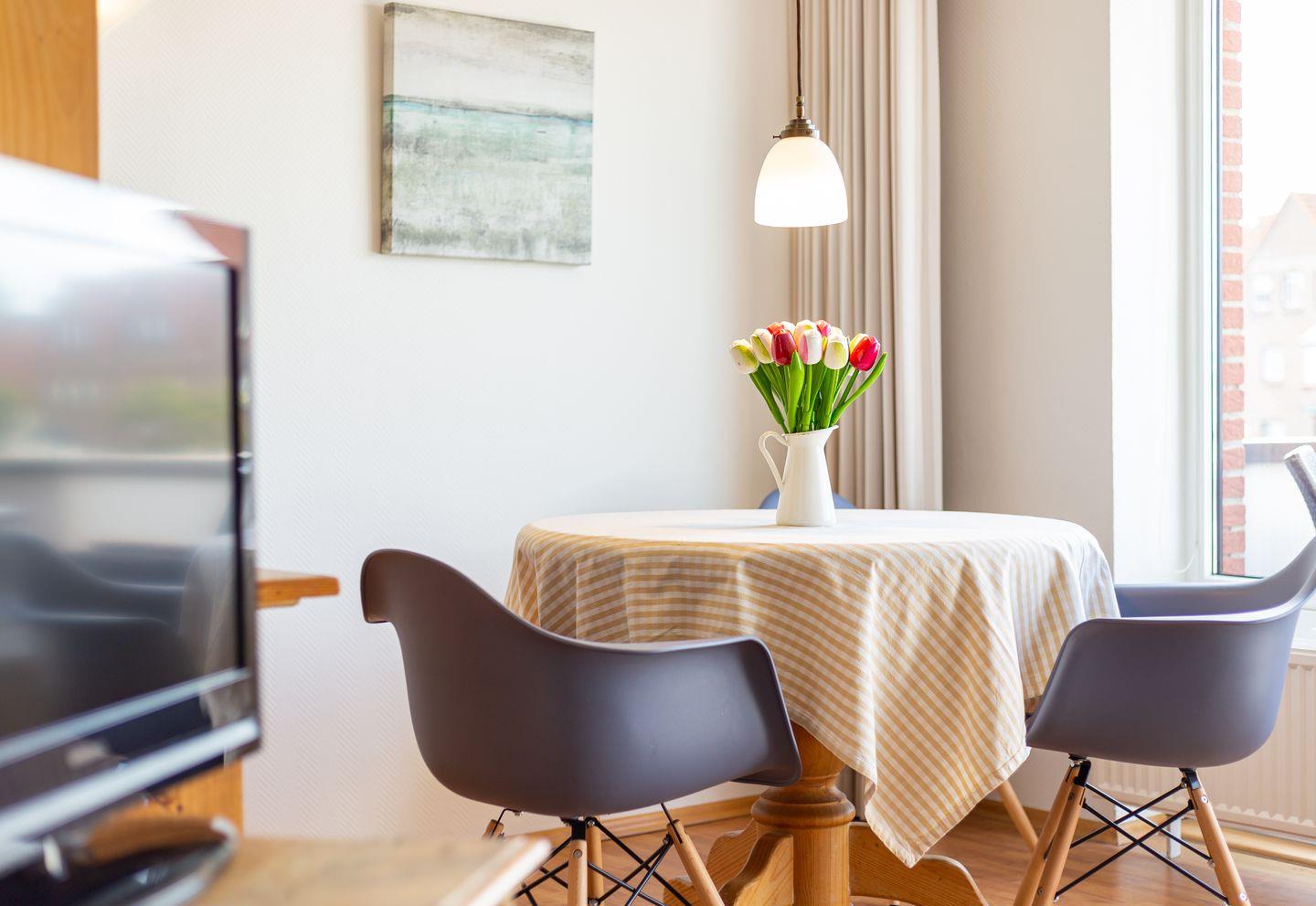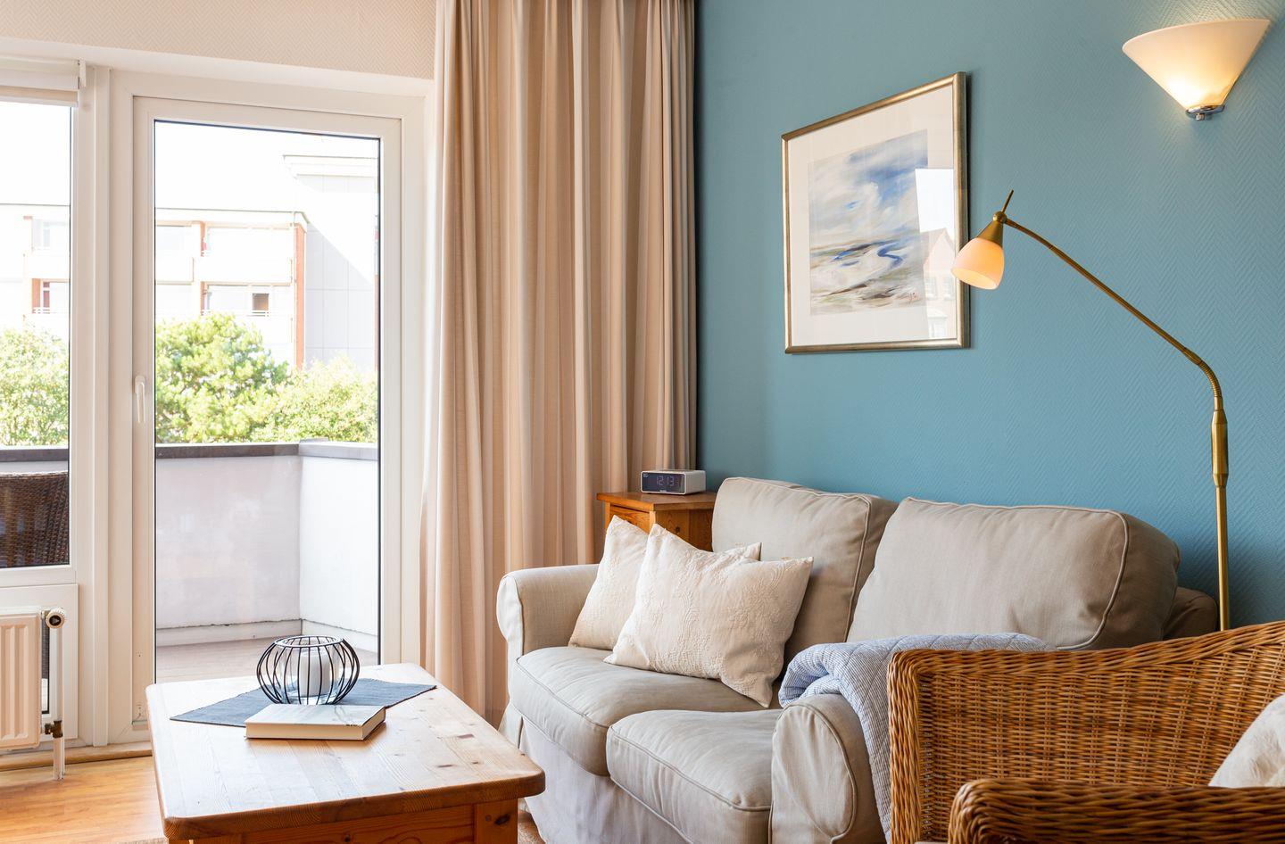 Die Wohnung 5 liegt in der ersten Etage im Ferienhaus Jungnamen Sand und zeigt Richtung Westen. Es finden 2 Personen auf 43 qm geschmackvoll eingerichteter Wohnfläche genügend Platz. Die Wohnung hat einen wunderschönen Meerblick.