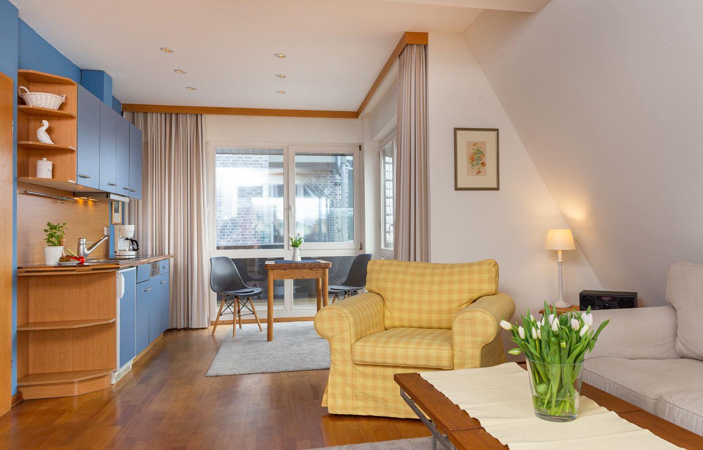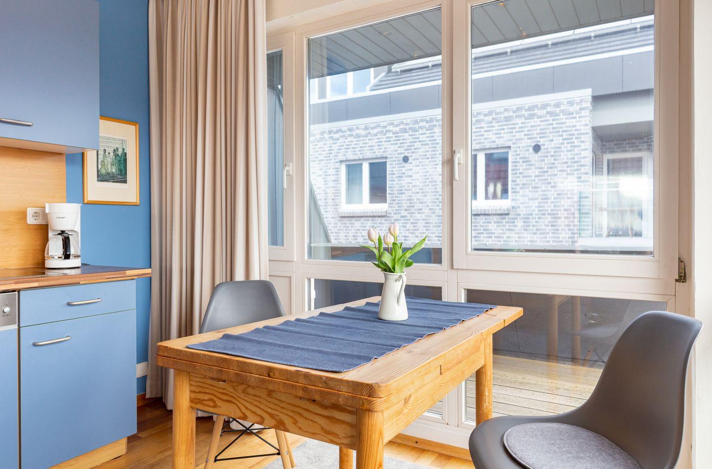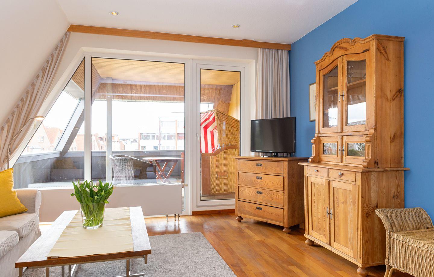 Die Wohnung 12 liegt in der zweiten Etage im Ferienhaus Jungnamen Sand und zeigt Richtung Westen. Es finden 2 Personen auf 65 qm geschmackvoll eingerichteter Wohnfläche genügend Platz. Die Wohnung hat einen Meerblick.