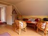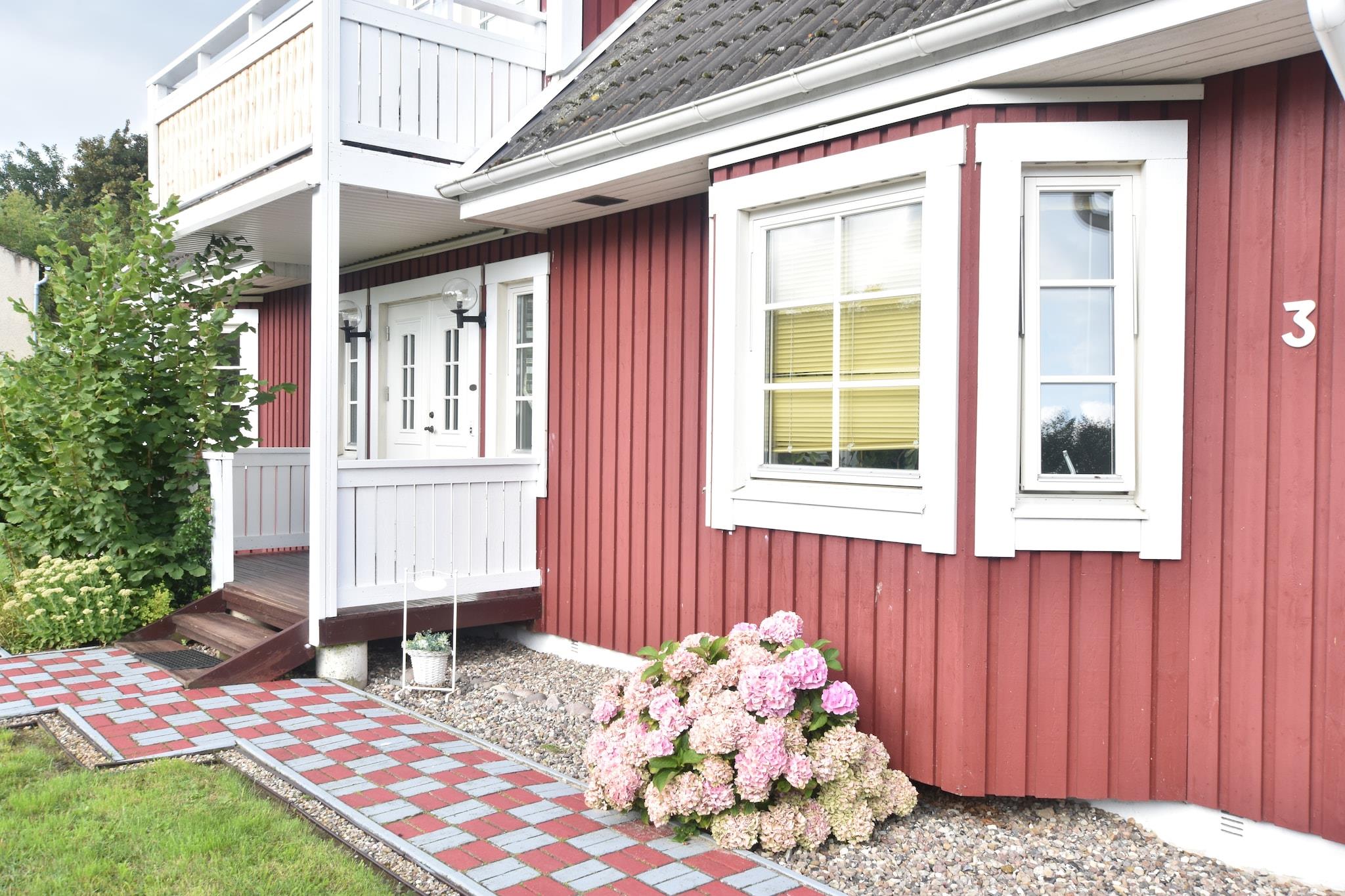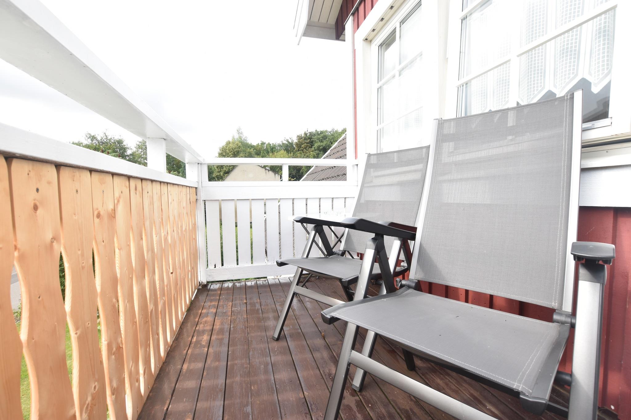 Stueetage: (Indgang (adgang udefra)) På 1. etage: (Køkken(spisebord(4 personer), elkedel, brødrister, komfur(Komfur med fire kogeplader, glaskeramisk), emhætte, kaffemaskine, ovn, mikrobølgeovn, køle-fryseskab), Stue/soveværelse(dobbeltseng(180 x 200 cm), Fjernsyn(fladskærm), sofahjørne), soveværelse(dobbeltseng(180 x 200 cm), Fjernsyn(fladskærm)), badeværelse(badekar, håndvask, toilet, vaskemaskine), Repos, CD-afspiller, balkon, varme, barneseng, barnestol) have(indhegnet), cykelopbevaring, havemøbler, parkering