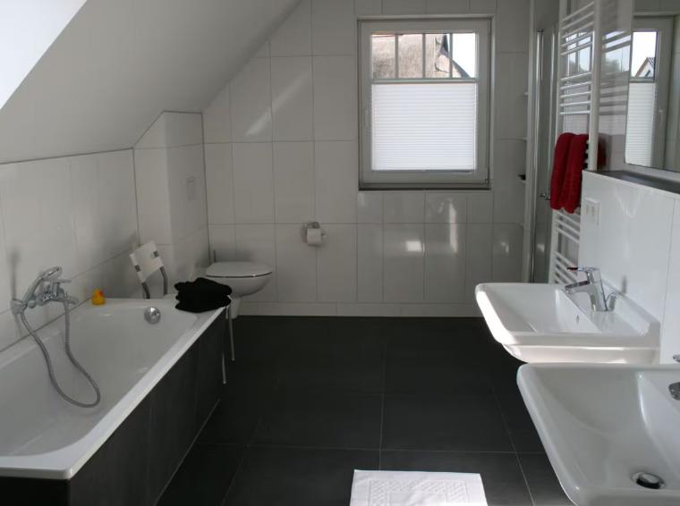Zwei großzügige Badezimmer, eins mit Sauna und eins mit Badewanne und begehbarer Dusche sind vorhanden. Der gemütliche Wohn,- Essbereich mit modern, komplett ausgestatteter Küche und Kaminofen lädt zum gemeinsamen Kochen, zum Spieleabend, Lesen oder Fernsehen ein. Sauna und Kaminofen verlängern den Spaß die Ostsee auch in der Vor,- und Nachsaison zu besuchen.