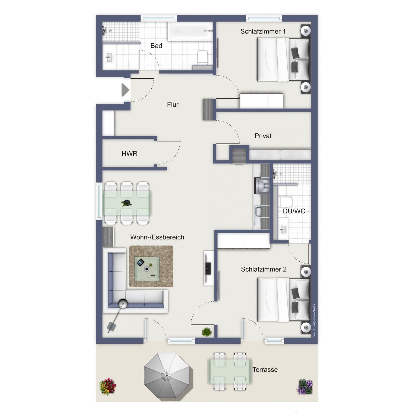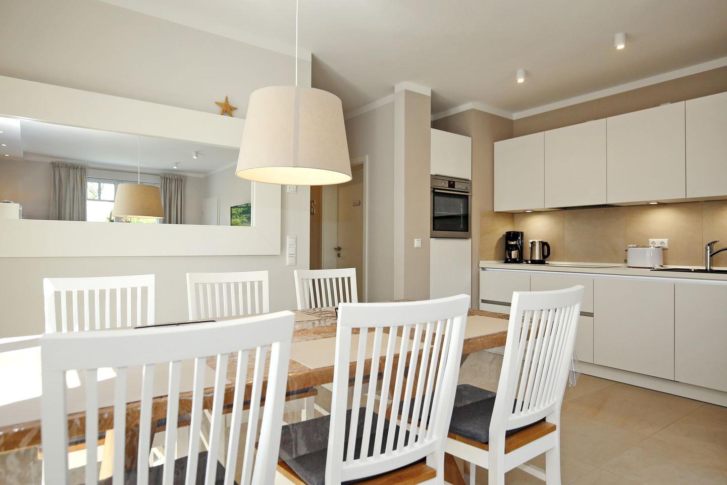 „Meer“ verfügt über zwei Bäder, zwei Doppelzimmer, einen Wohnbereich, eine voll ausgestattete Teeküche sowie einen Essbereich. Genieße die frische Ostseeluft und die Sonnenaufgänge auf der gemütlichen Terrasse mit Süd-Ostausrichtung, die vom Wohnbereich und von einem Doppelzimmer aus begehbar ist.