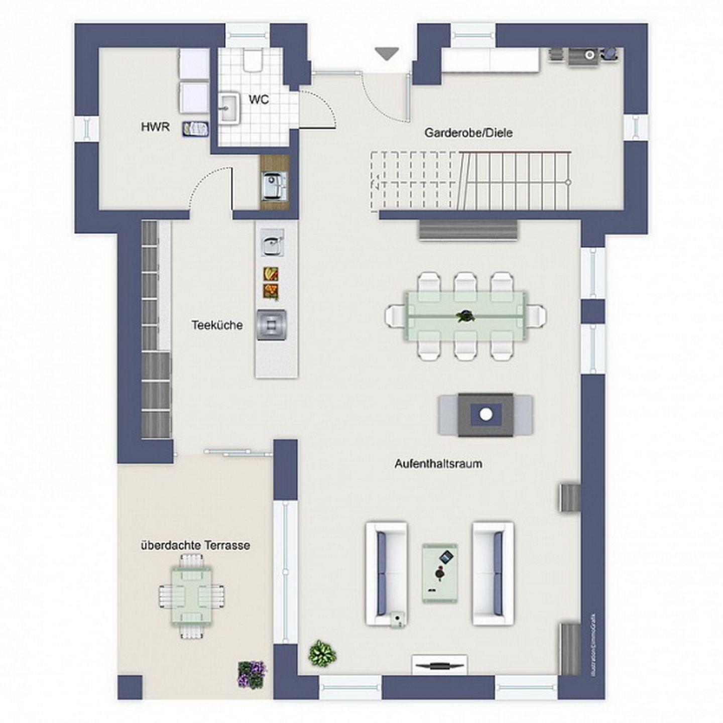 Zutritt zur Terrasse hast du vom Aufenthaltsbereich und von der Teeküche aus.